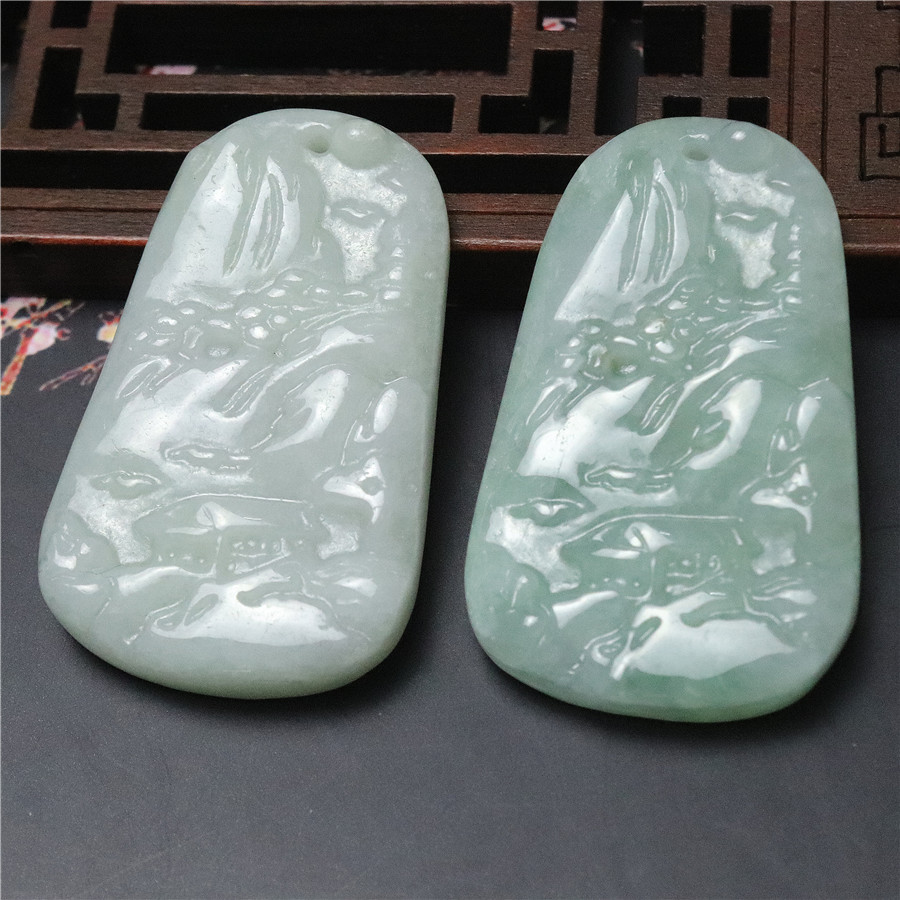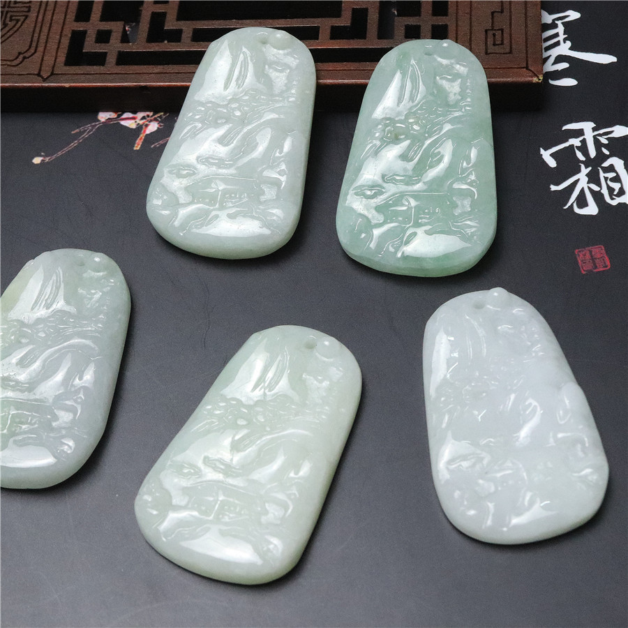 正品新款天然翡翠小山水牌吊坠缅甸A货手工艺品玉坠挂饰玉器批发