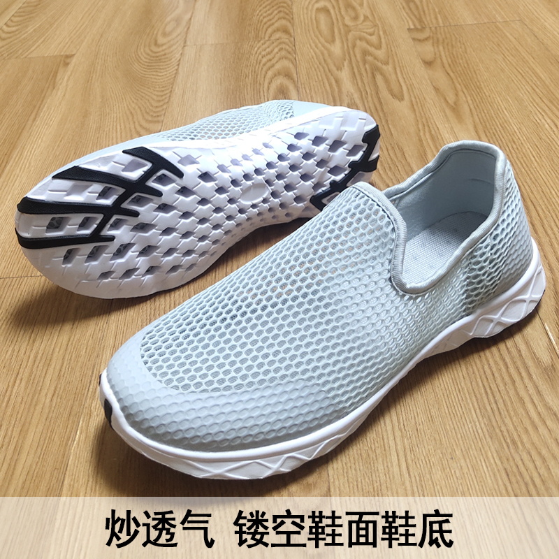 比涼鞋透氣~走路帶風~鏤空溯溪網面鞋輕便軟底懶人套腳情侶男女鞋