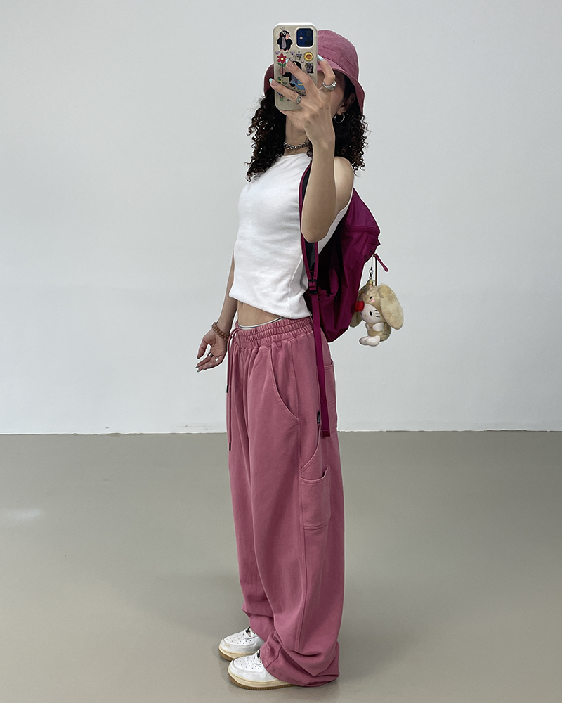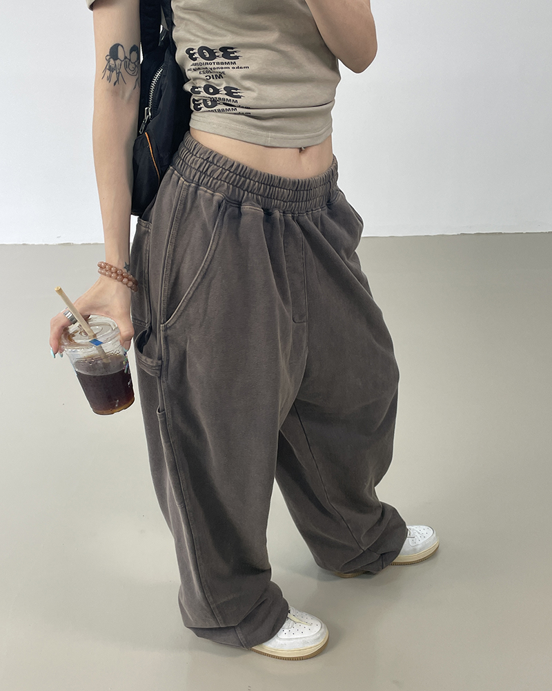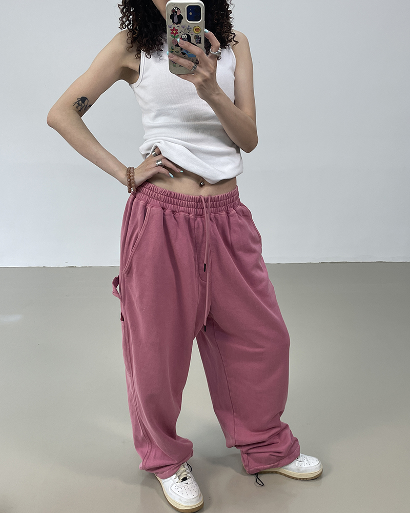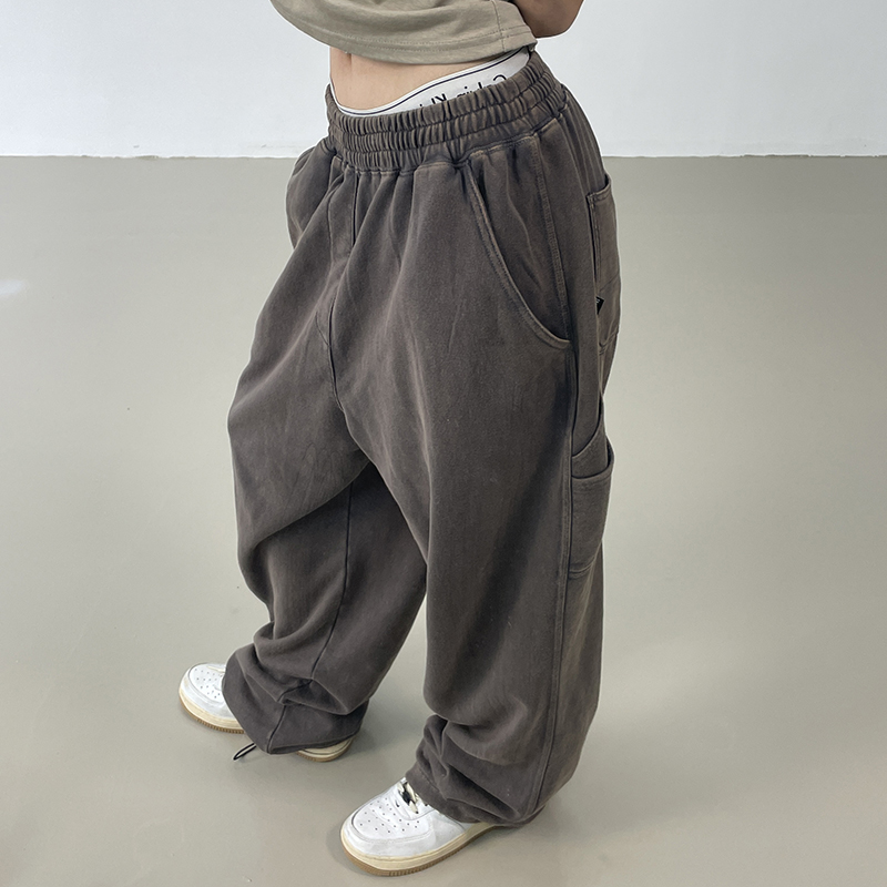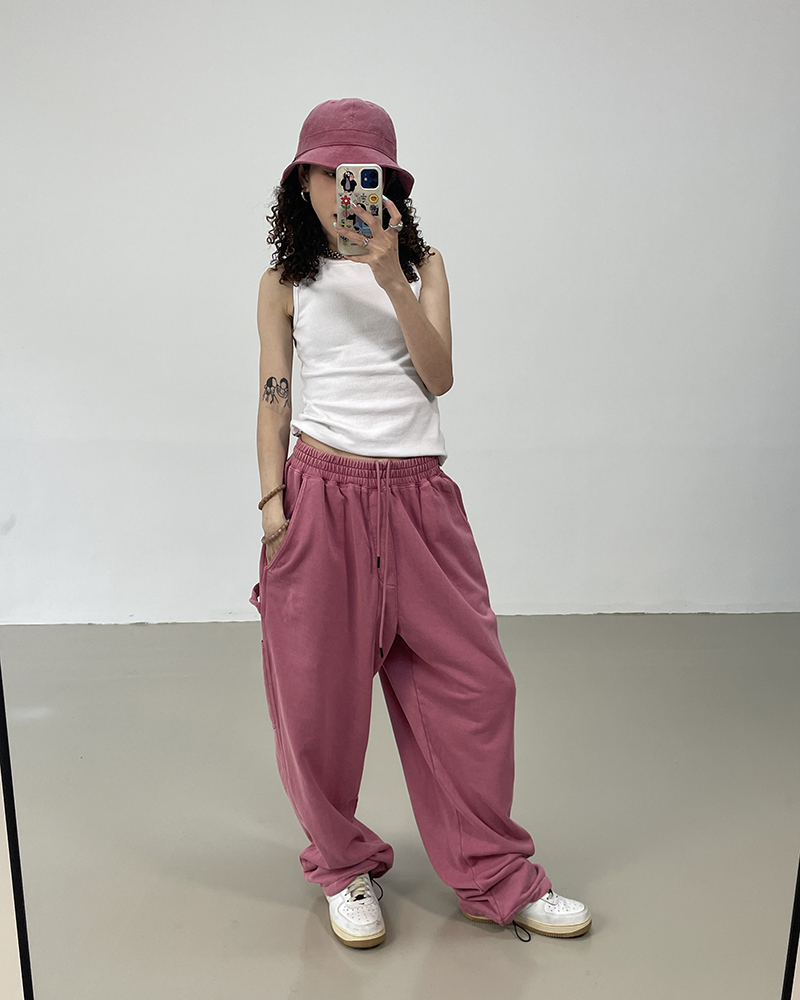 MMBBT復古工裝褲女水洗做舊寬鬆闊腿墜感休閒運動街舞hiphop褲子