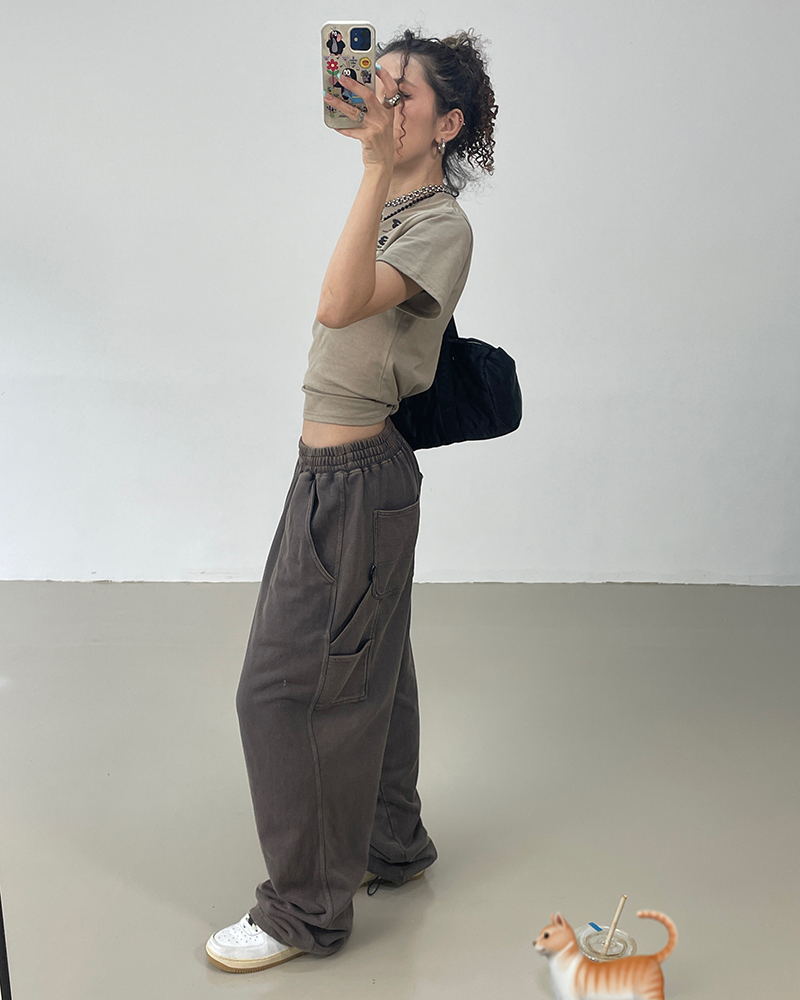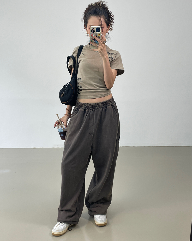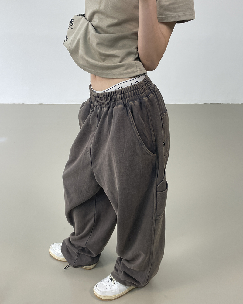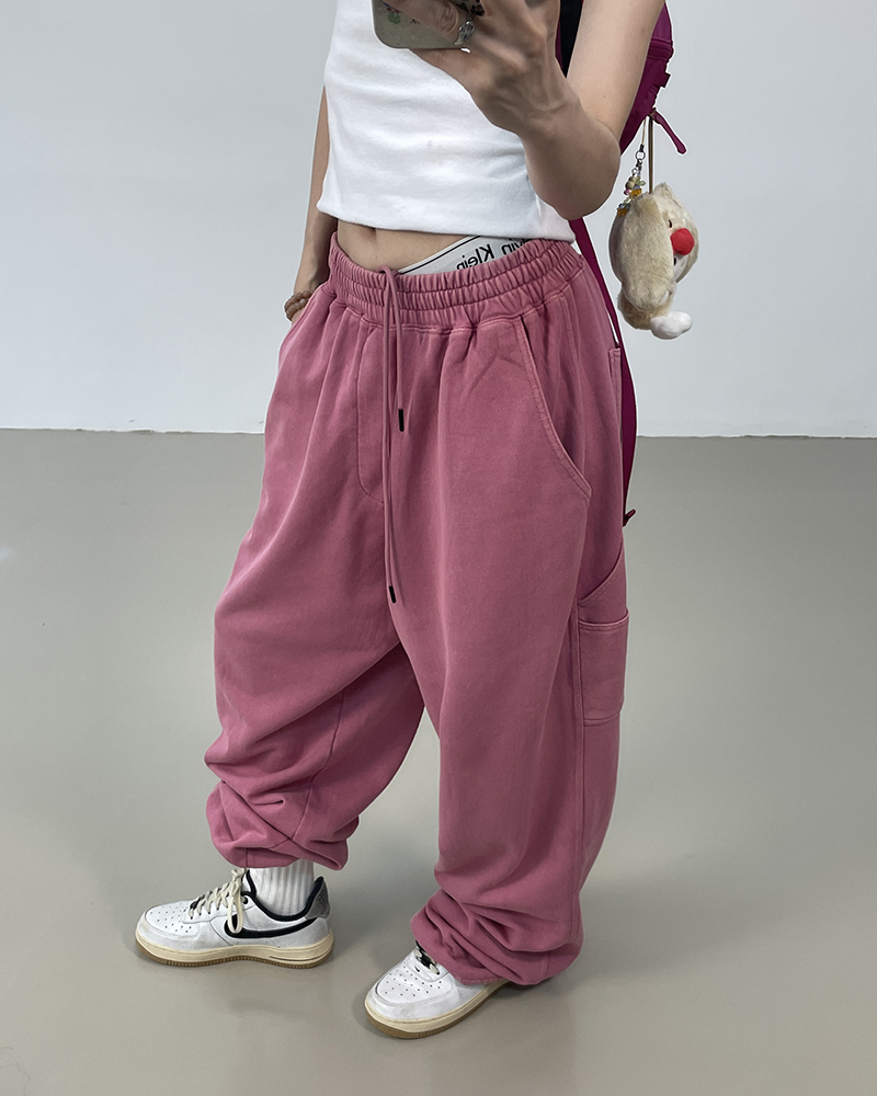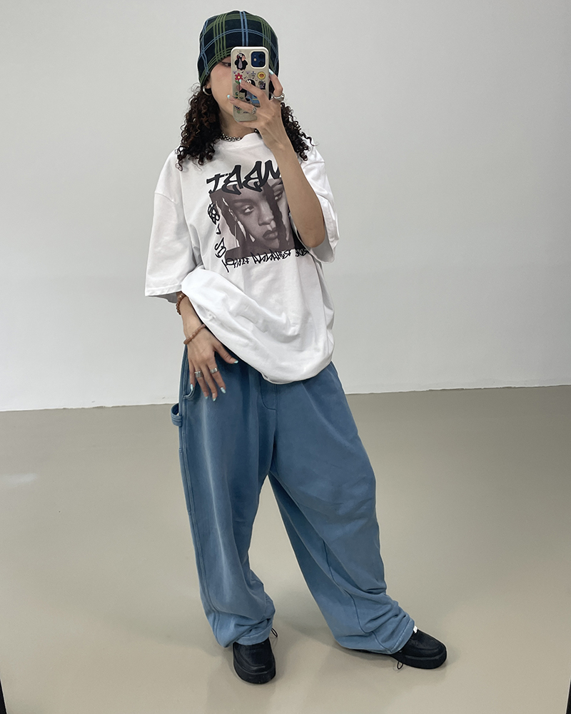 MMBBT復古工裝褲女水洗做舊寬鬆闊腿墜感休閒運動街舞hiphop褲子