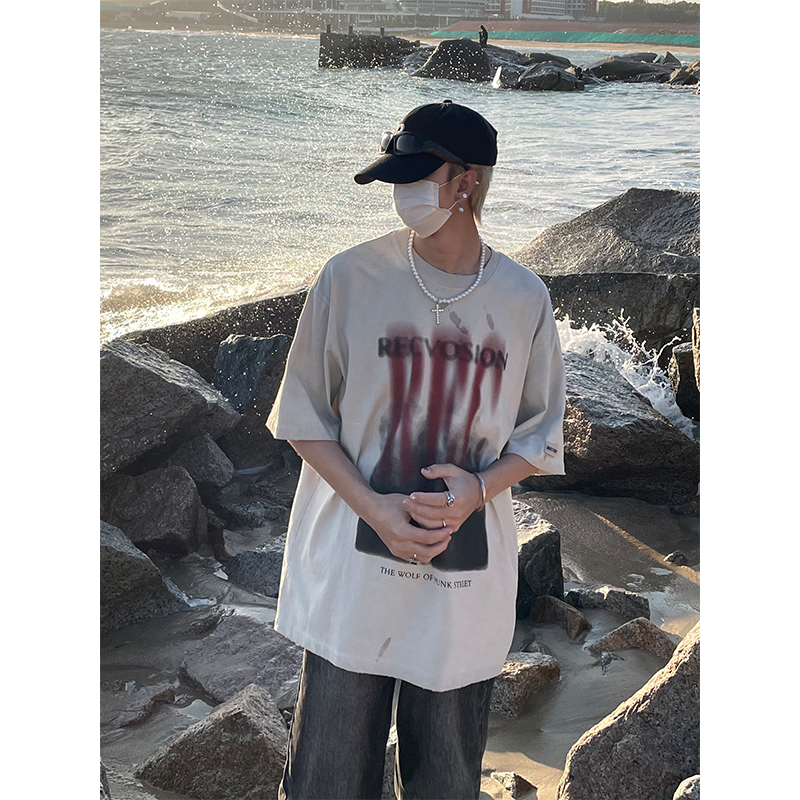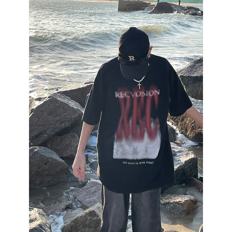 MaxDstr 設計感字母印花短袖T恤男女寬鬆潮牌高街情侶2023夏裝ins