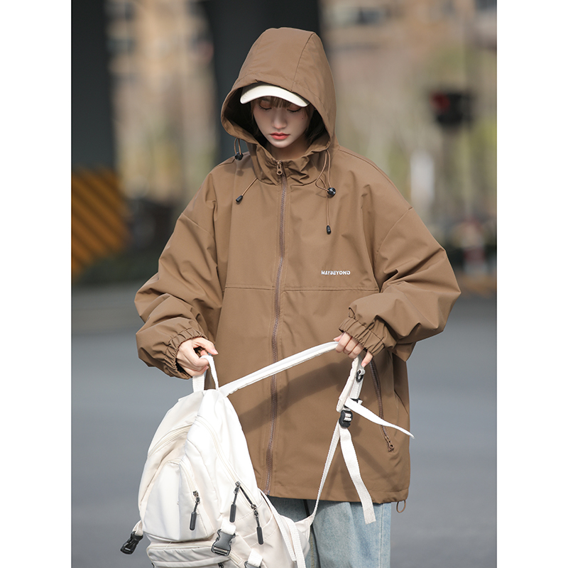 歐美hiphop外套女春秋款工裝衝鋒衣vintage美式防曬爬山防風衣服