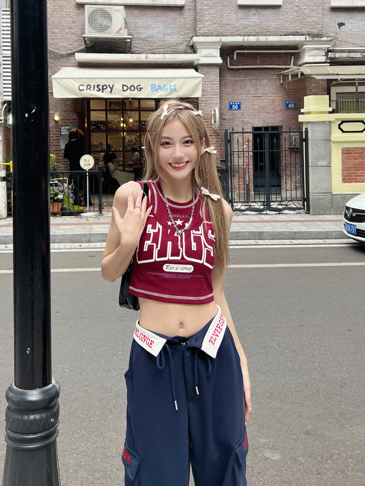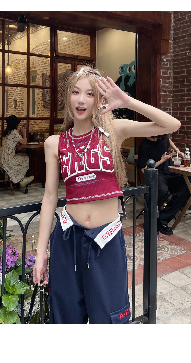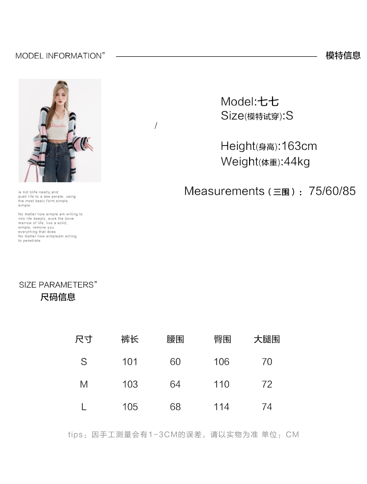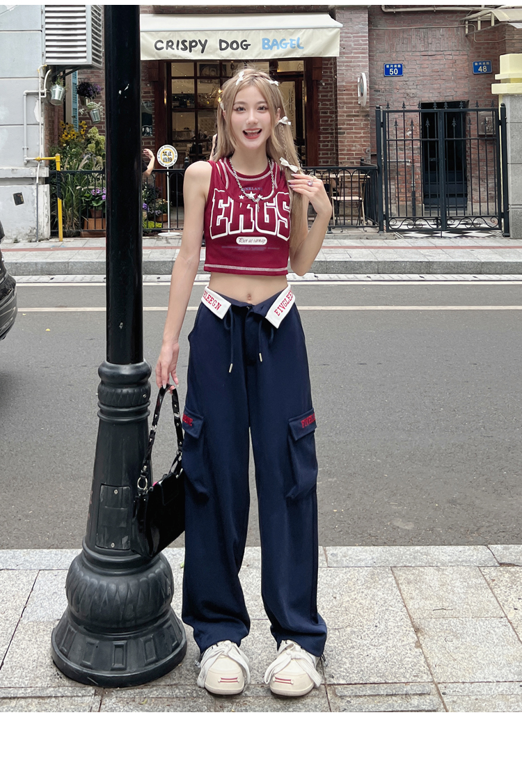 七七不是77/藍色辣妹工裝褲女夏天2023新款捲邊設計感闊腿痞雅褲
