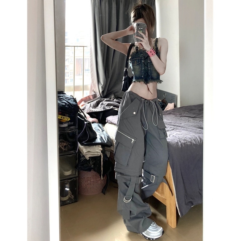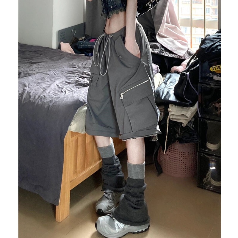 美式工裝短褲女夏季直筒寬鬆五分褲可拆卸兩穿炸街休閒直筒五分褲潮