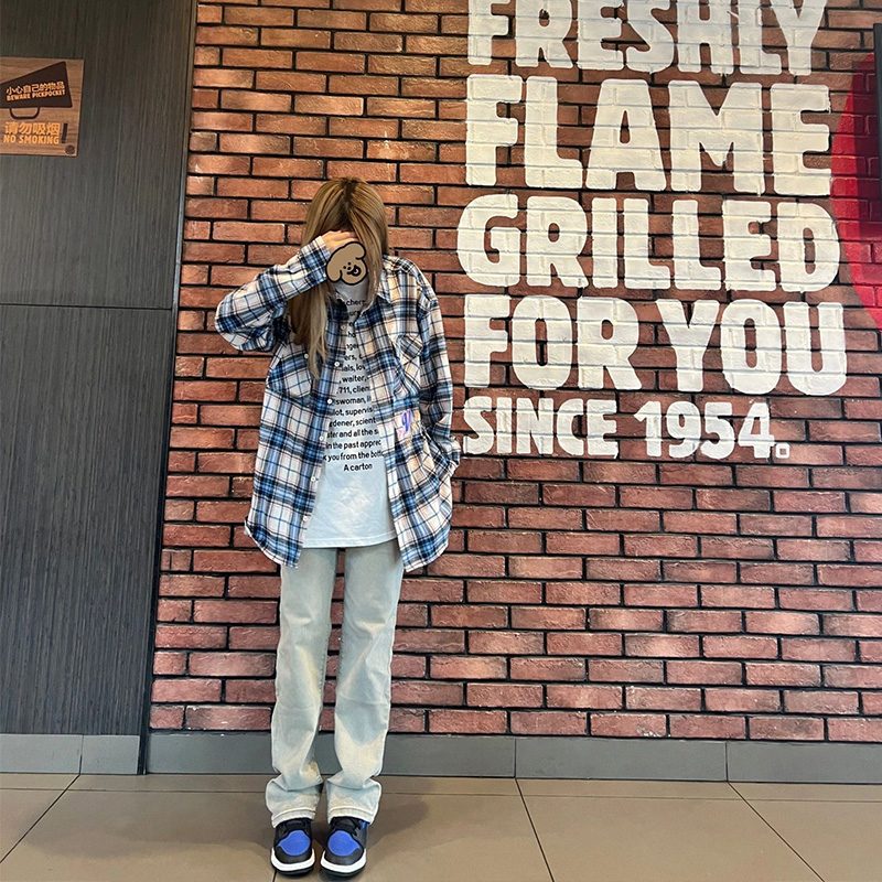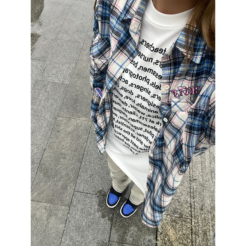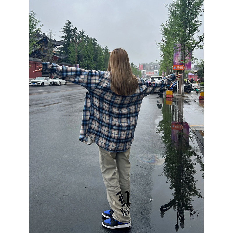 素素本SU美式復古國潮原創格子襯衫女長袖秋季高街設計感小眾襯衫
