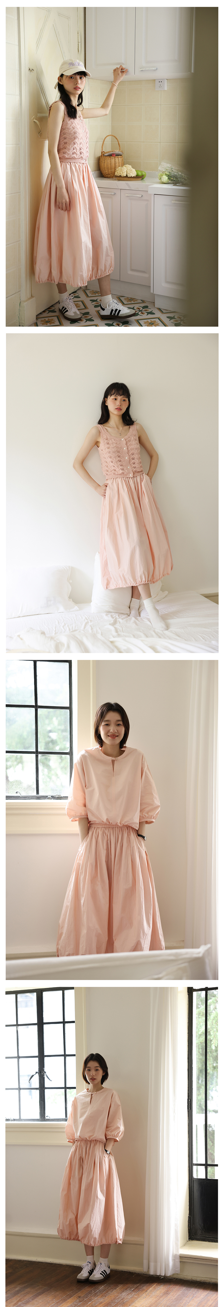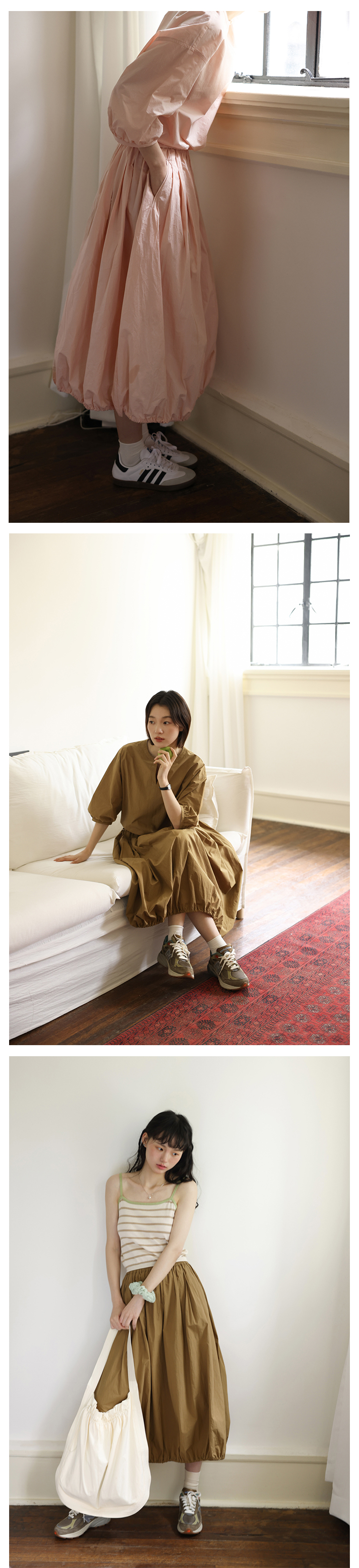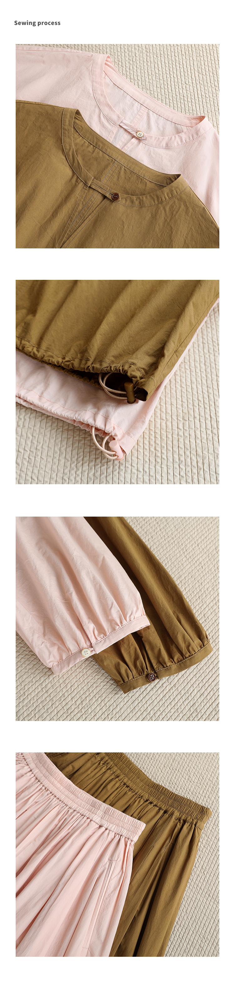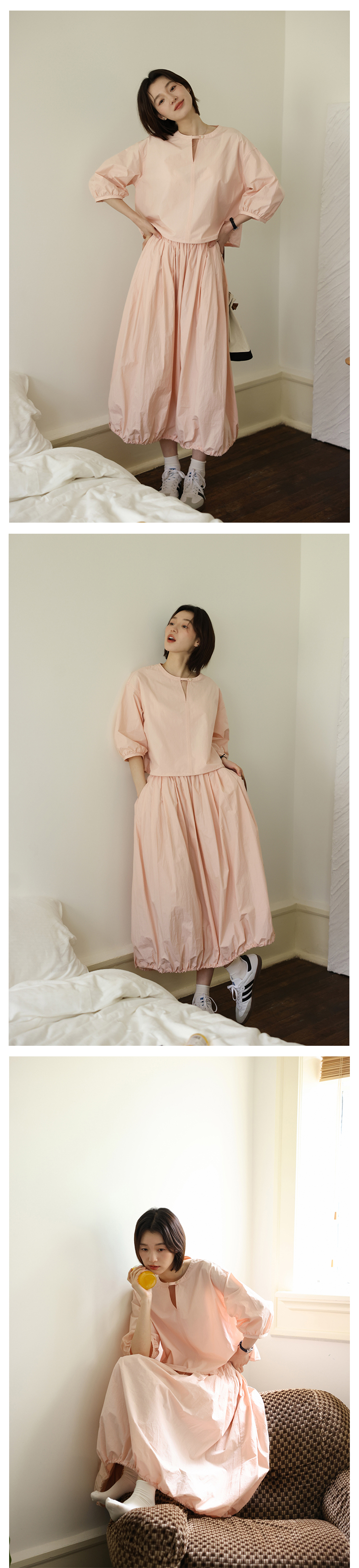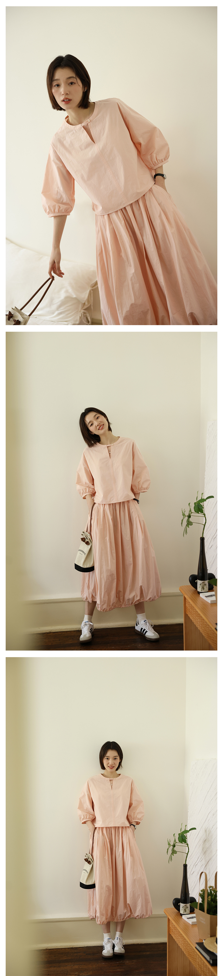 敘舊oldtimes紙感100棉砂洗工裝風短款燈籠袖襯衫/花苞半裙 C2116