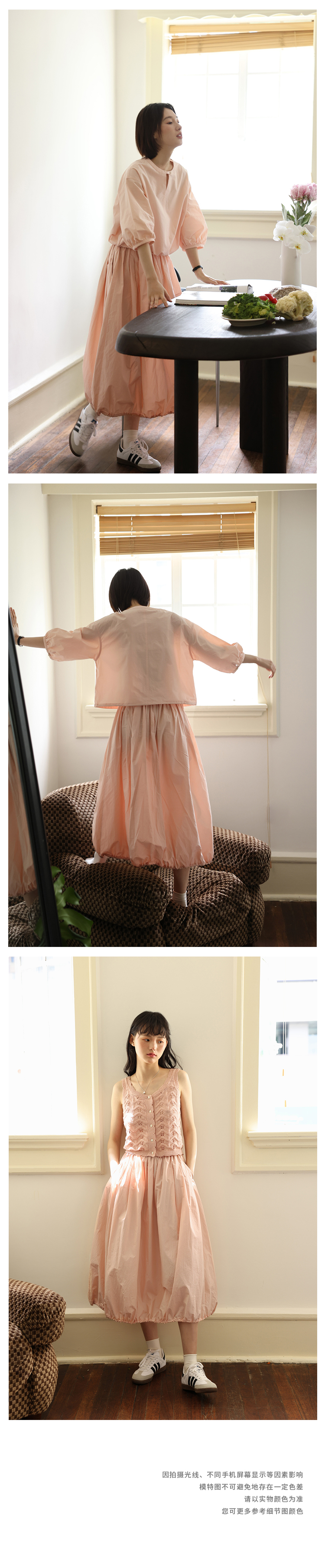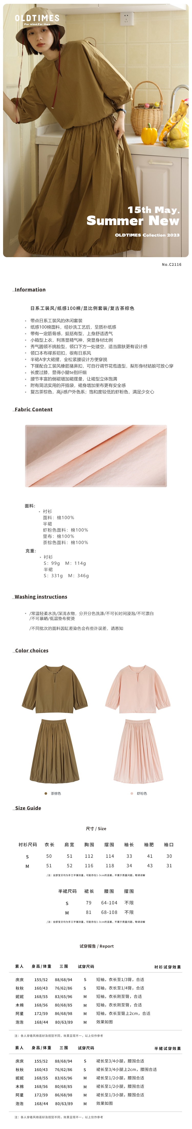 顏色分類 蝦粉色(襯衫),茶棕色(襯衫),蝦粉色(半裙),茶棕色(半裙)