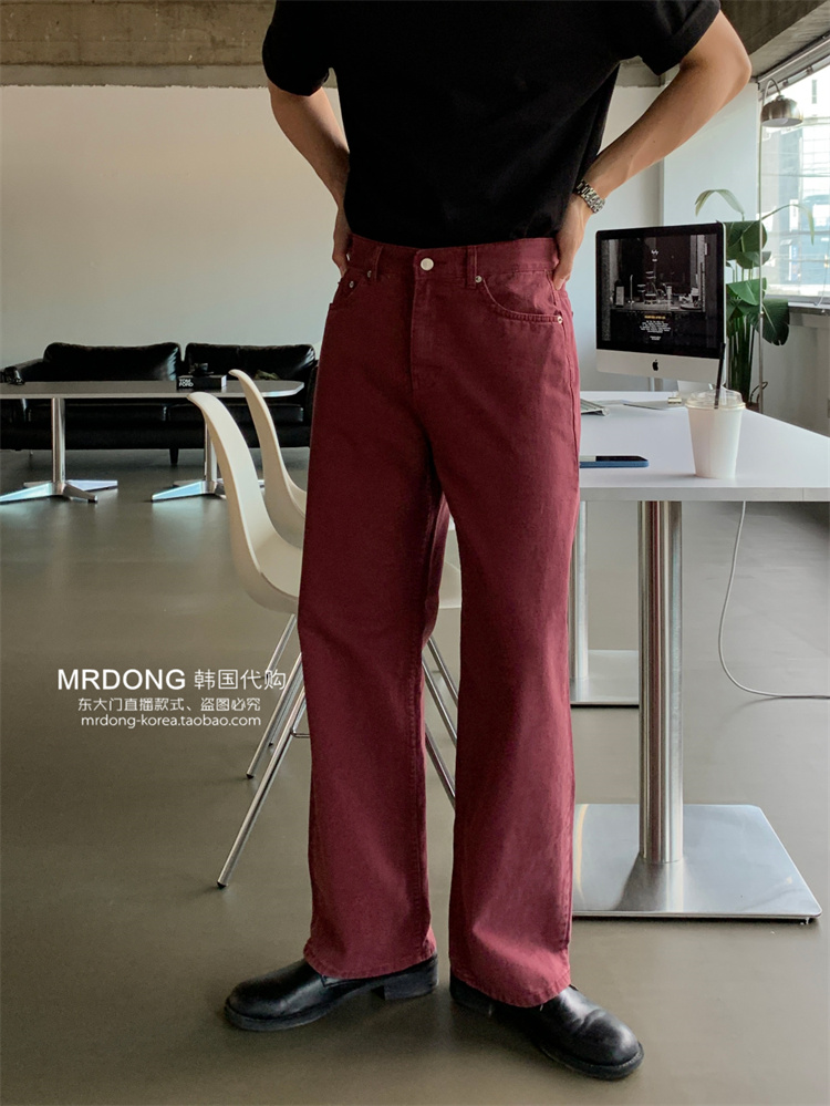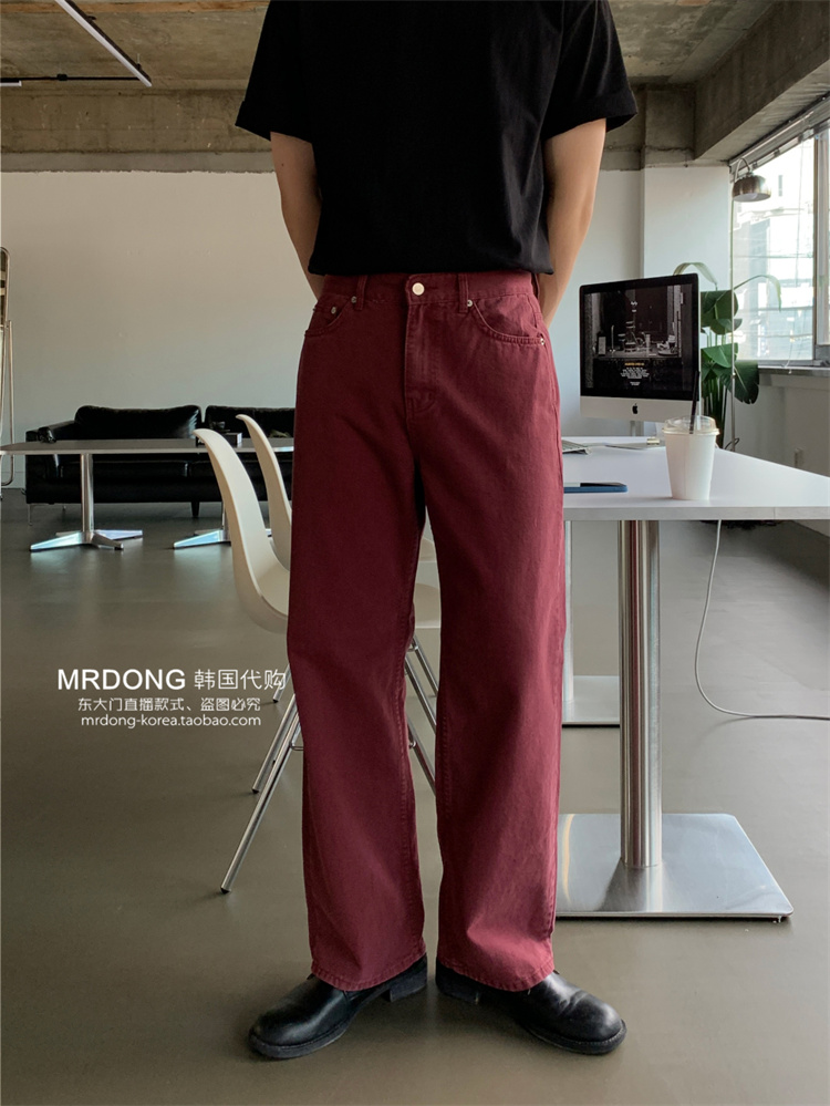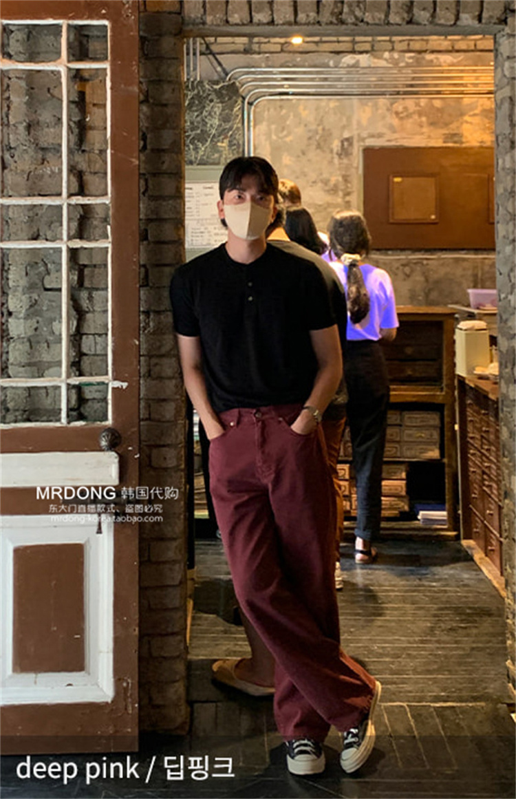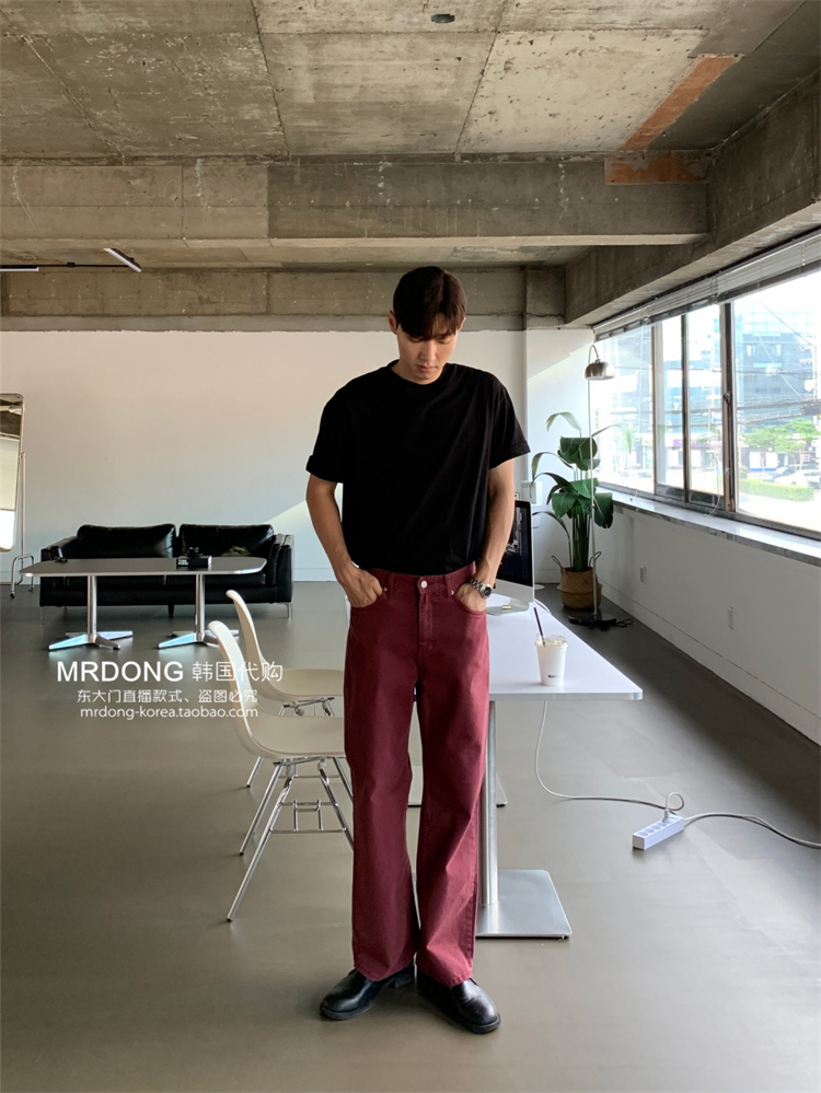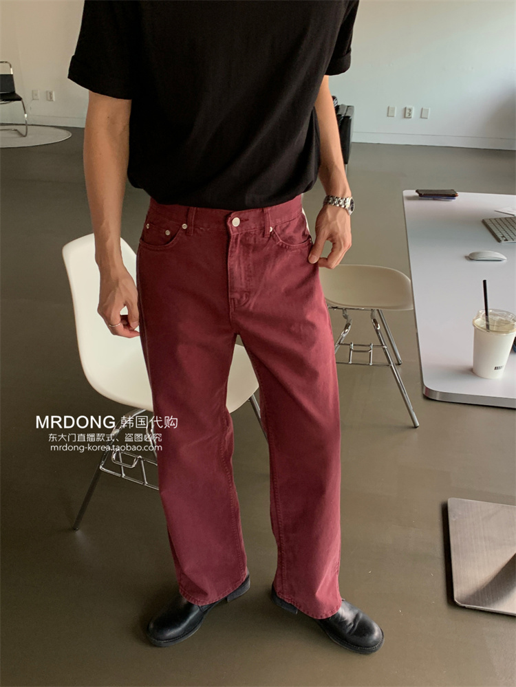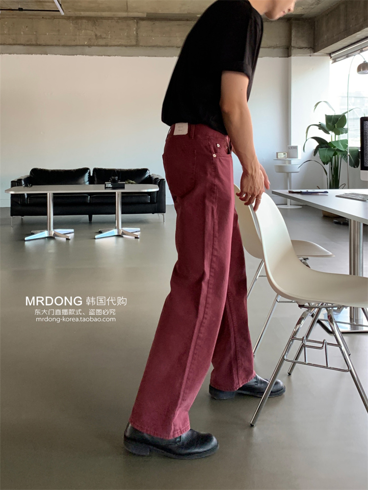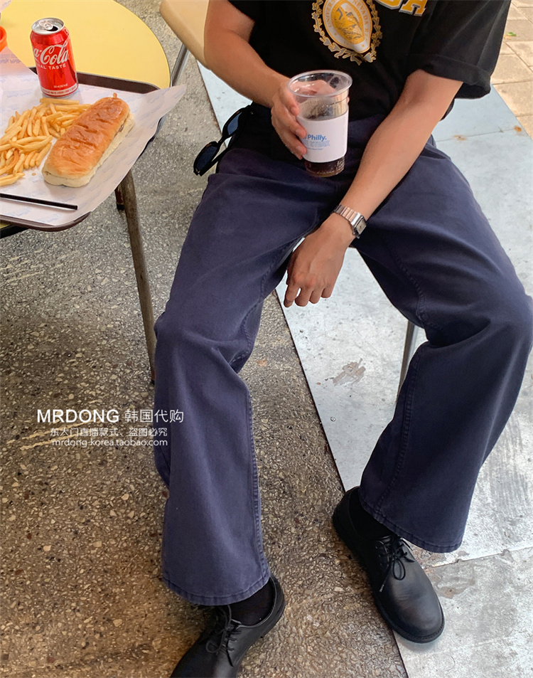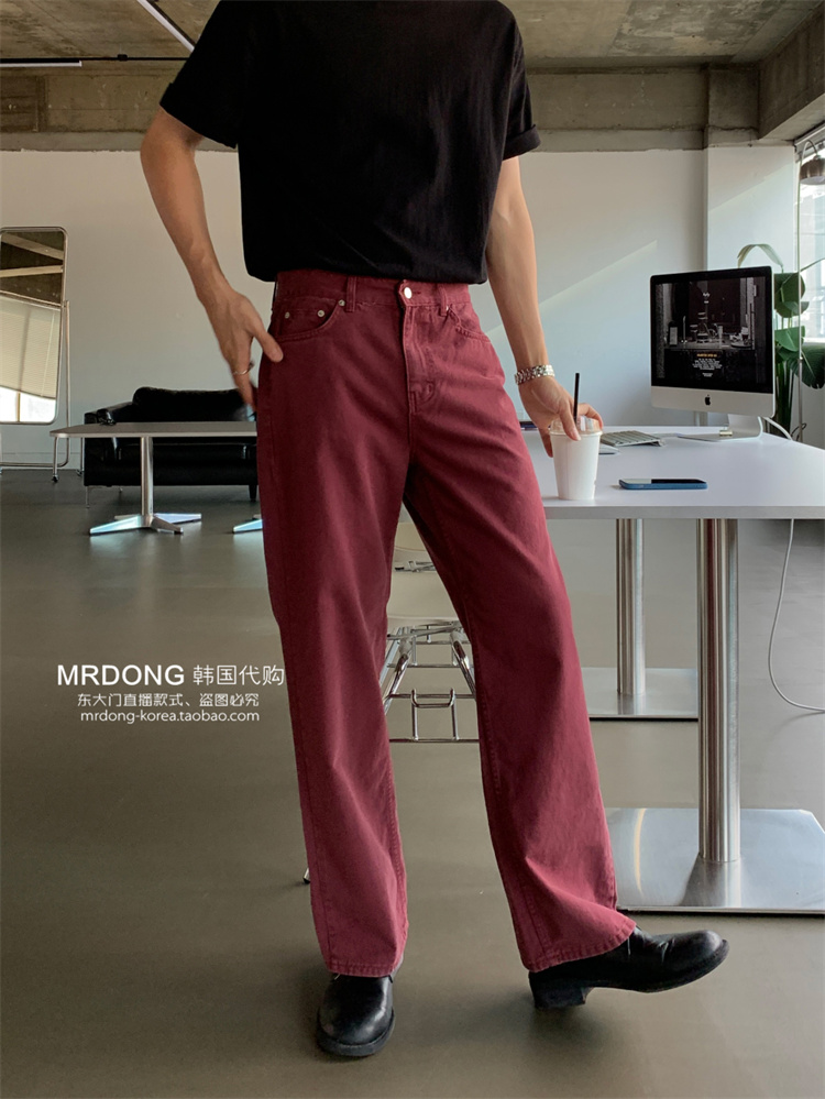 東大門韓國男裝代購直播時尚彩色水洗潮流設計韓版闊腿直筒休閒褲