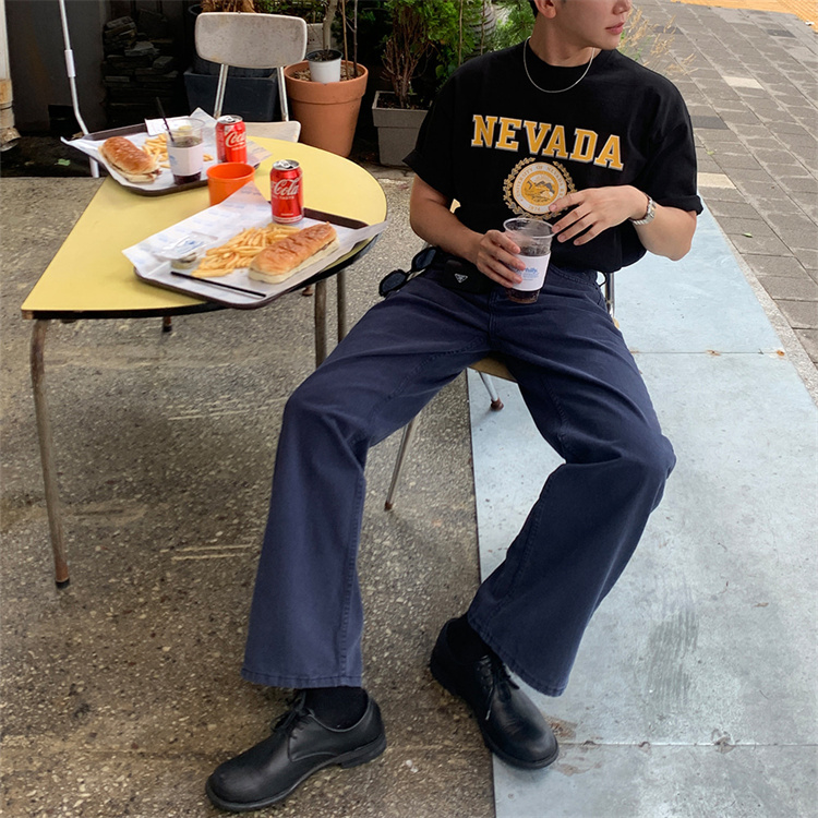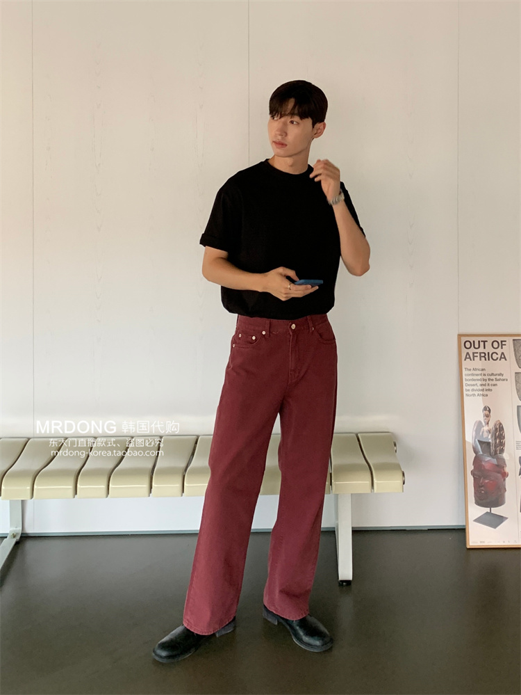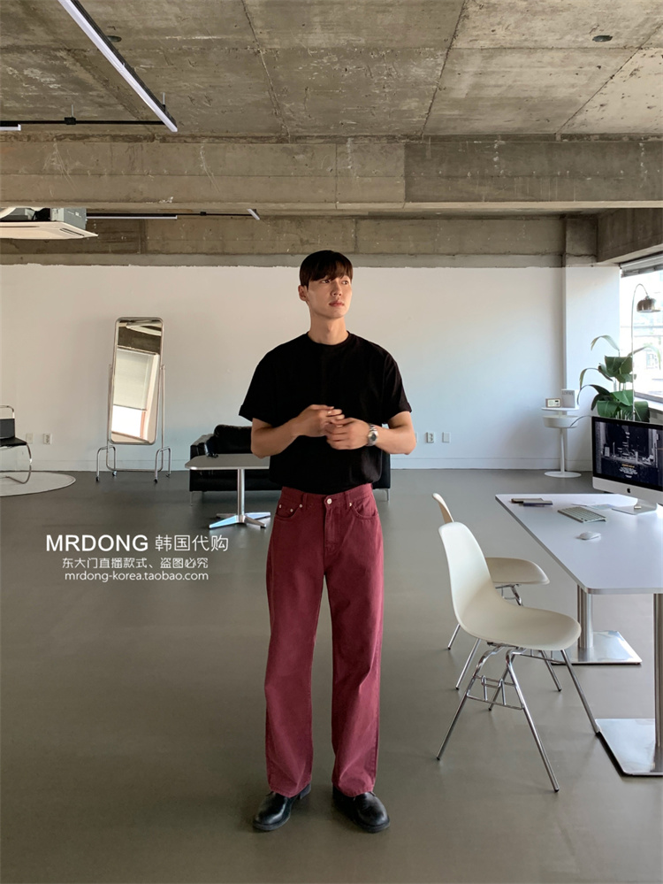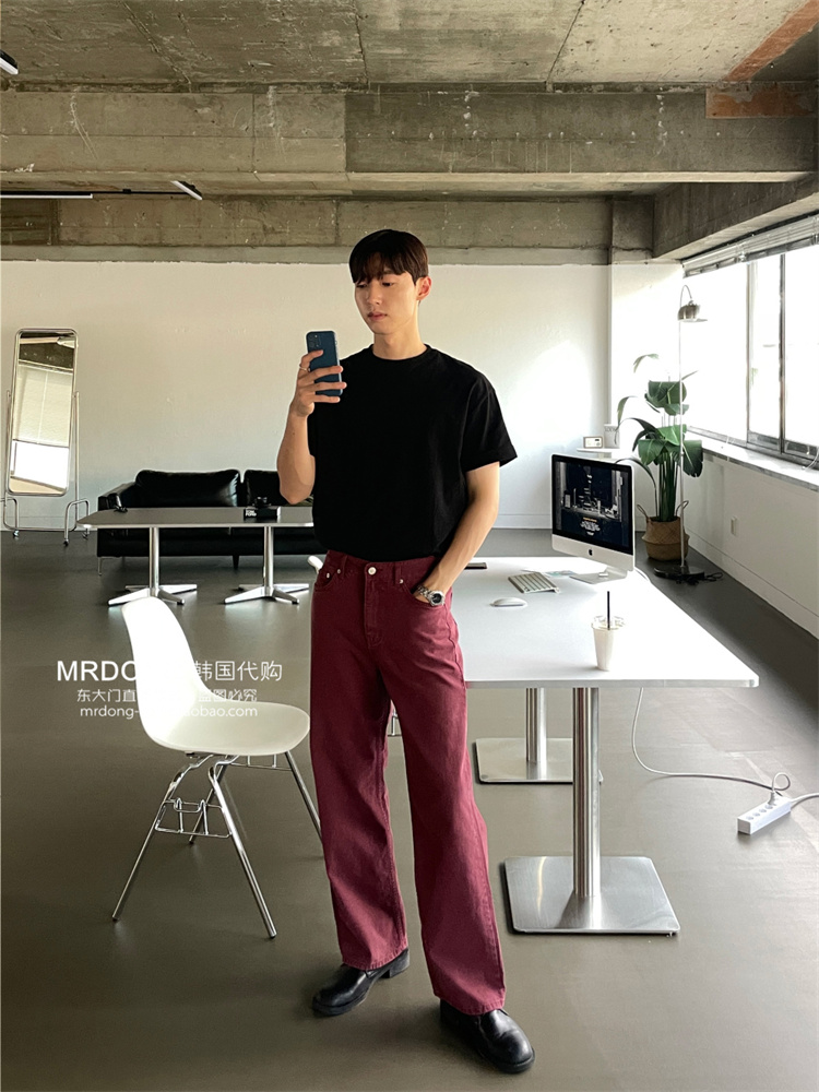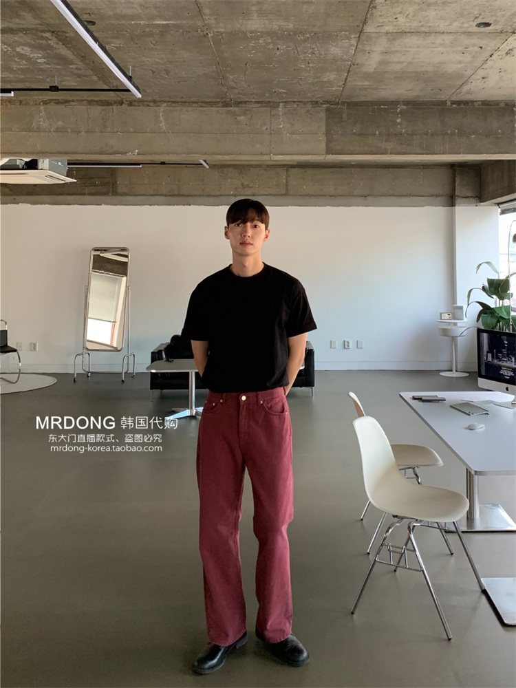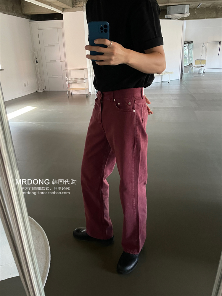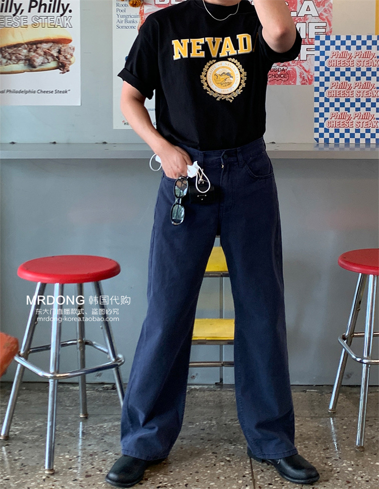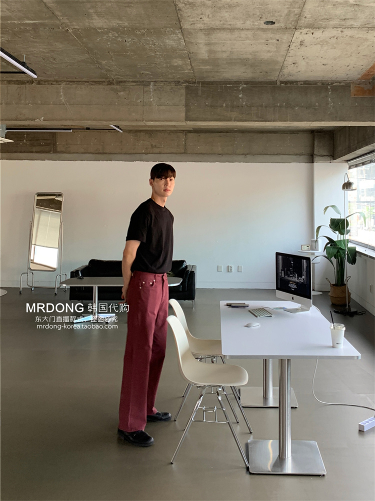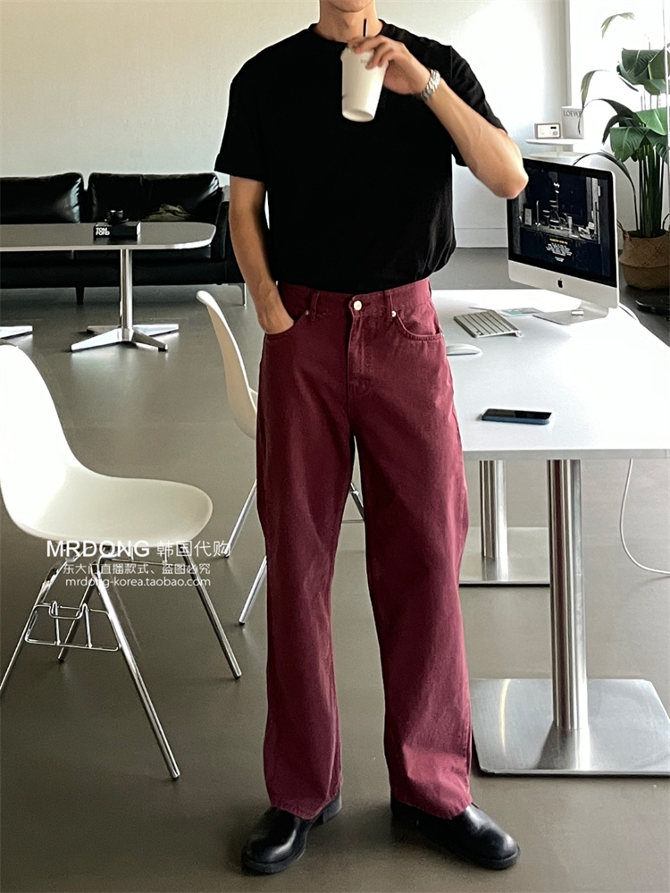 東大門韓國男裝代購直播時尚彩色水洗潮流設計韓版闊腿直筒休閒褲