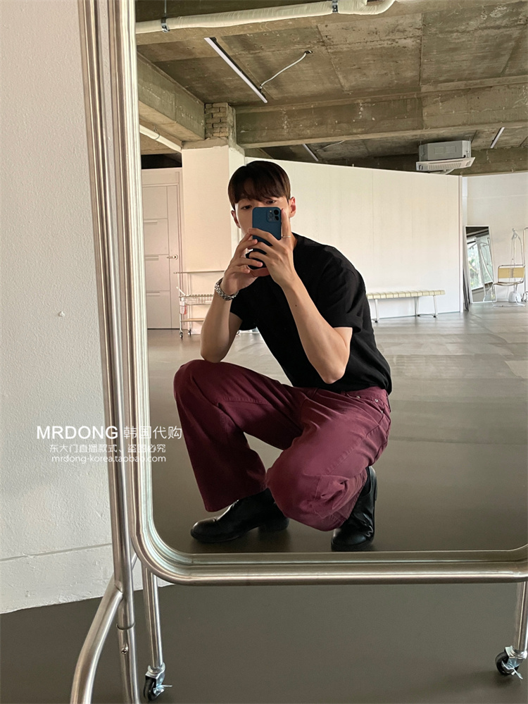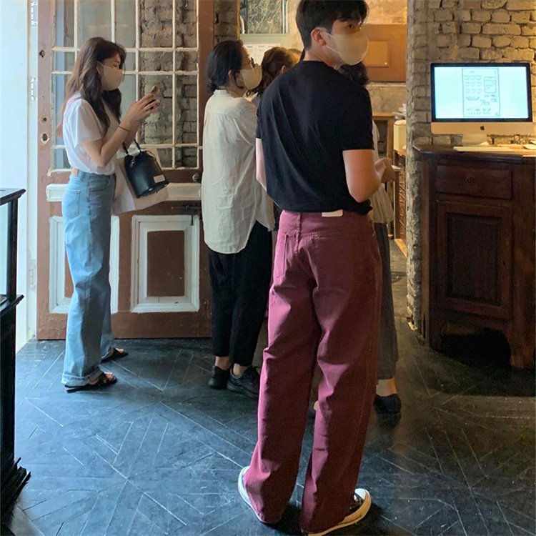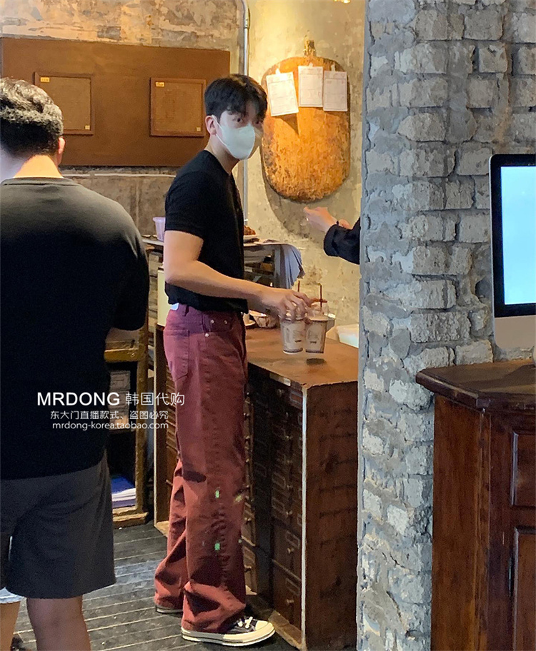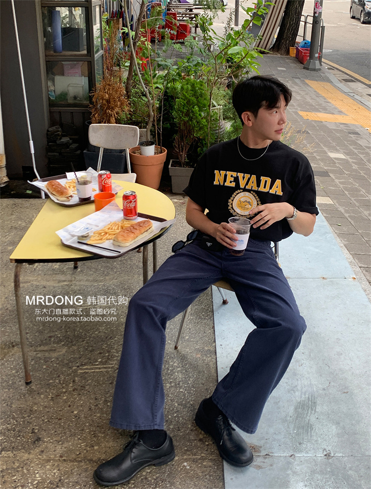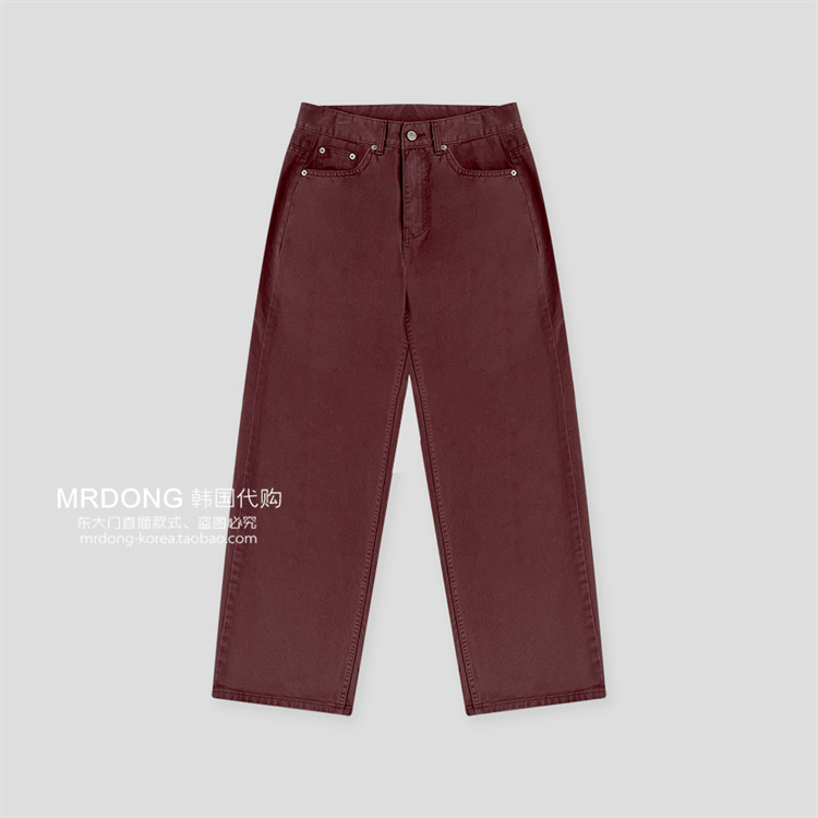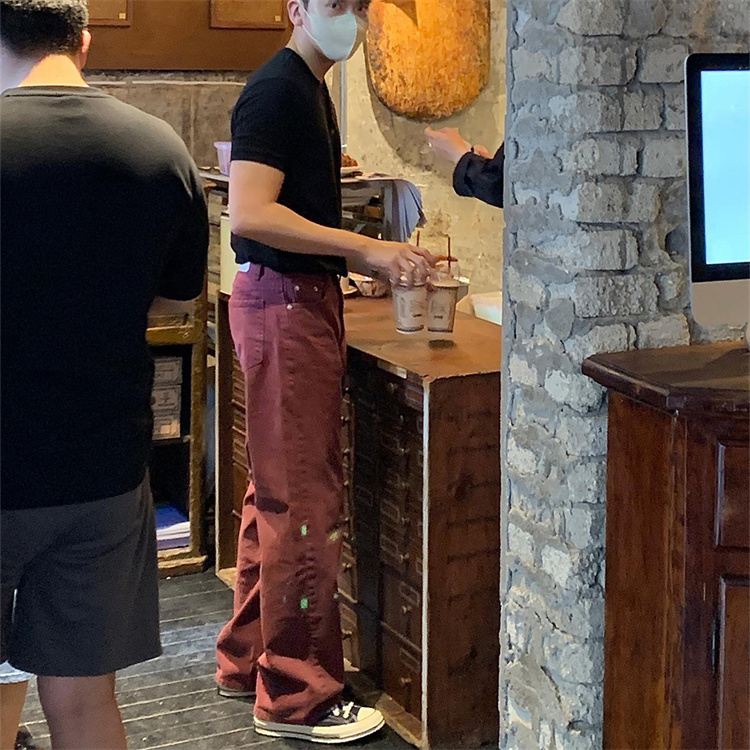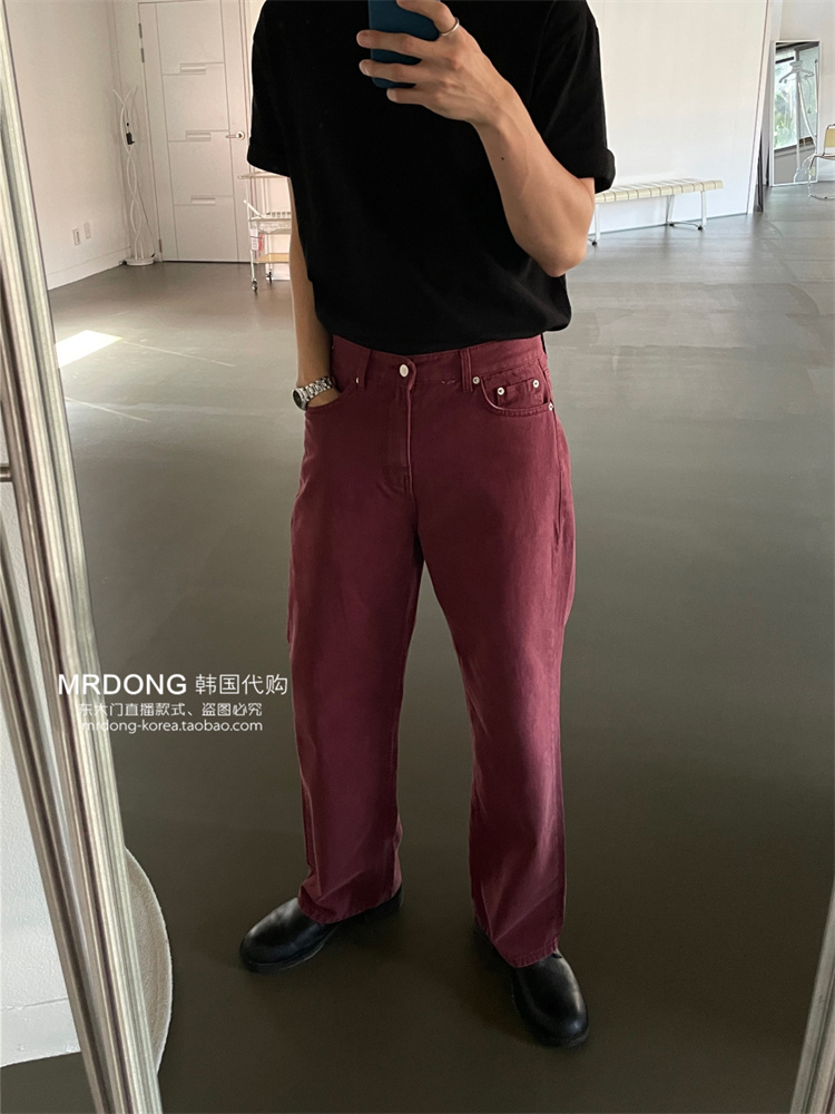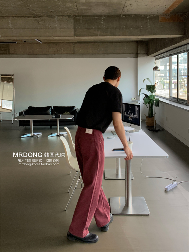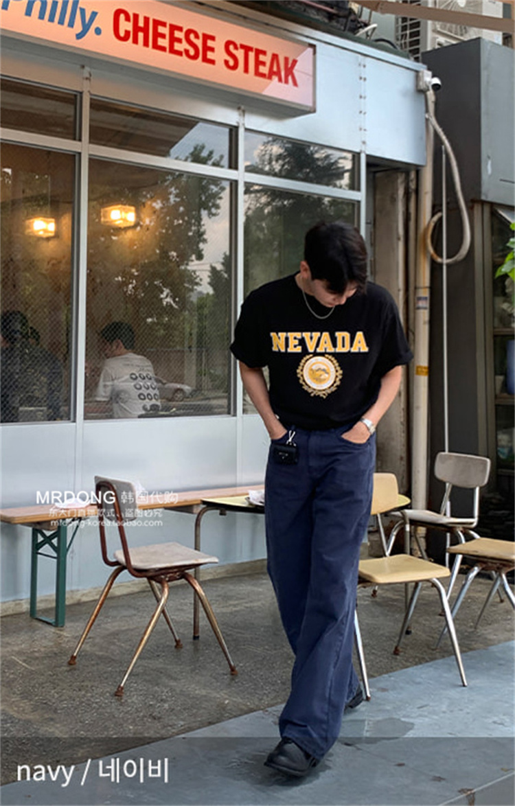 東大門韓國男裝代購直播時尚彩色水洗潮流設計韓版闊腿直筒休閒褲