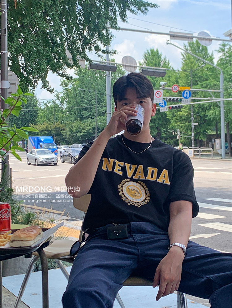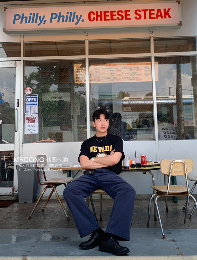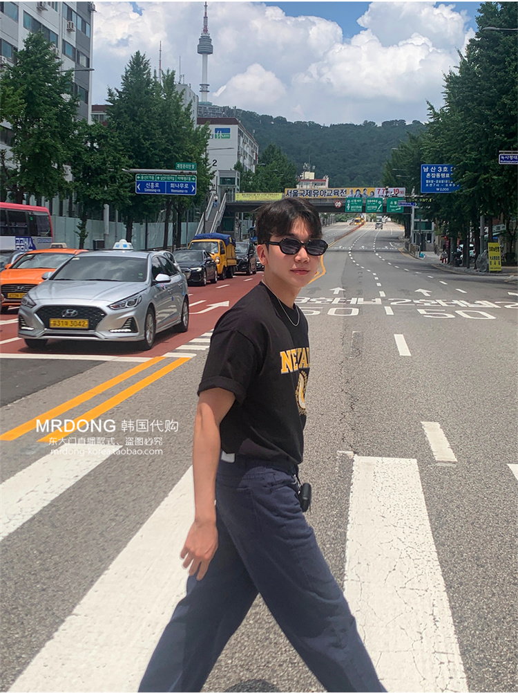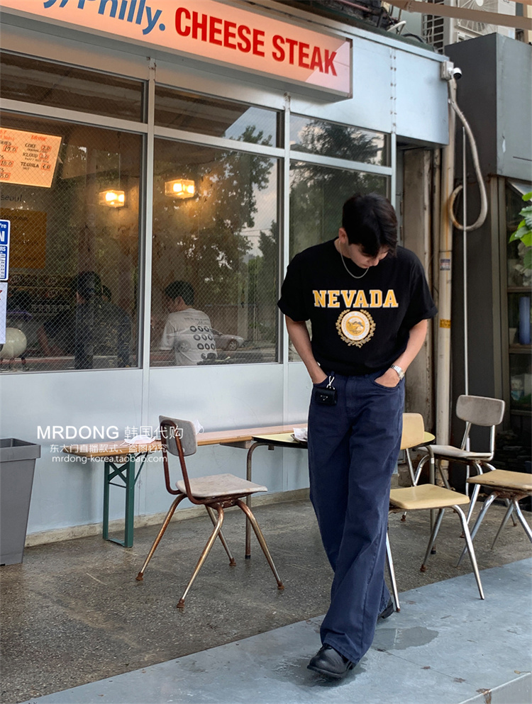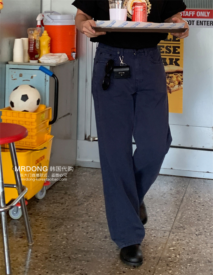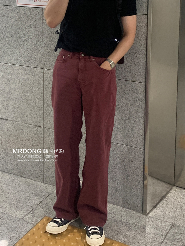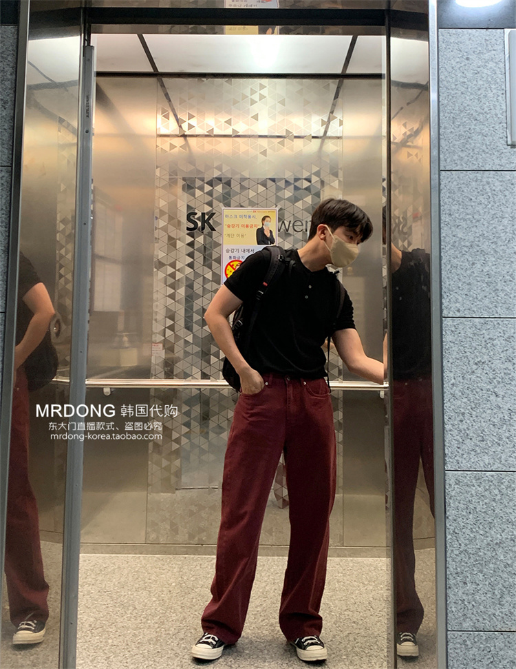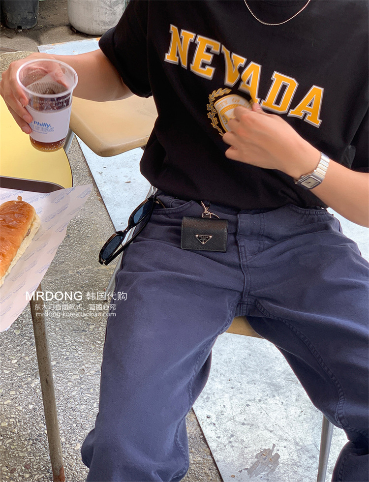 東大門韓國男裝代購直播時尚彩色水洗潮流設計韓版闊腿直筒休閒褲
