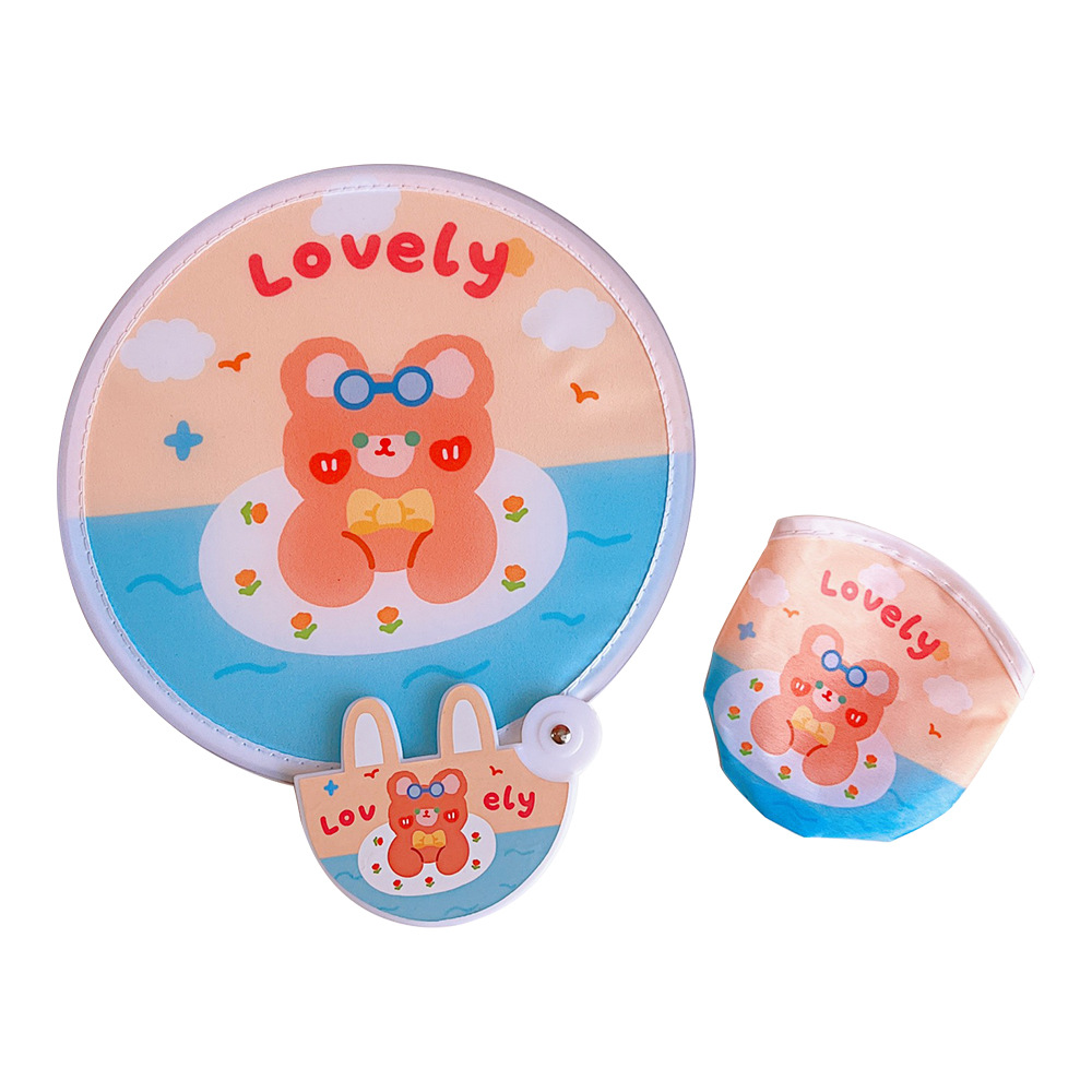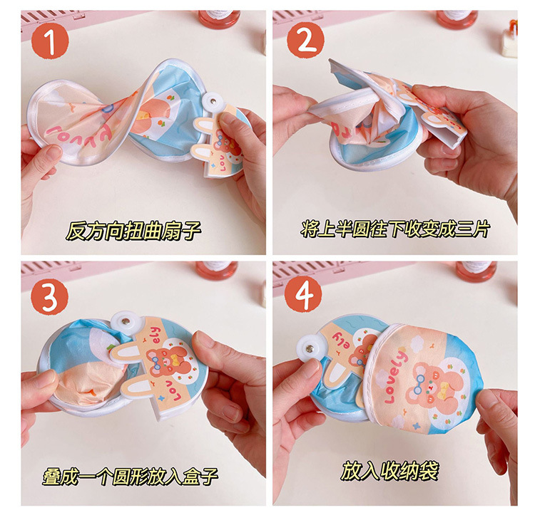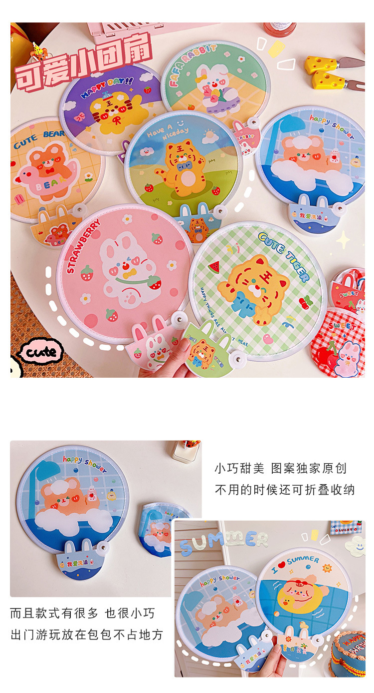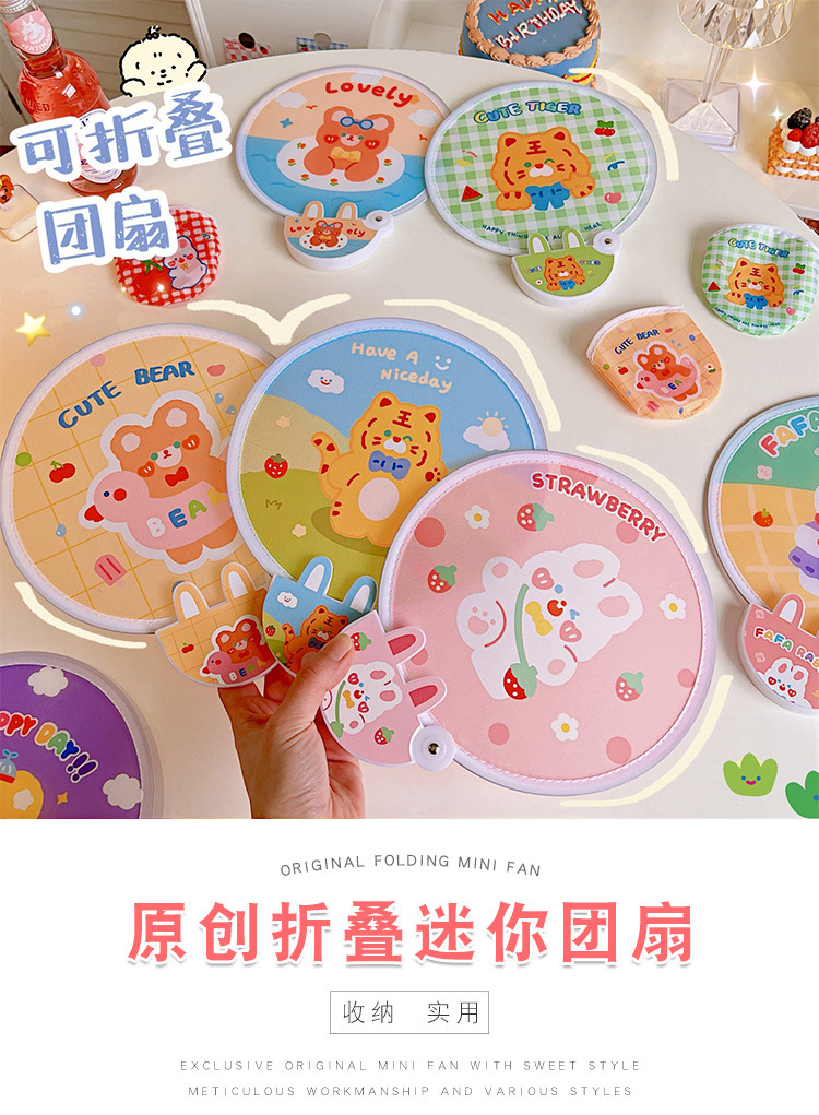 腾亿优品原创折叠团扇可爱迷你布面随身便携扇子节日礼品带柄折扇