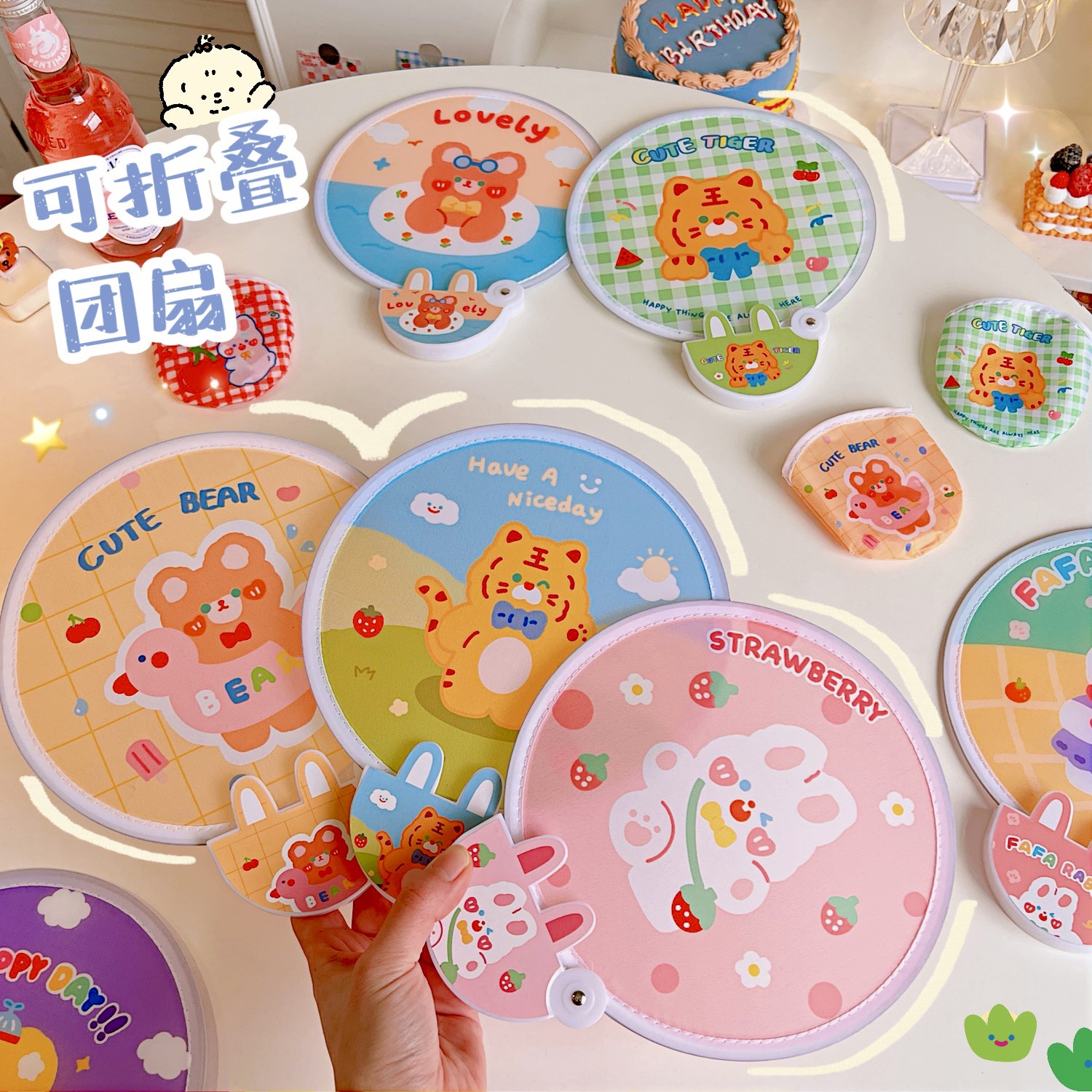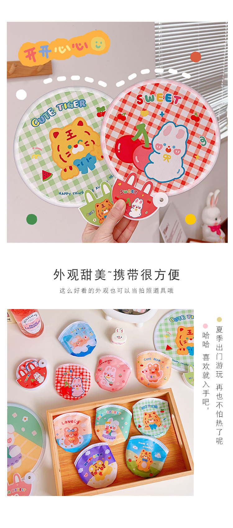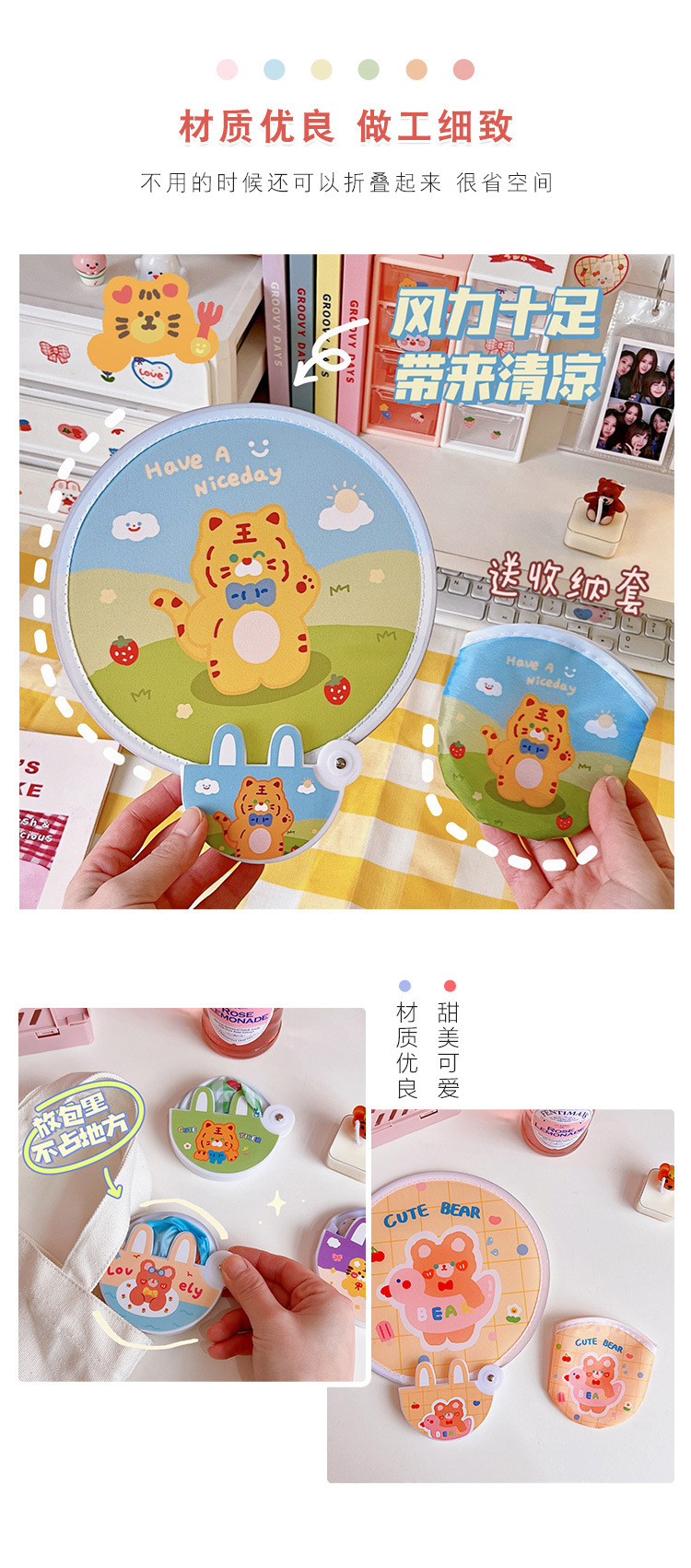 腾亿优品原创折叠团扇可爱迷你布面随身便携扇子节日礼品带柄折扇