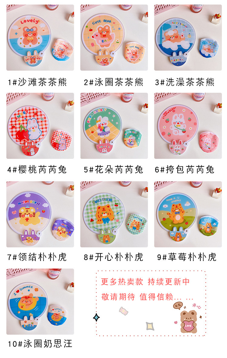 颜色 1#沙滩茶茶熊,2#泳圈茶茶熊,3#洗澡茶茶熊,4#樱桃芮芮兔,5#花朵芮芮兔,6#挎包芮芮兔,1#太热了,2#生日快乐,3#享受你的生活,4#你好,5#我美式,6#幸运,7#夏季,8#心情愉快,9#夏天,10#财气满满,11#夏季降温,12#草莓芮芮兔,13#快乐的每一天