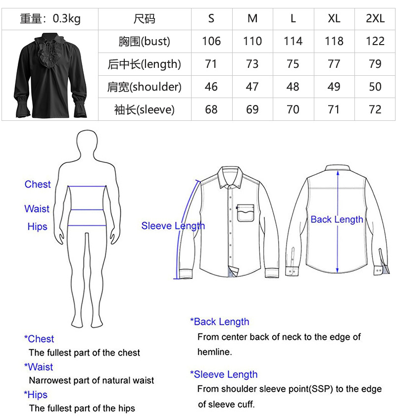 男式荷叶边文艺复兴时期服装衬衫中世纪蒸汽朋克海盗殖民地上衣