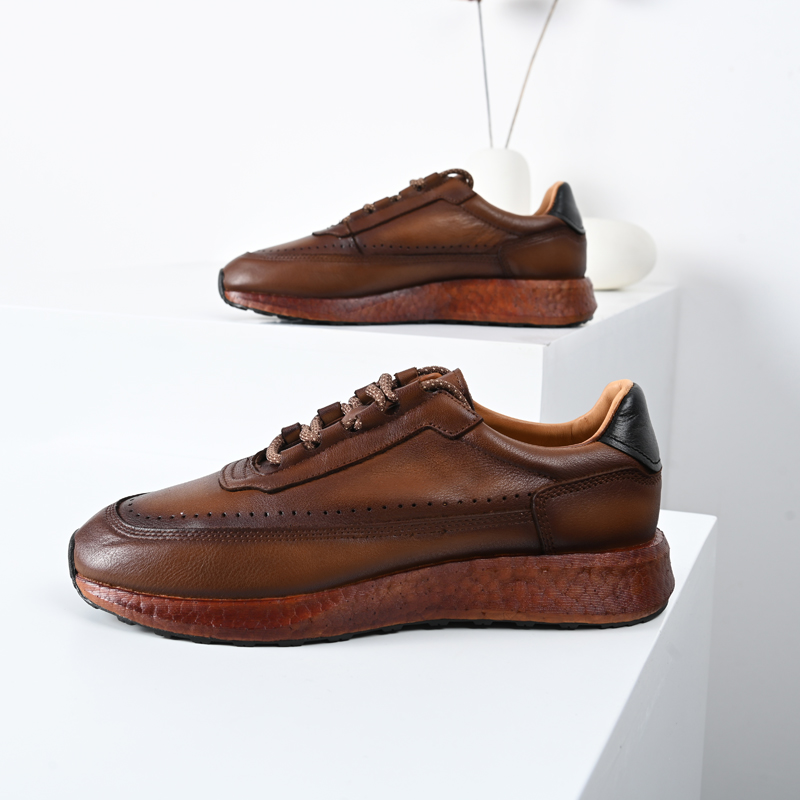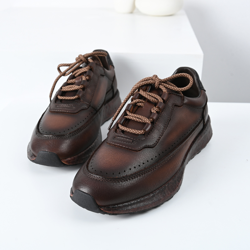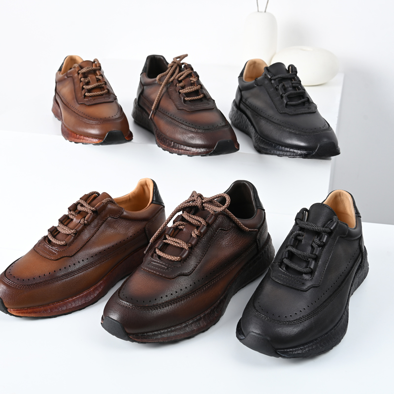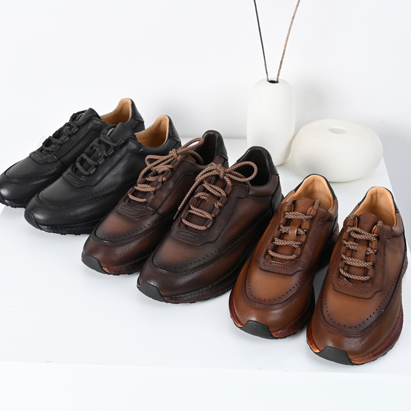 千元級/歐單 手感擦色/頭層樹膏牛皮 爆米軟底男士休閒皮鞋低幫鞋