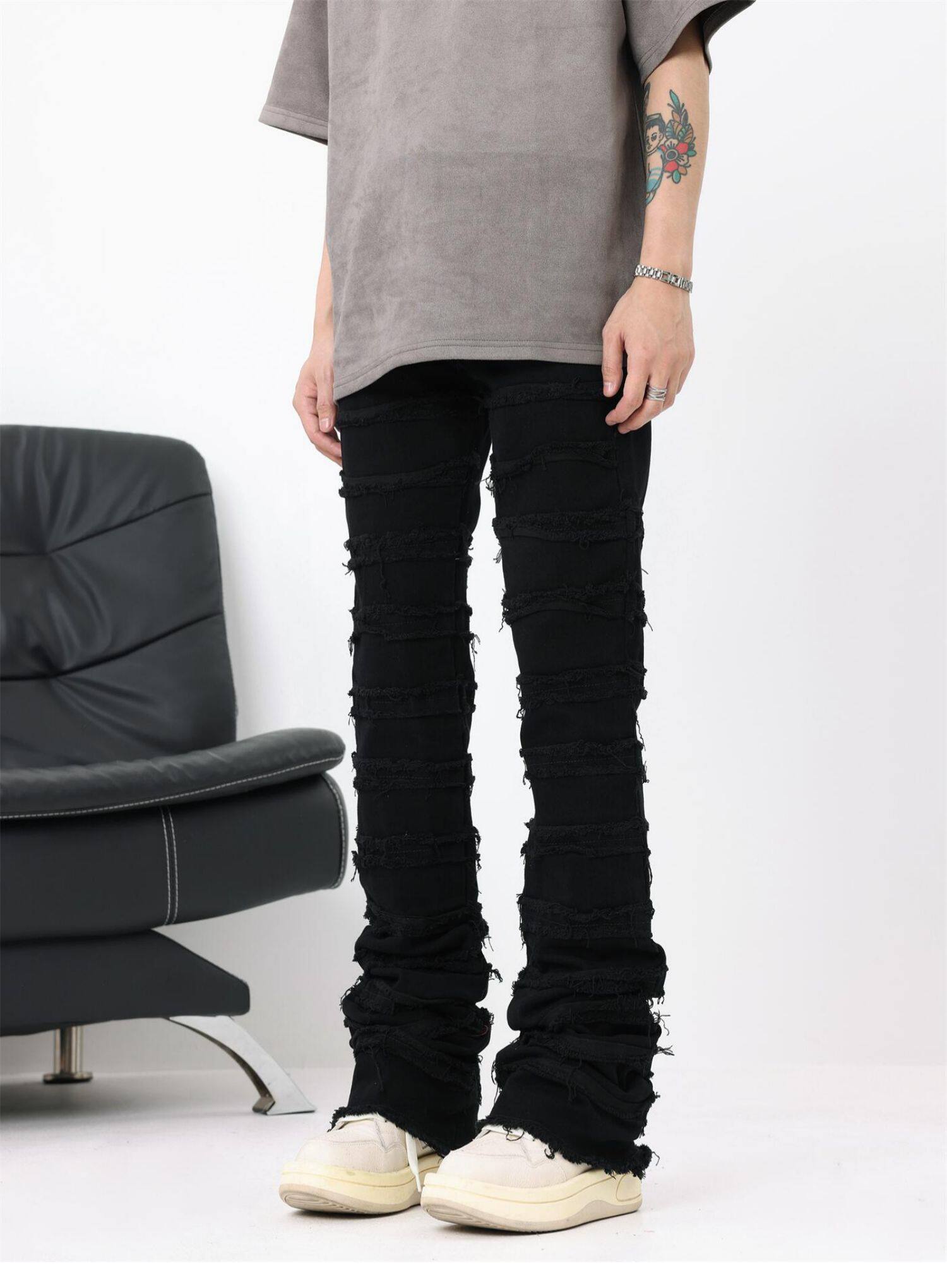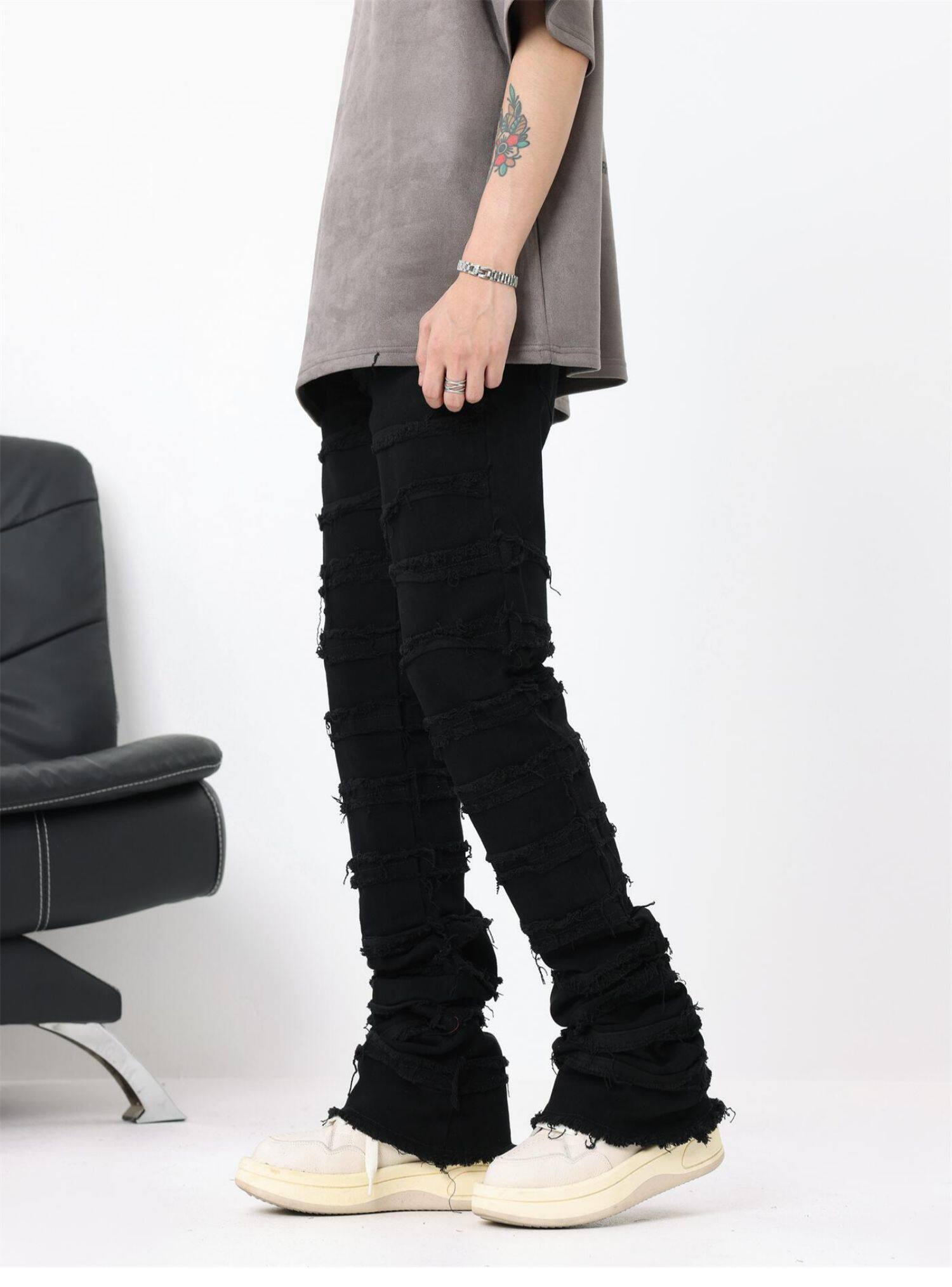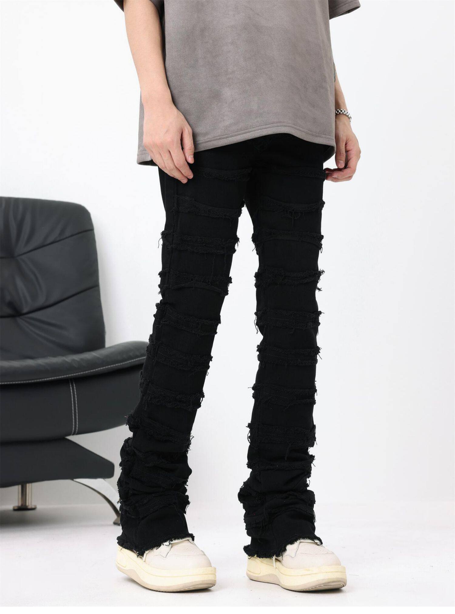 BTSG美式糜爛破壞毛邊高街牛仔褲男ins嘻哈潮牌vintage顯瘦長褲子