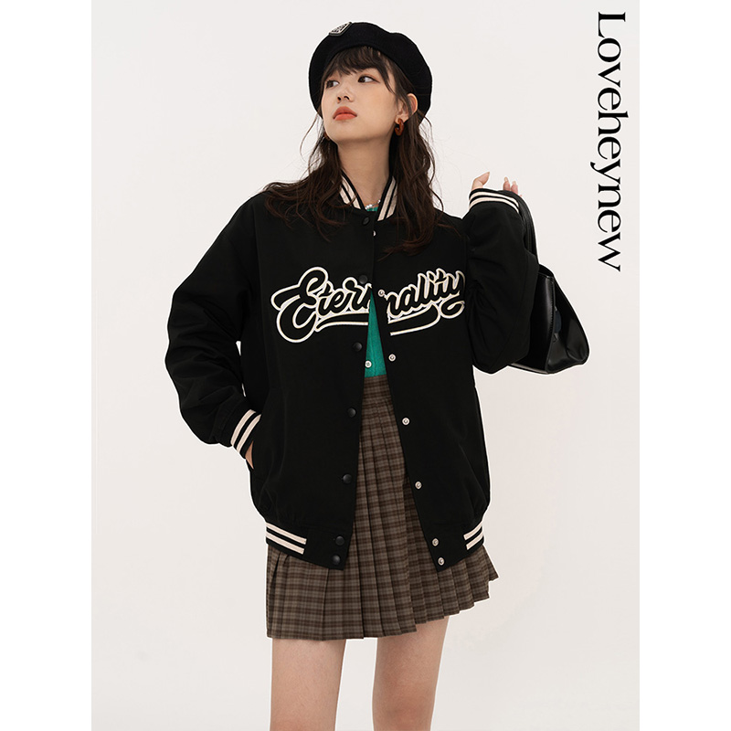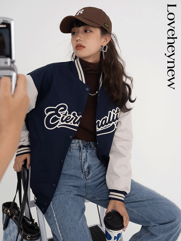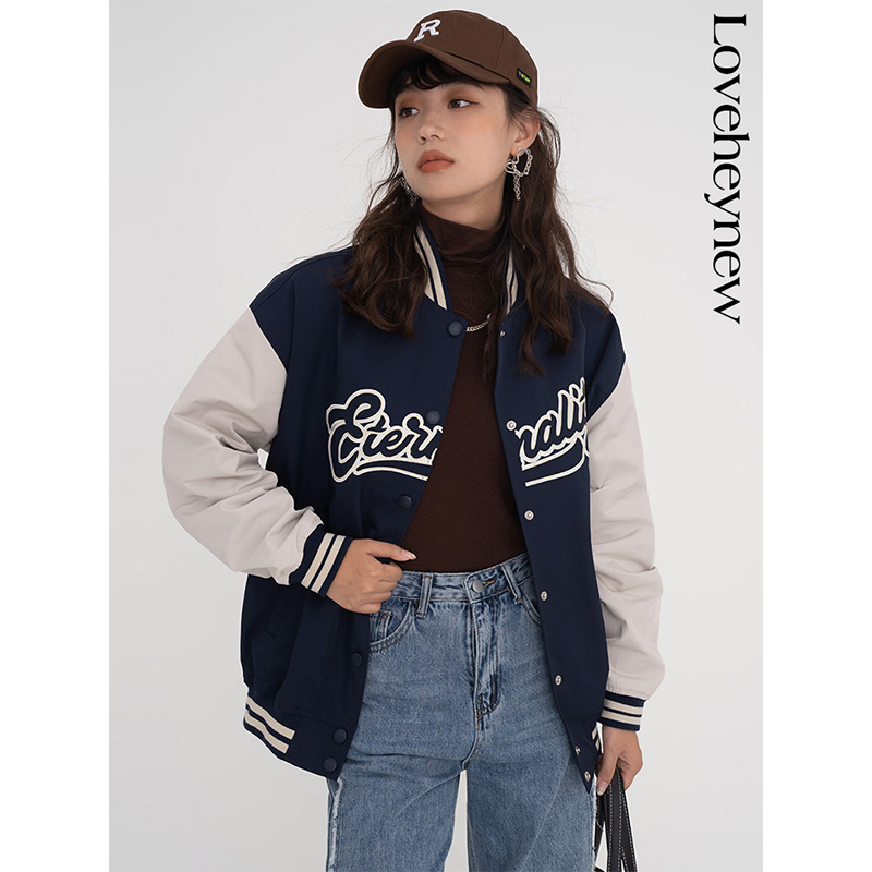【反季8折】美式復古棒球服女春秋季新款學院風休閒百搭夾克外套