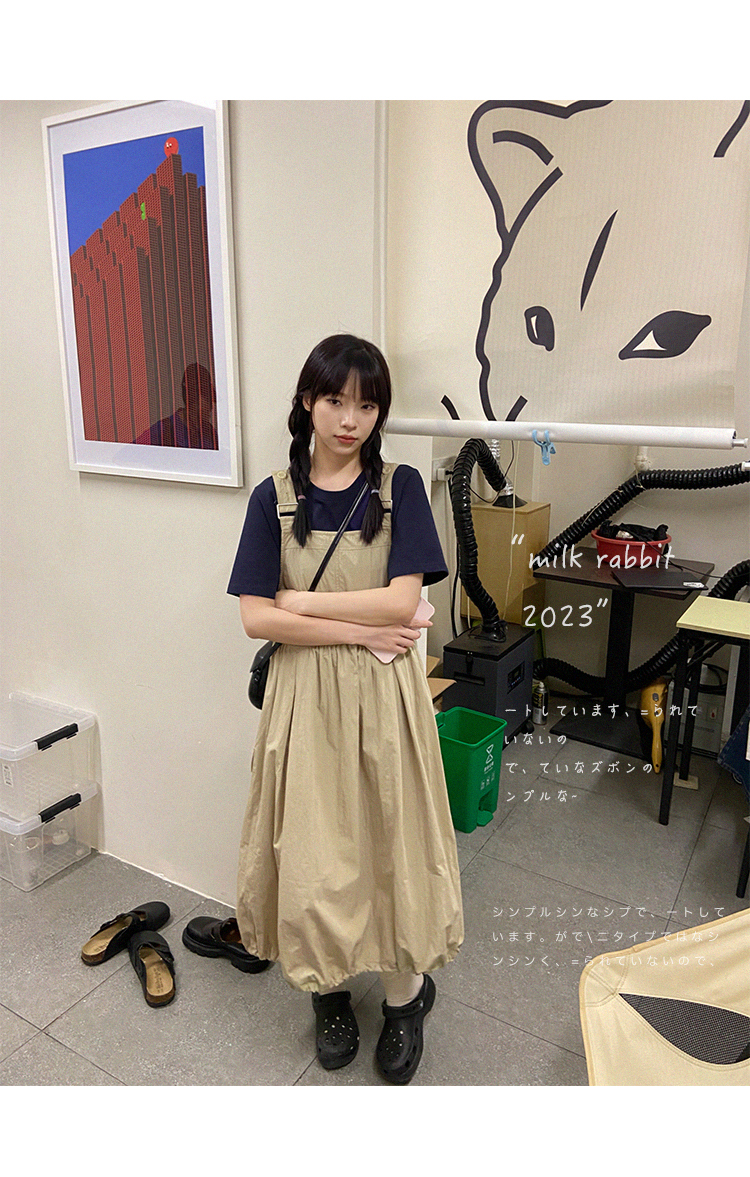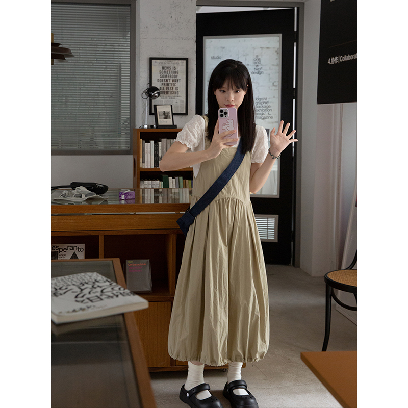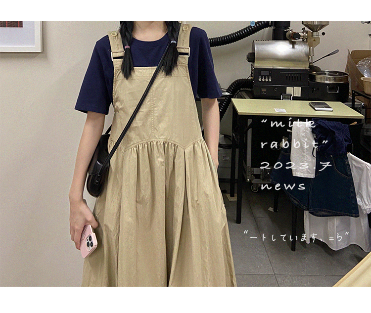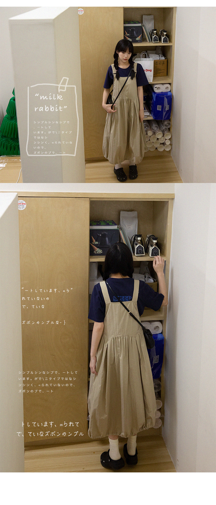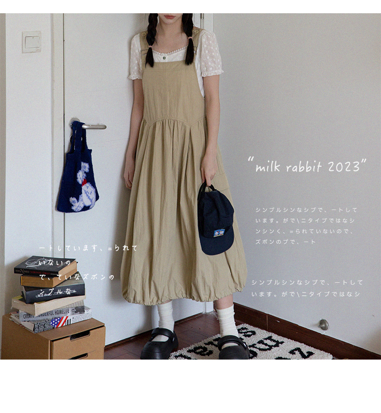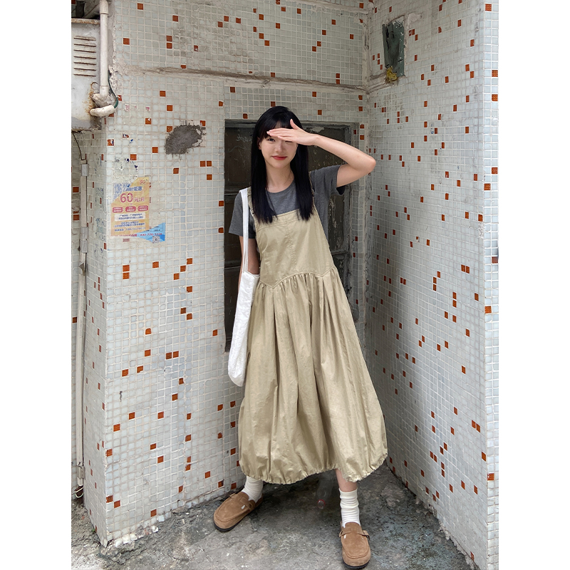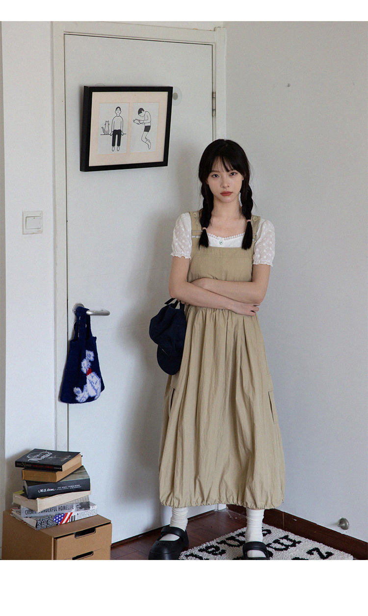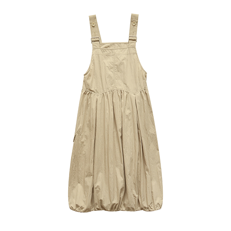 奶兔星球-自制 山系抱嬰袋裙大口袋休閒工作服洋裝調節肩帶花苞裙子