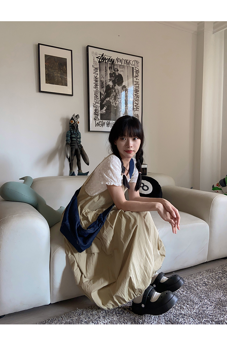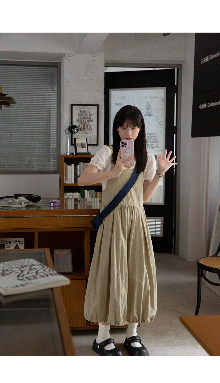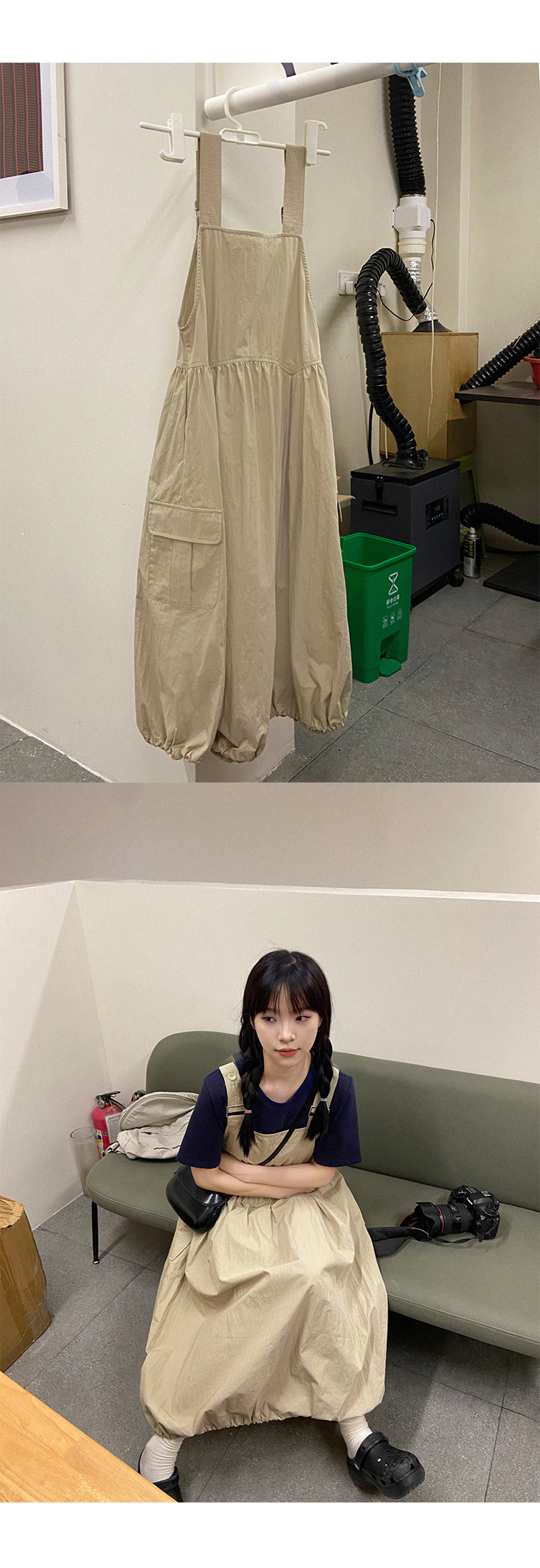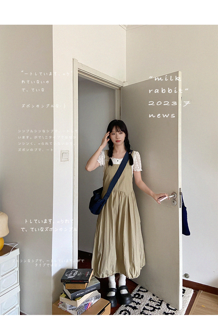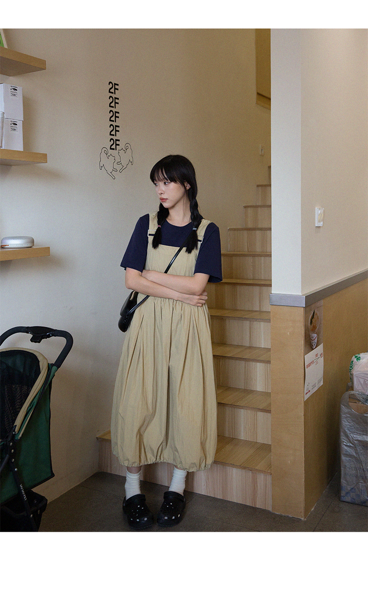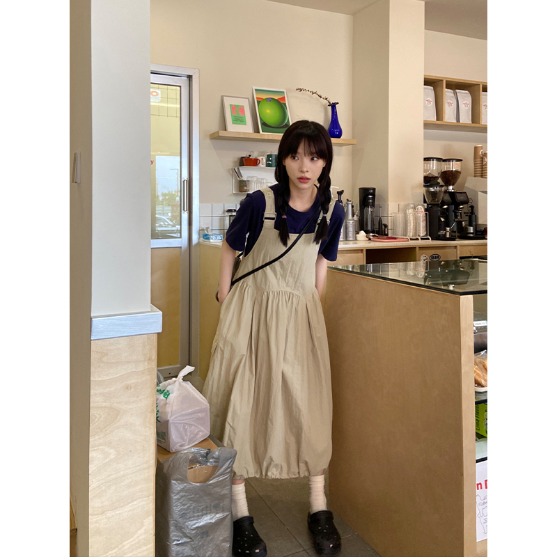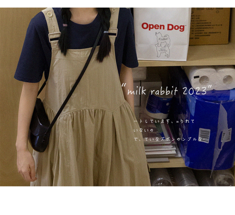 奶兔星球-自制 山系抱嬰袋裙大口袋休閒工作服洋裝調節肩帶花苞裙子