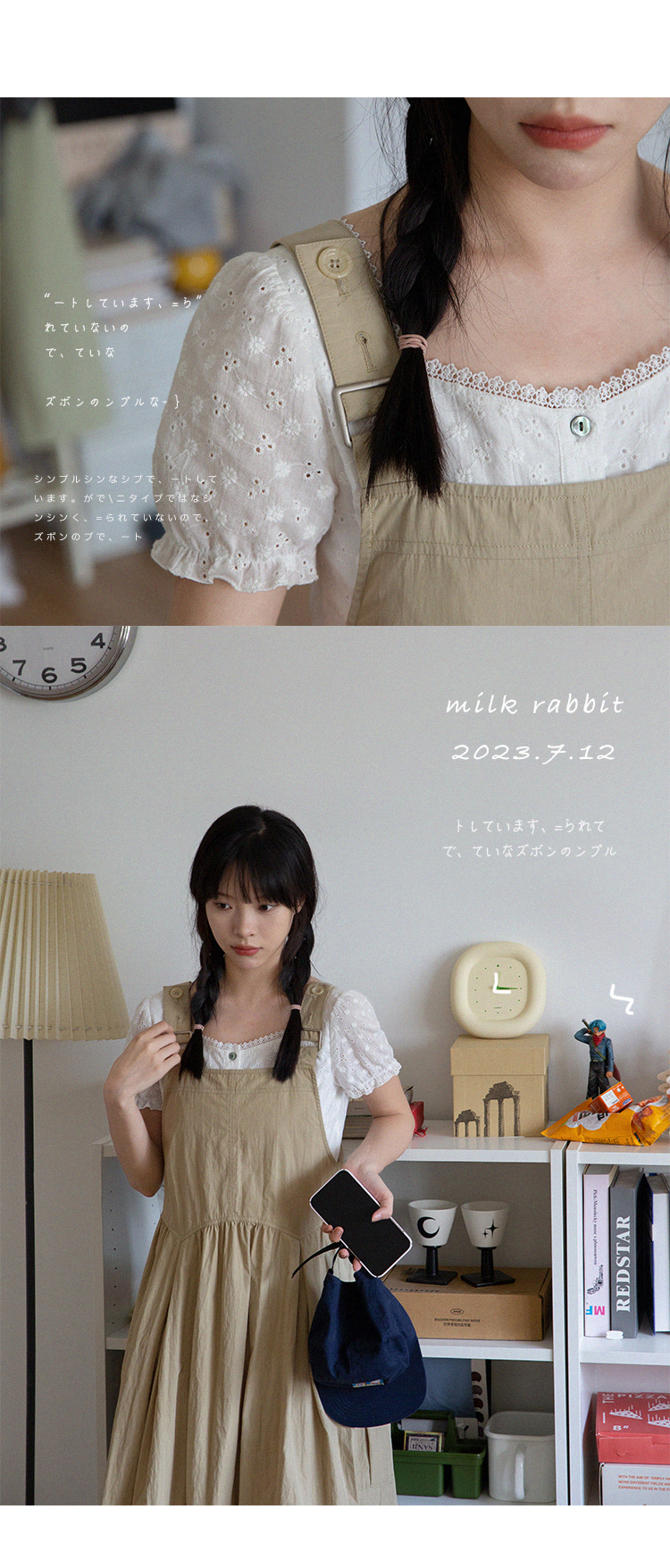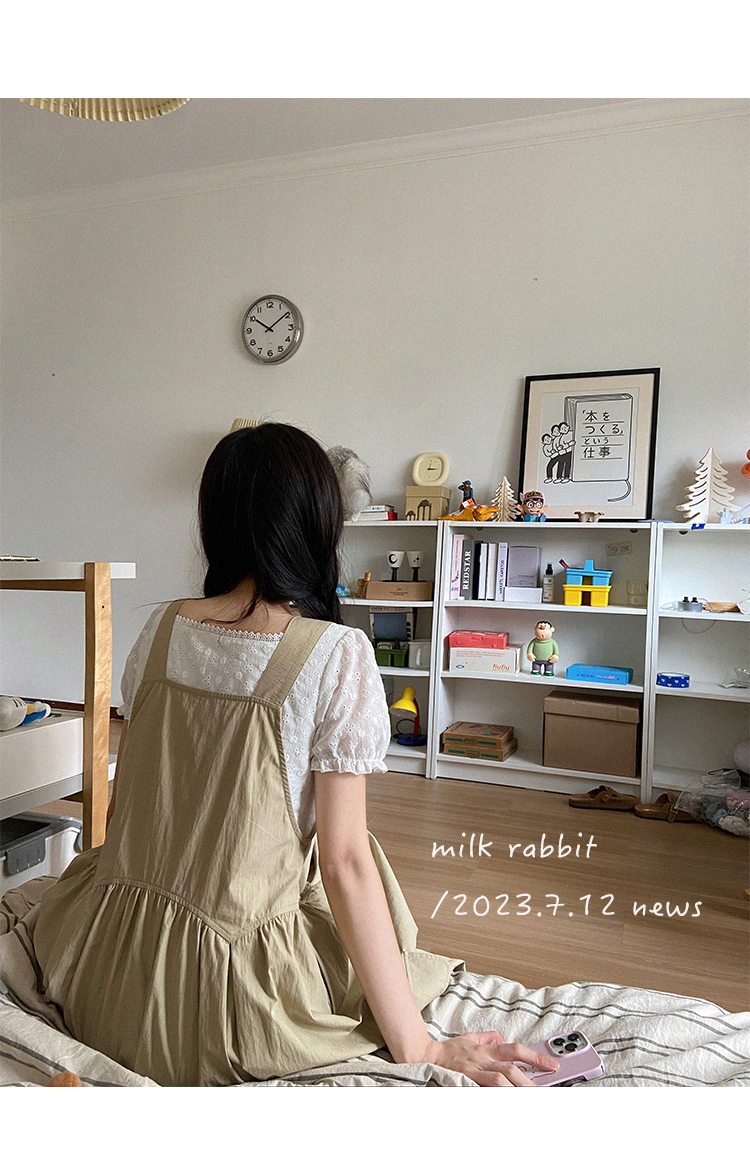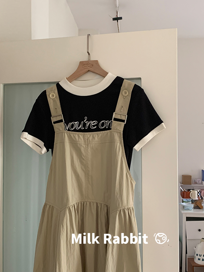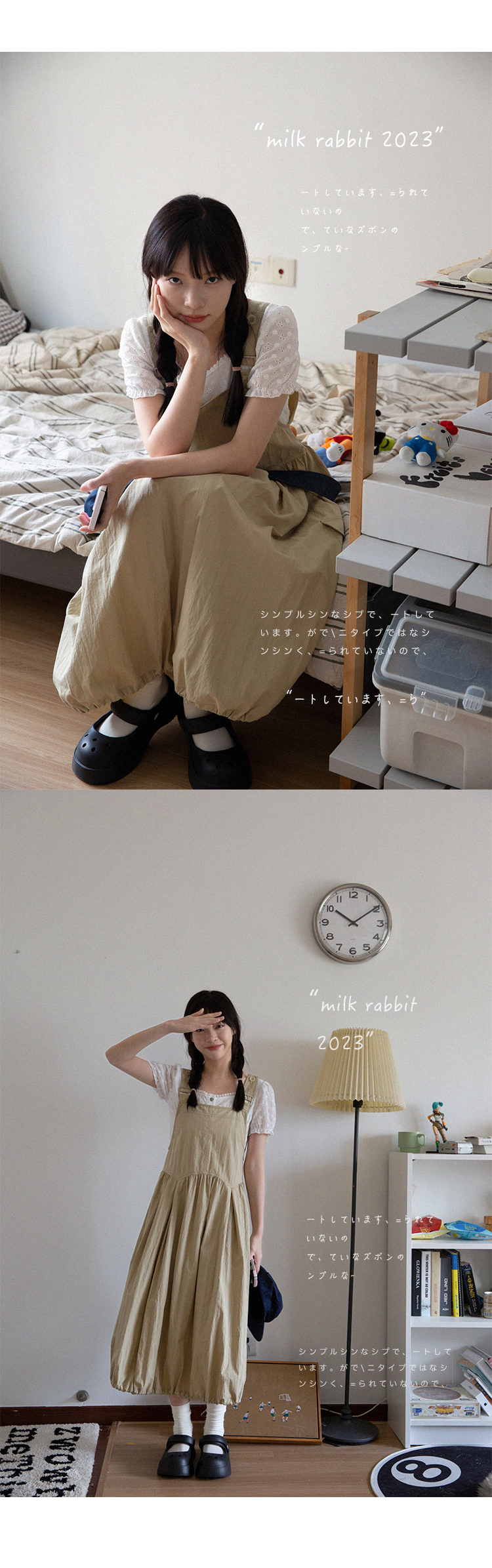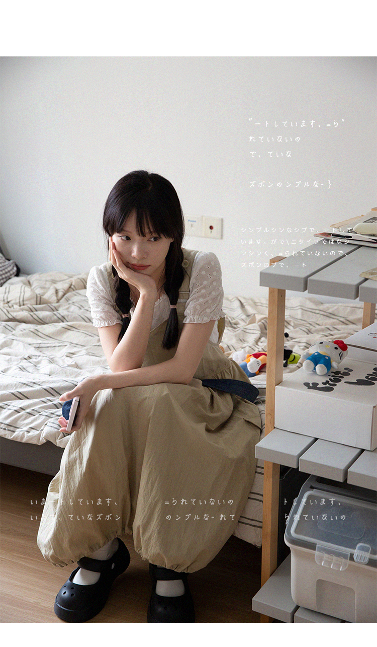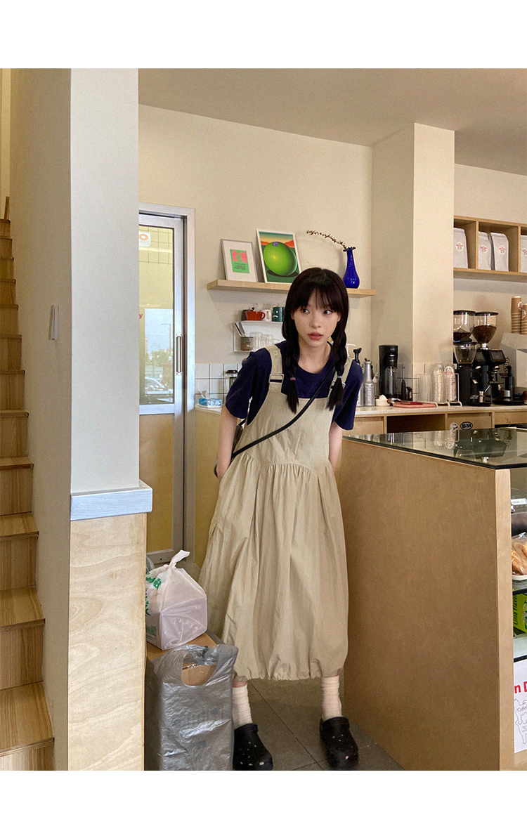奶兔星球-自制 山系抱嬰袋裙大口袋休閒工作服洋裝調節肩帶花苞裙子