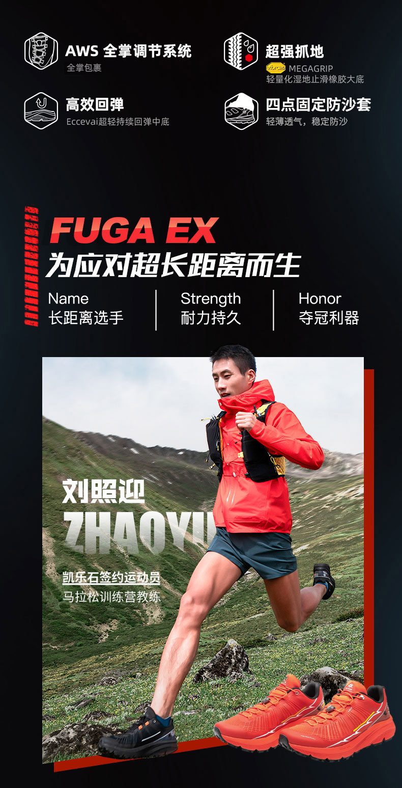 凱樂石戶外防滑長距離越野跑鞋男女飛翼FUGA EX百公裏跑山鞋透氣