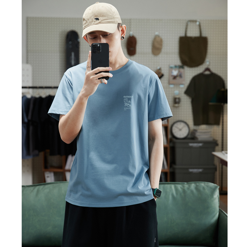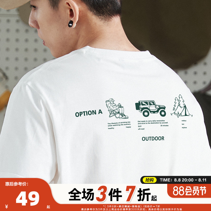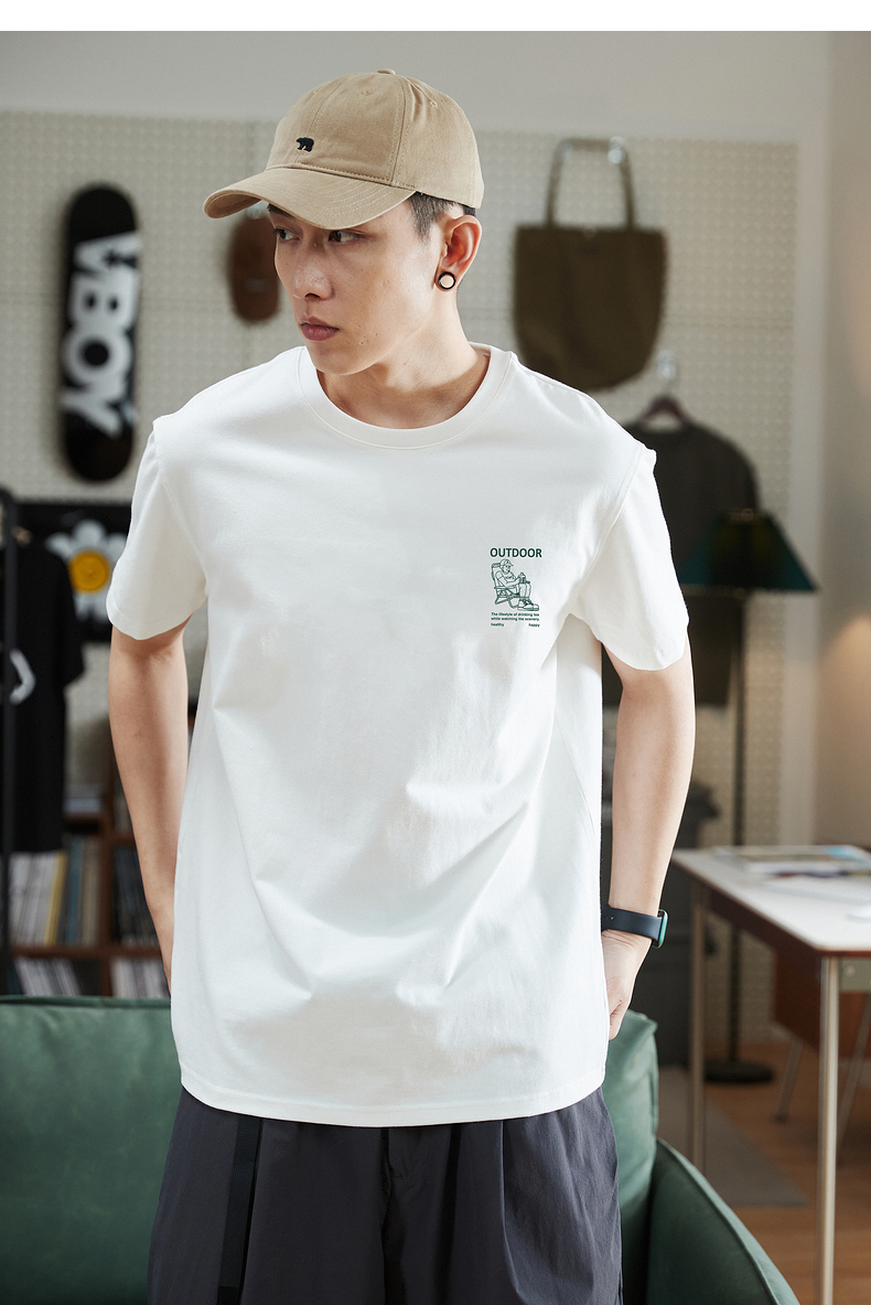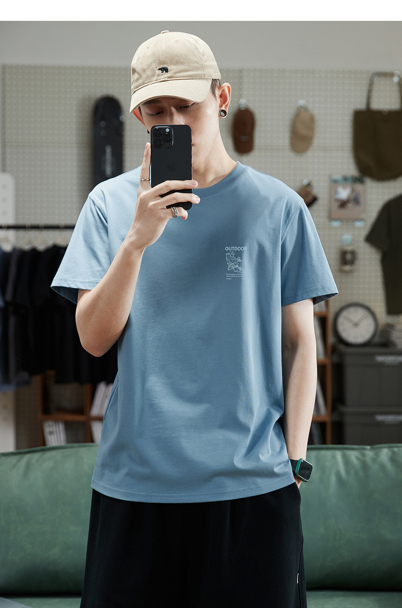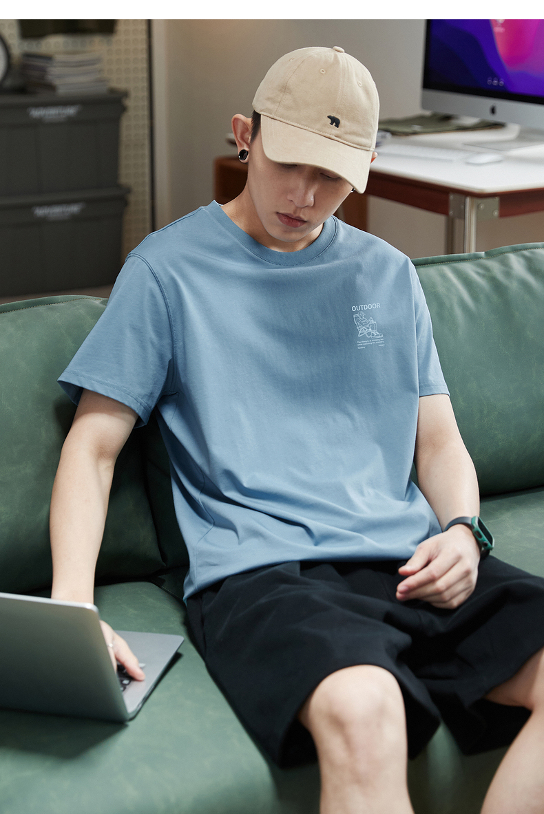 唐獅2023年夏季新款短袖T恤男潮牌印花基礎簡約純色半袖純棉上衣