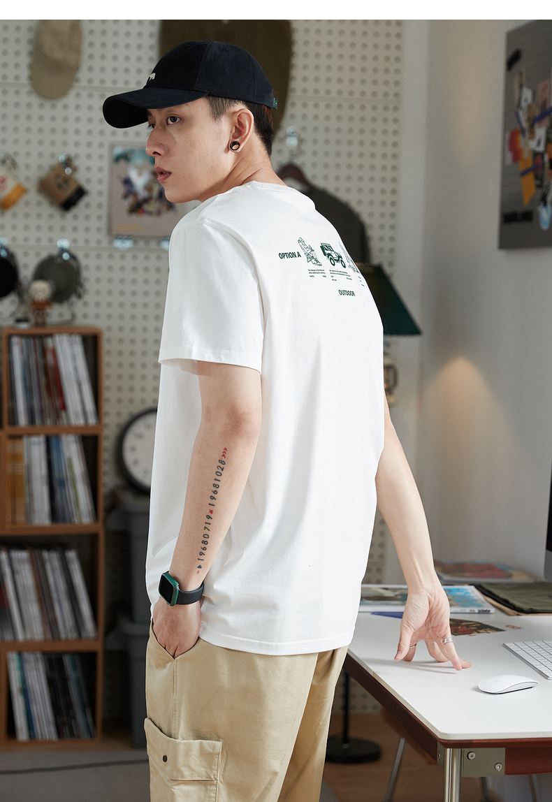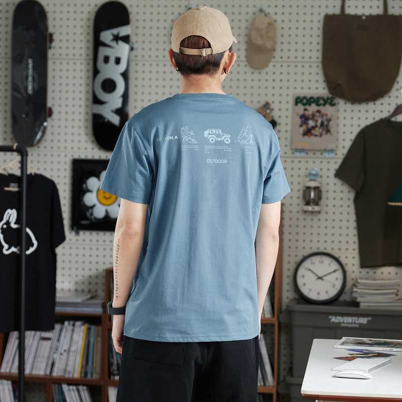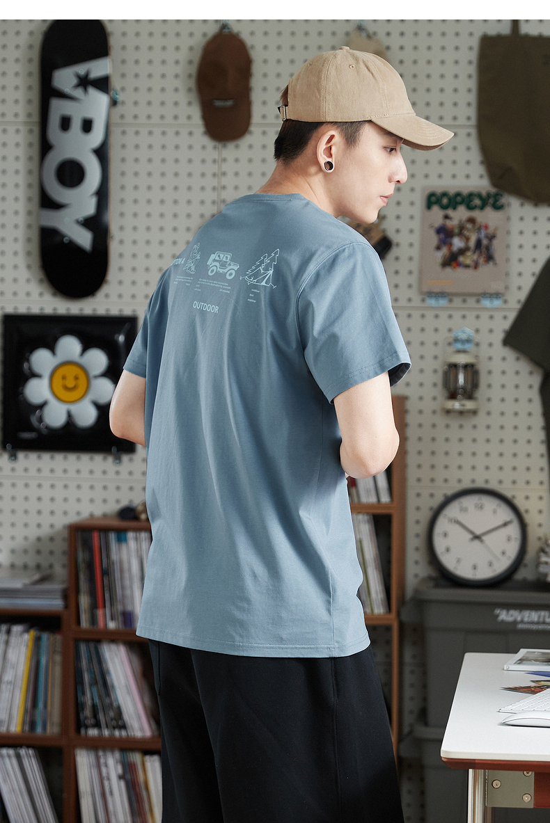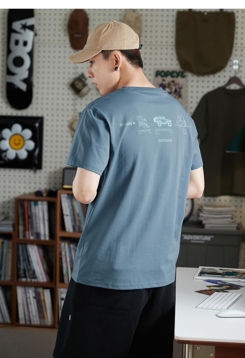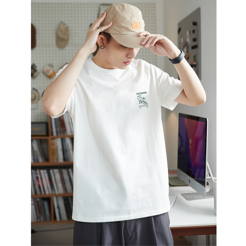 唐獅2023年夏季新款短袖T恤男潮牌印花基礎簡約純色半袖純棉上衣