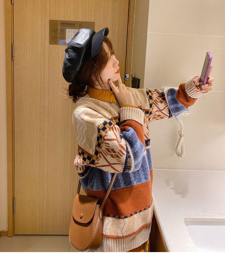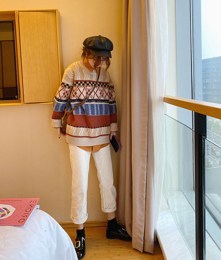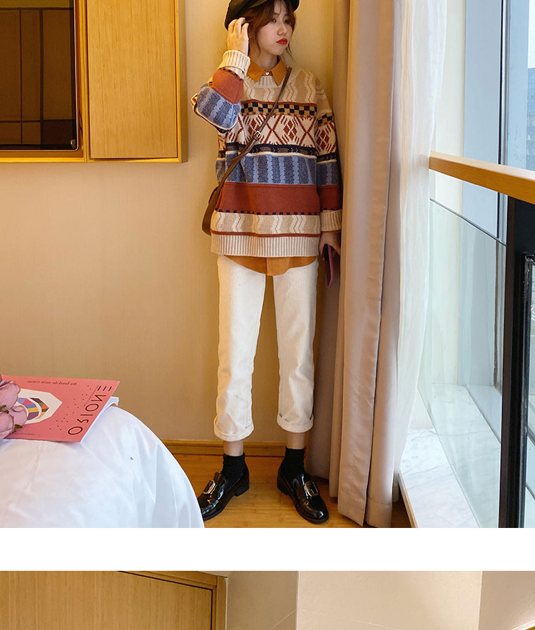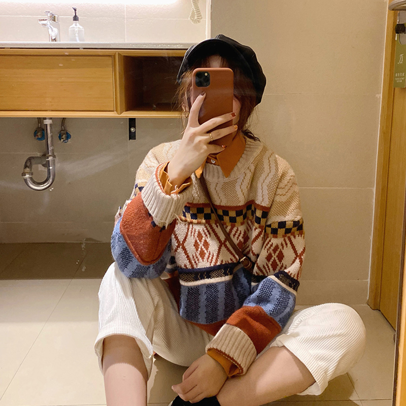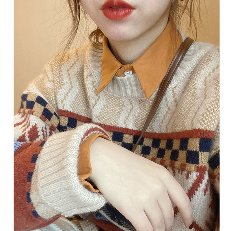 黃色襯衫撞色毛衣套裝女港風復古網紅小個子休閒時尚褲裝兩件套秋
