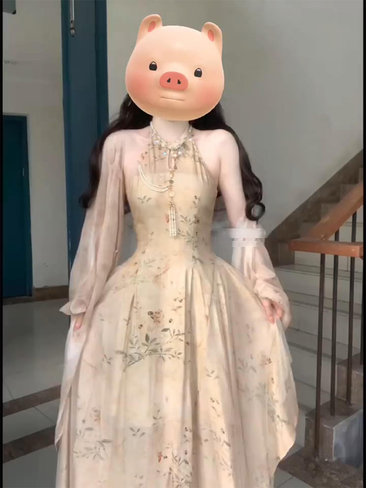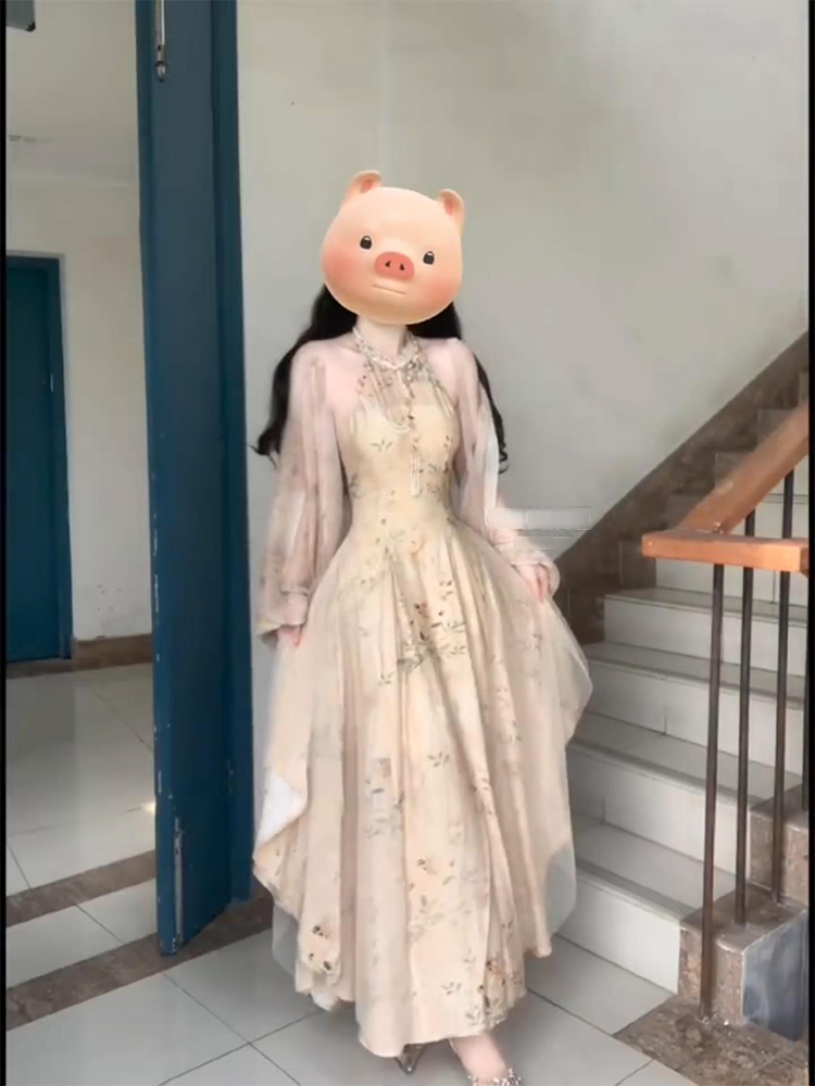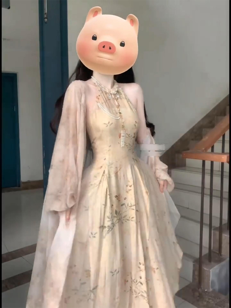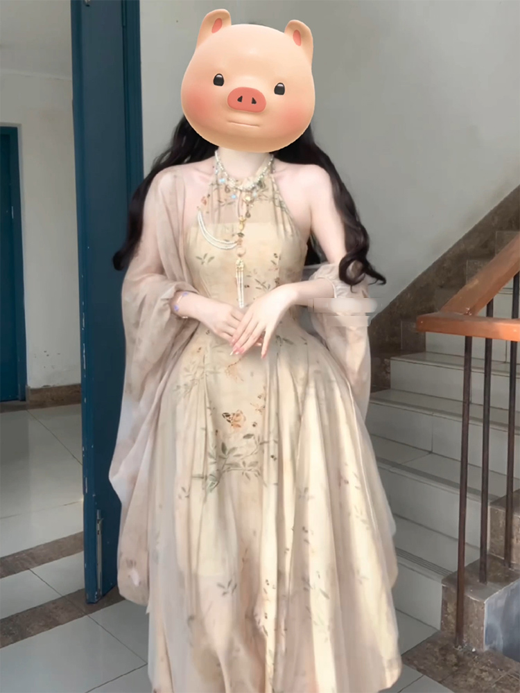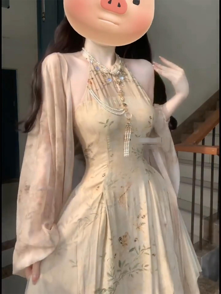 大尺碼新中式改良旗袍挖肩拼接網紗洋裝女國風禪意開衫兩件套夏季
