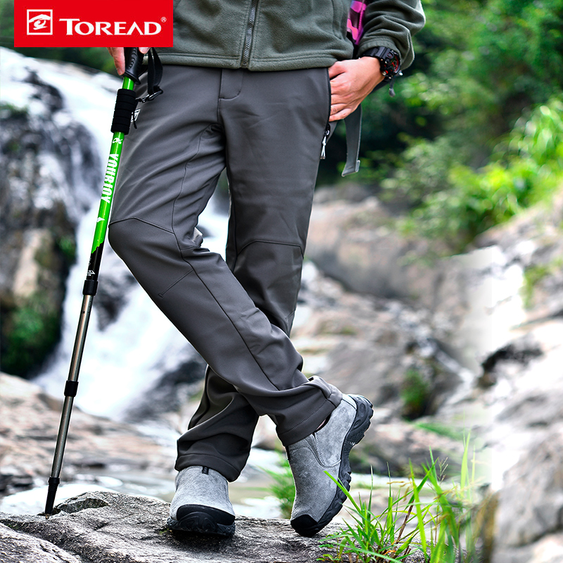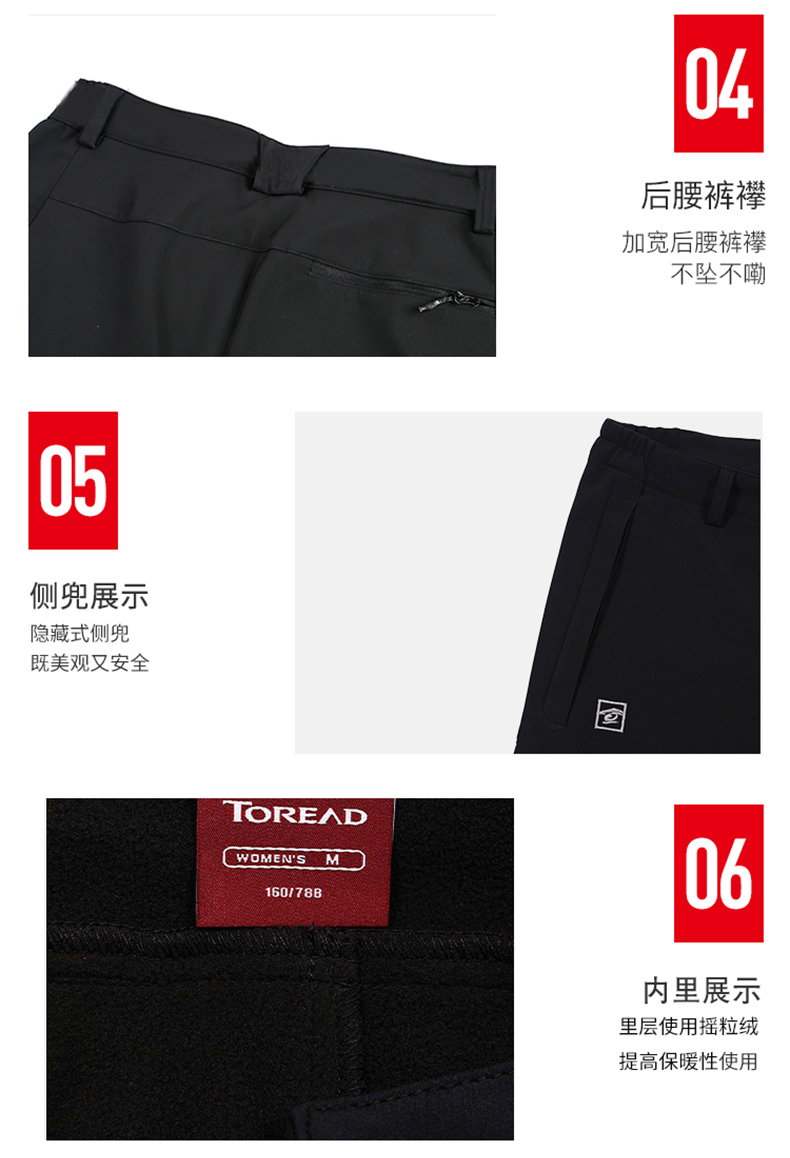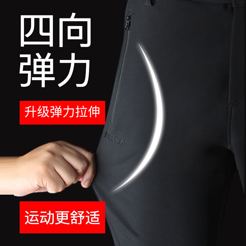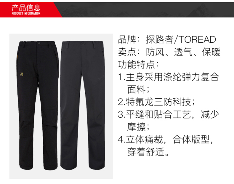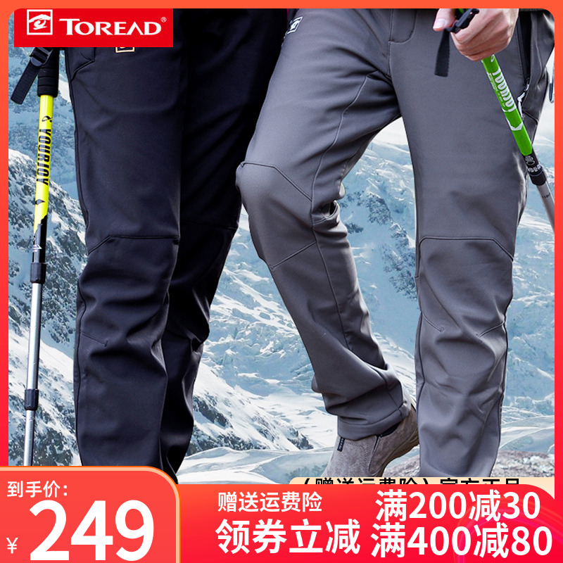 探路者衝鋒褲男戶外冬季軟殼褲加絨加厚防風防水登山保暖滑雪褲女