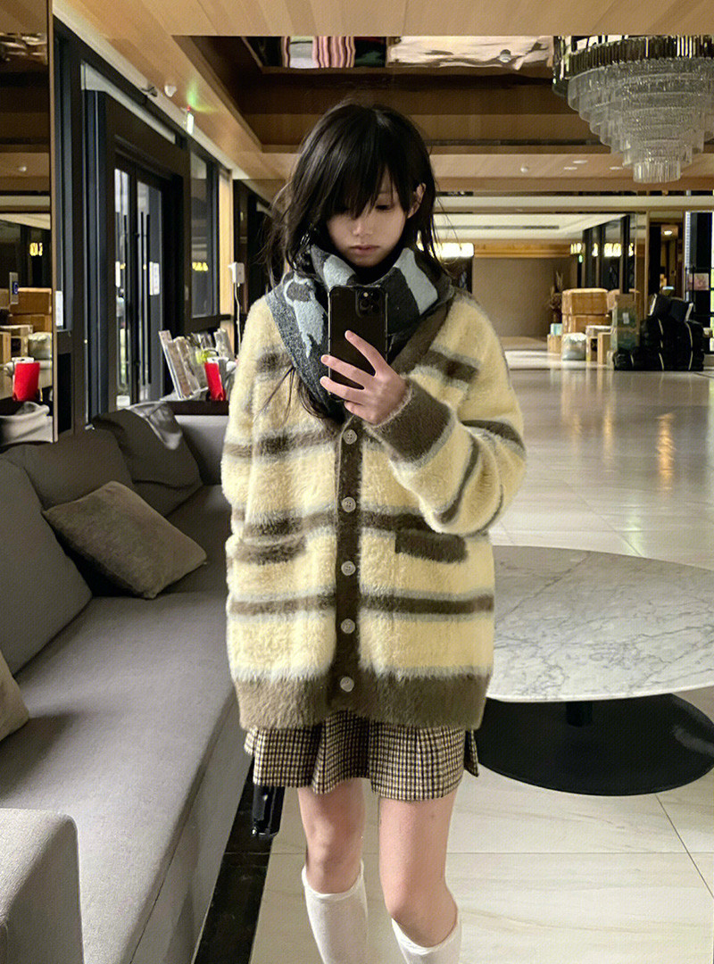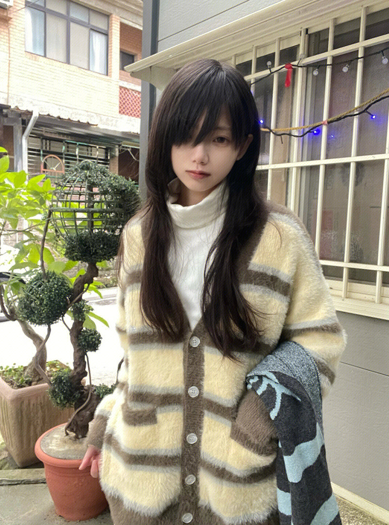 奶fufu超好看軟糯溫柔V領開衫毛衣女秋冬寬鬆加厚慵懶風bf針織衫