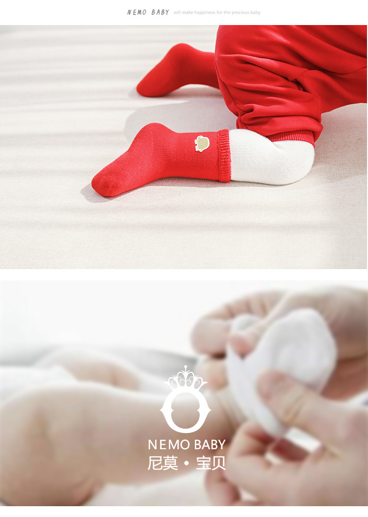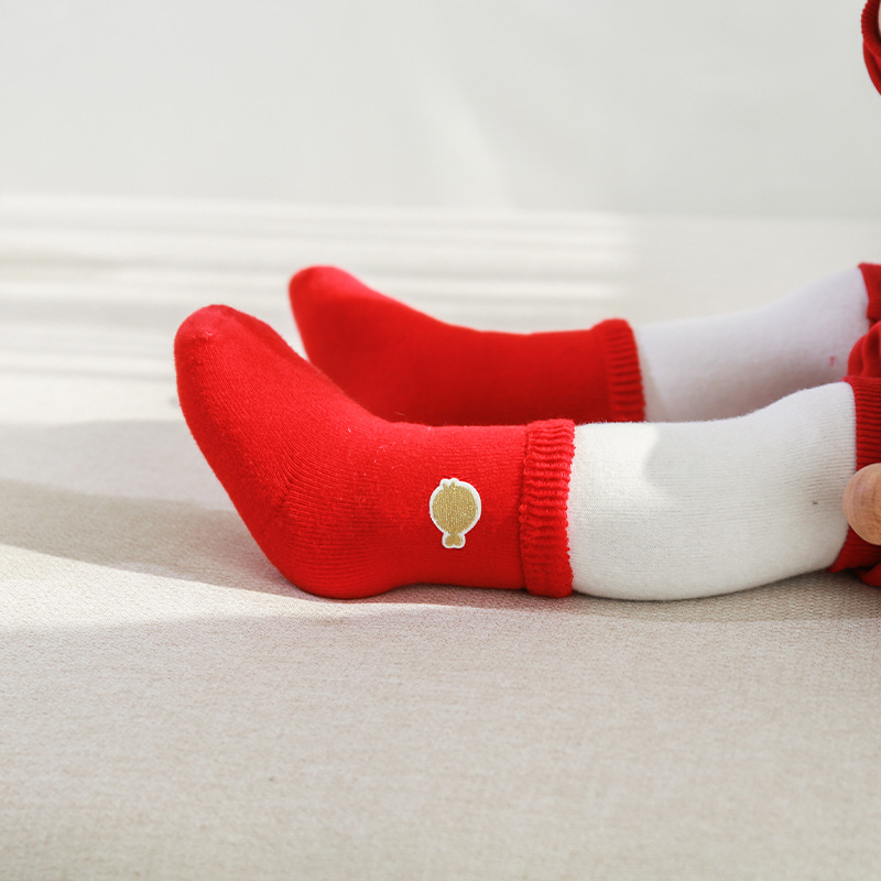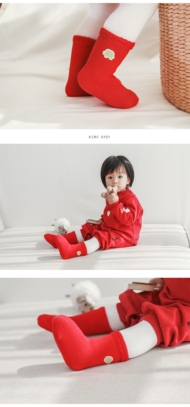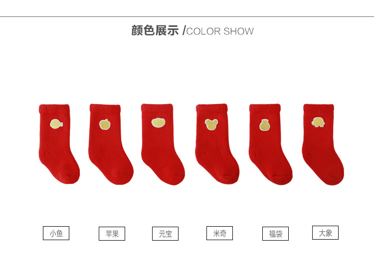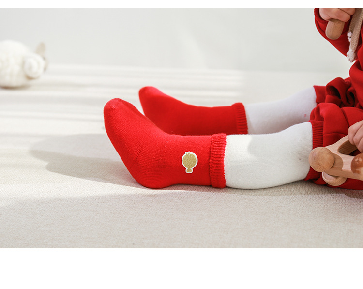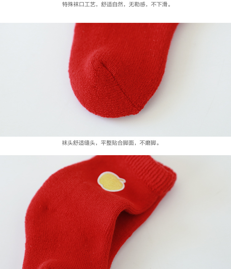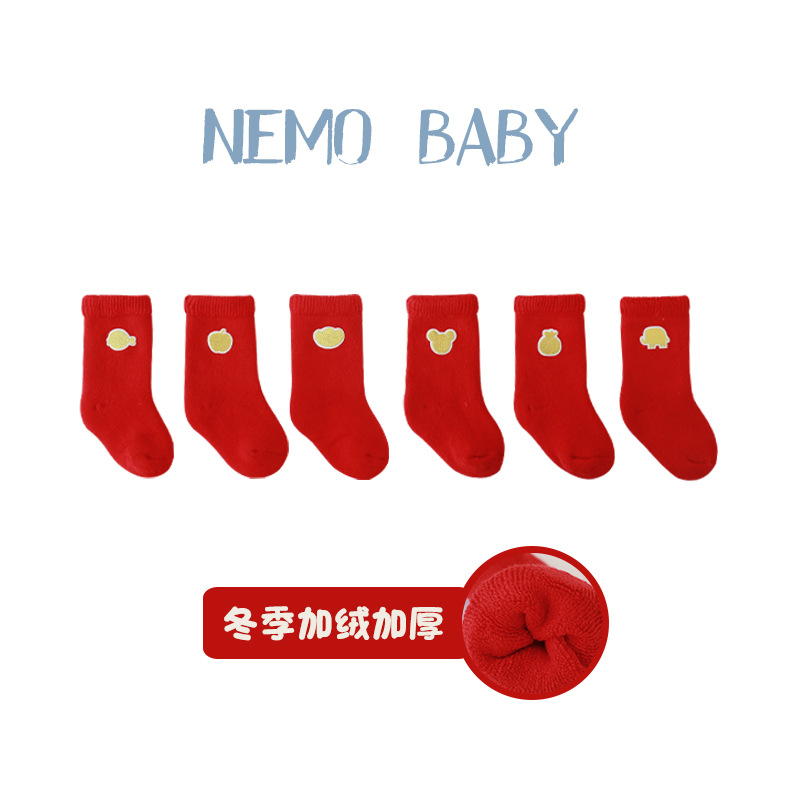 20年宝宝袜子新款秋冬季加厚毛圈袜本命年大红袜新生婴儿短袜保暖