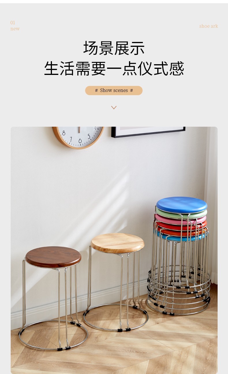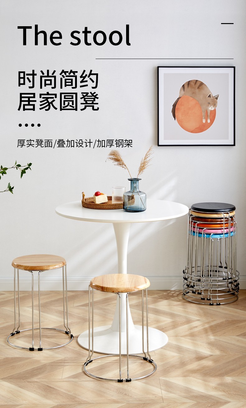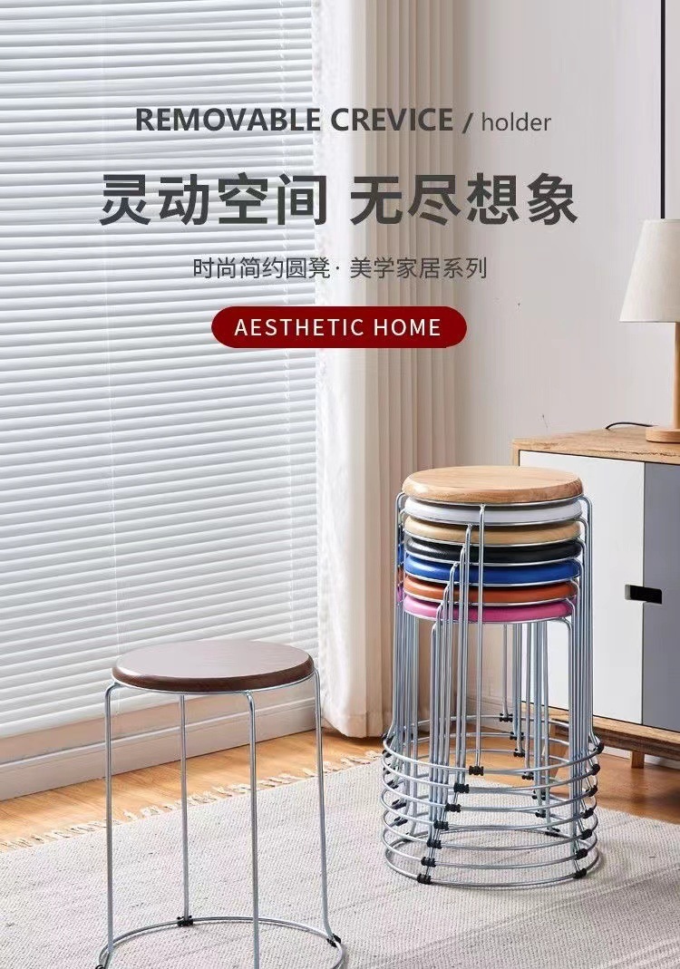 家用圆凳实心凳子实木凳收纳凳时尚换鞋凳铁凳铁圆凳子加厚钢筋凳