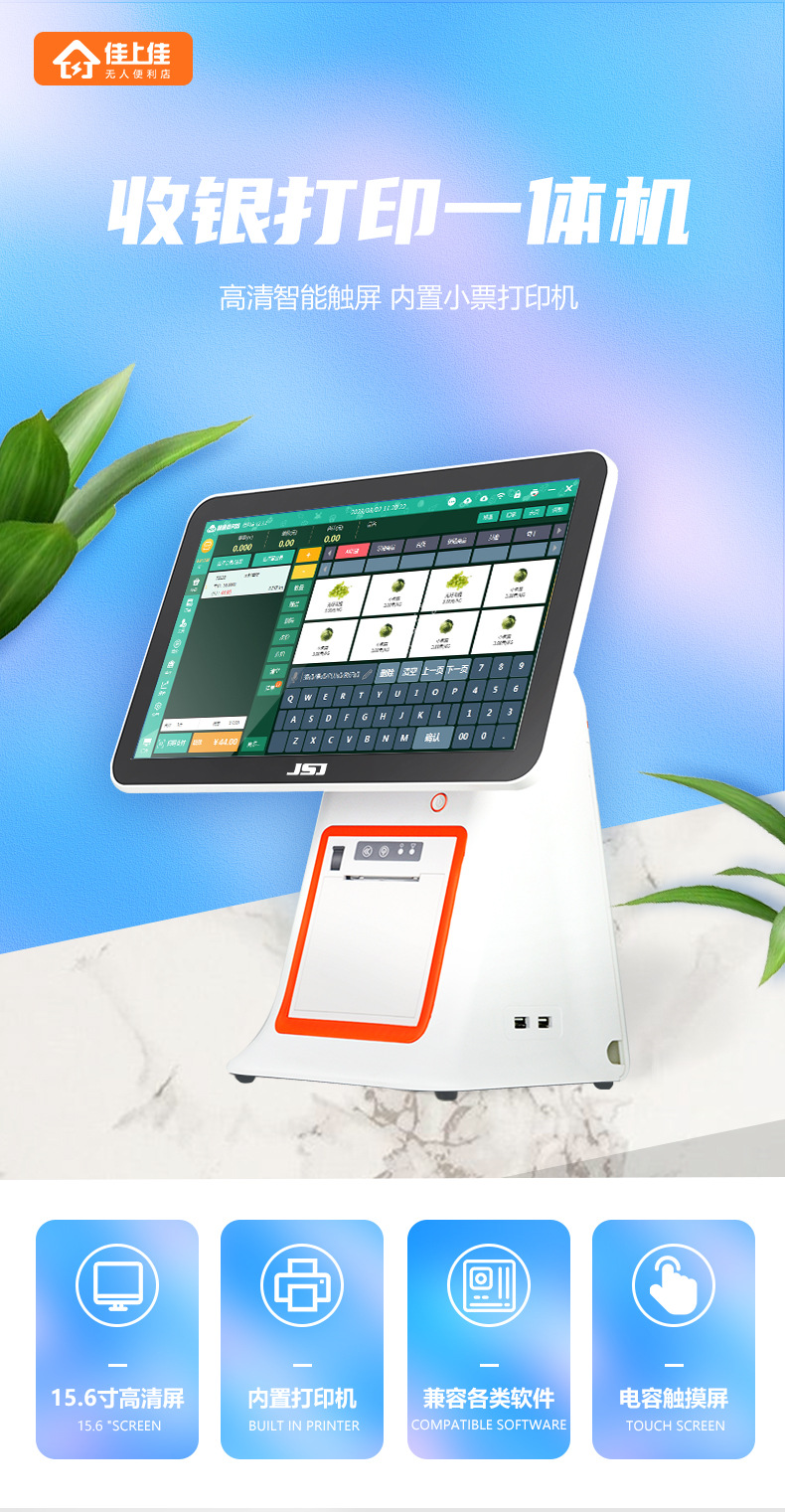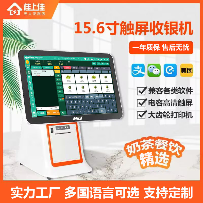 15.6寸超市服装店外卖药店收款机一体机奶茶单屏触摸收银机