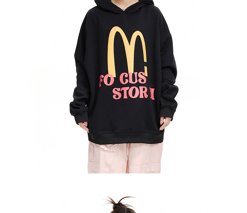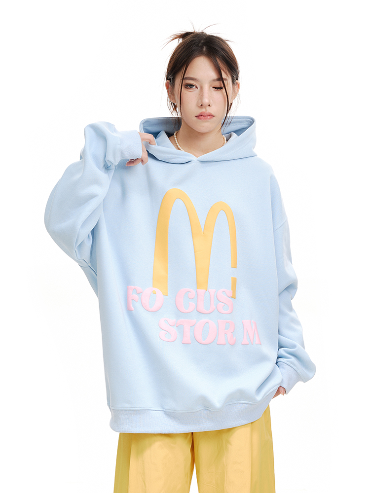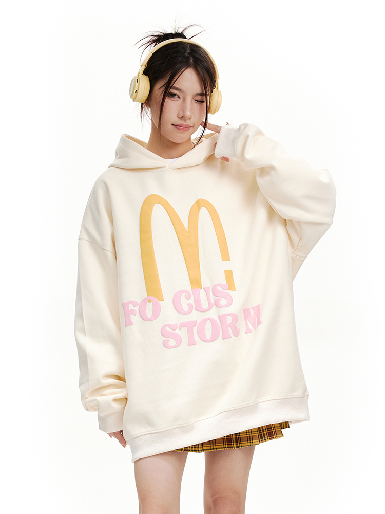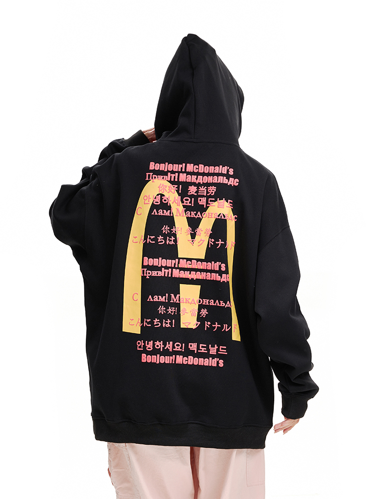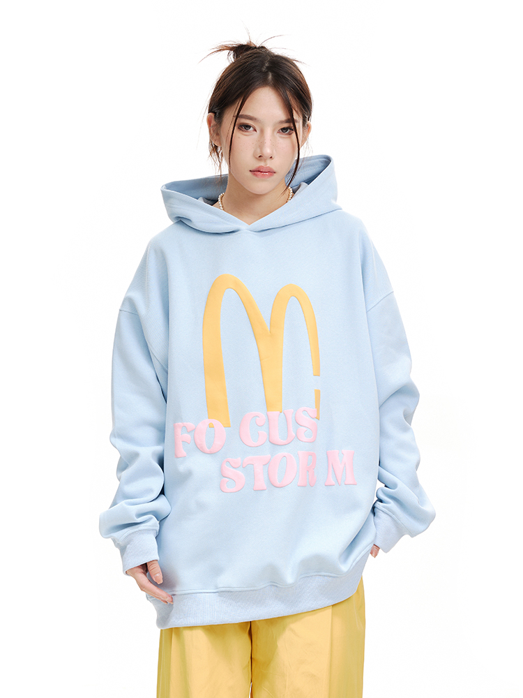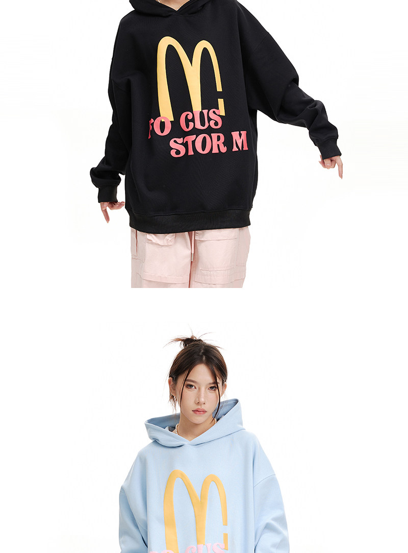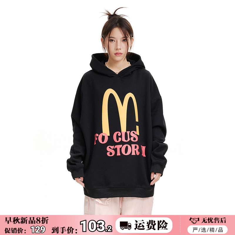美式街頭字母印花厚棉T外套女秋季高街寬鬆休閒百搭情侶套頭連帽衫