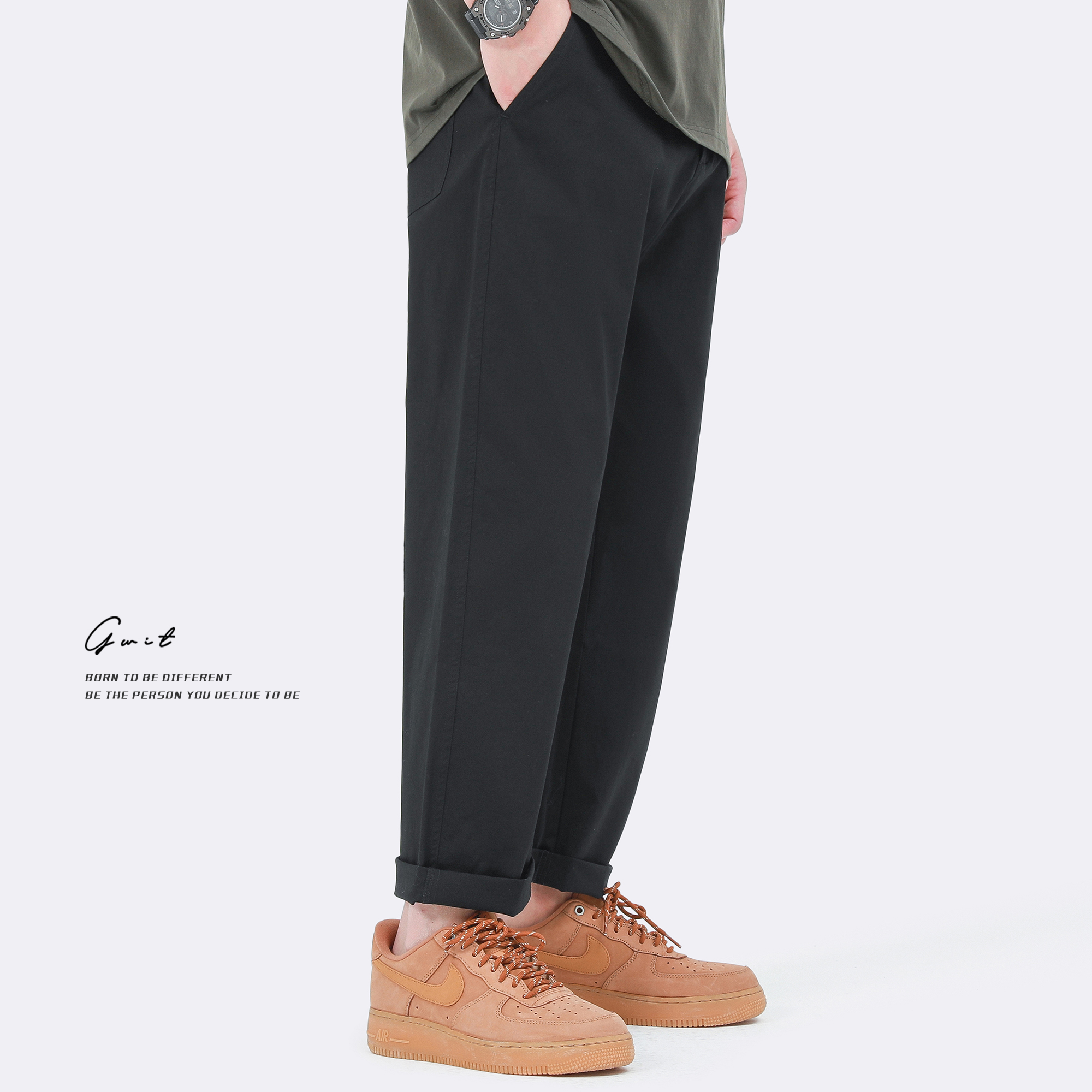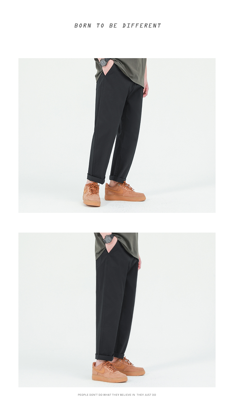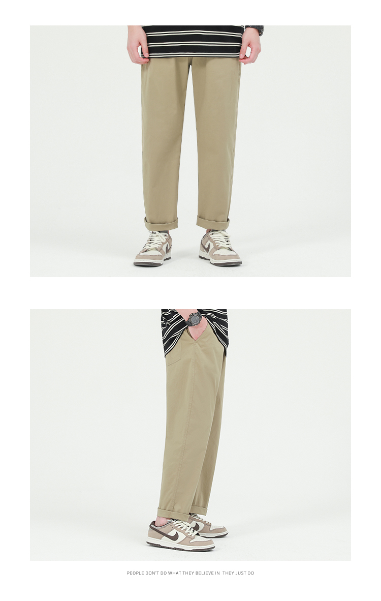 GWIT 精梳水洗棉 輕薄夏季新款薄款工裝長褲潮流直筒小腳休閒褲男