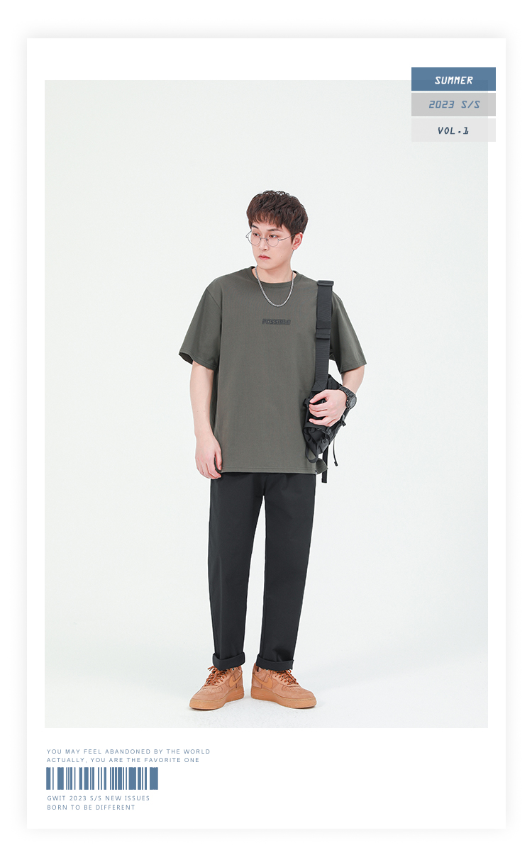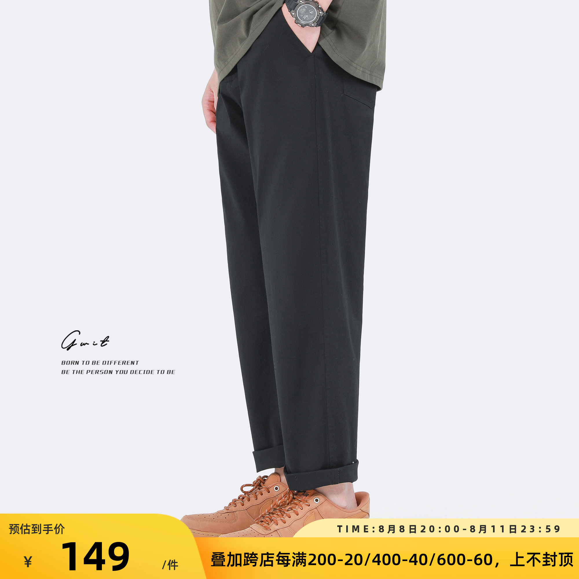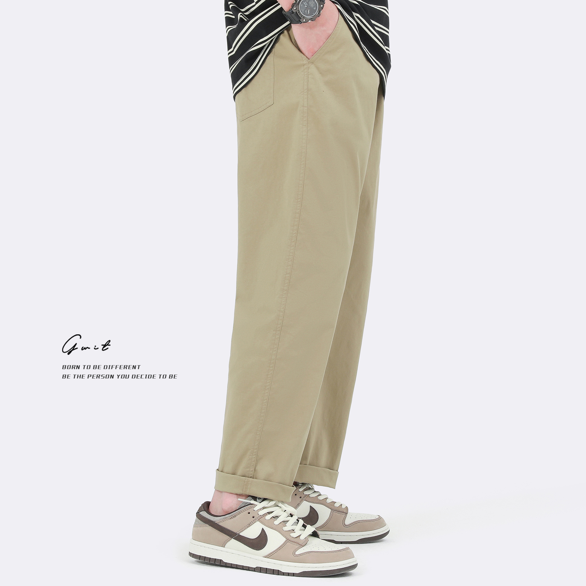 GWIT 精梳水洗棉 輕薄夏季新款薄款工裝長褲潮流直筒小腳休閒褲男