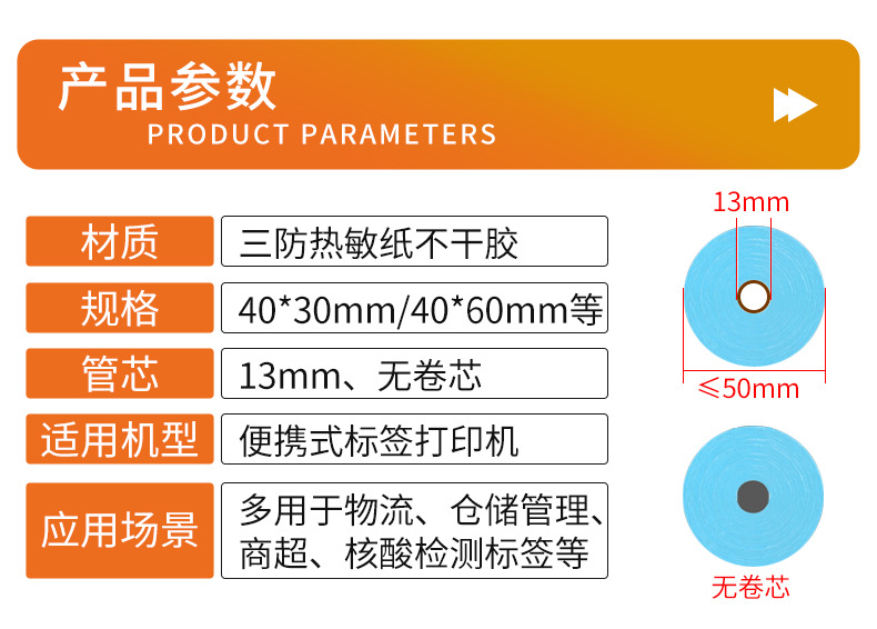 型号 小卷芯热敏标签