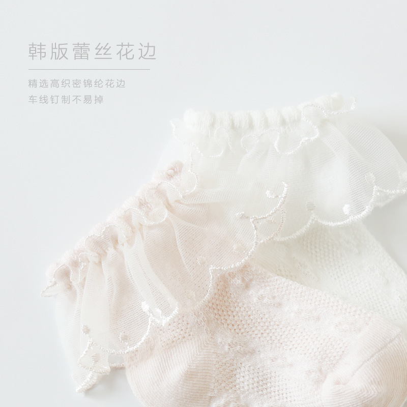 23新品婴儿袜子薄款夏季女童袜子精梳棉儿童网眼袜蕾丝花边宝宝袜