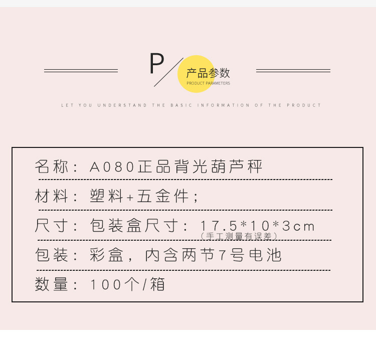 ①因本款葫芦秤为OEM产品,不同批次秤体上的印字可能有所不同,随机发。秤的质量是一样的。请介意买家谨慎下单或咨询约定后下单。