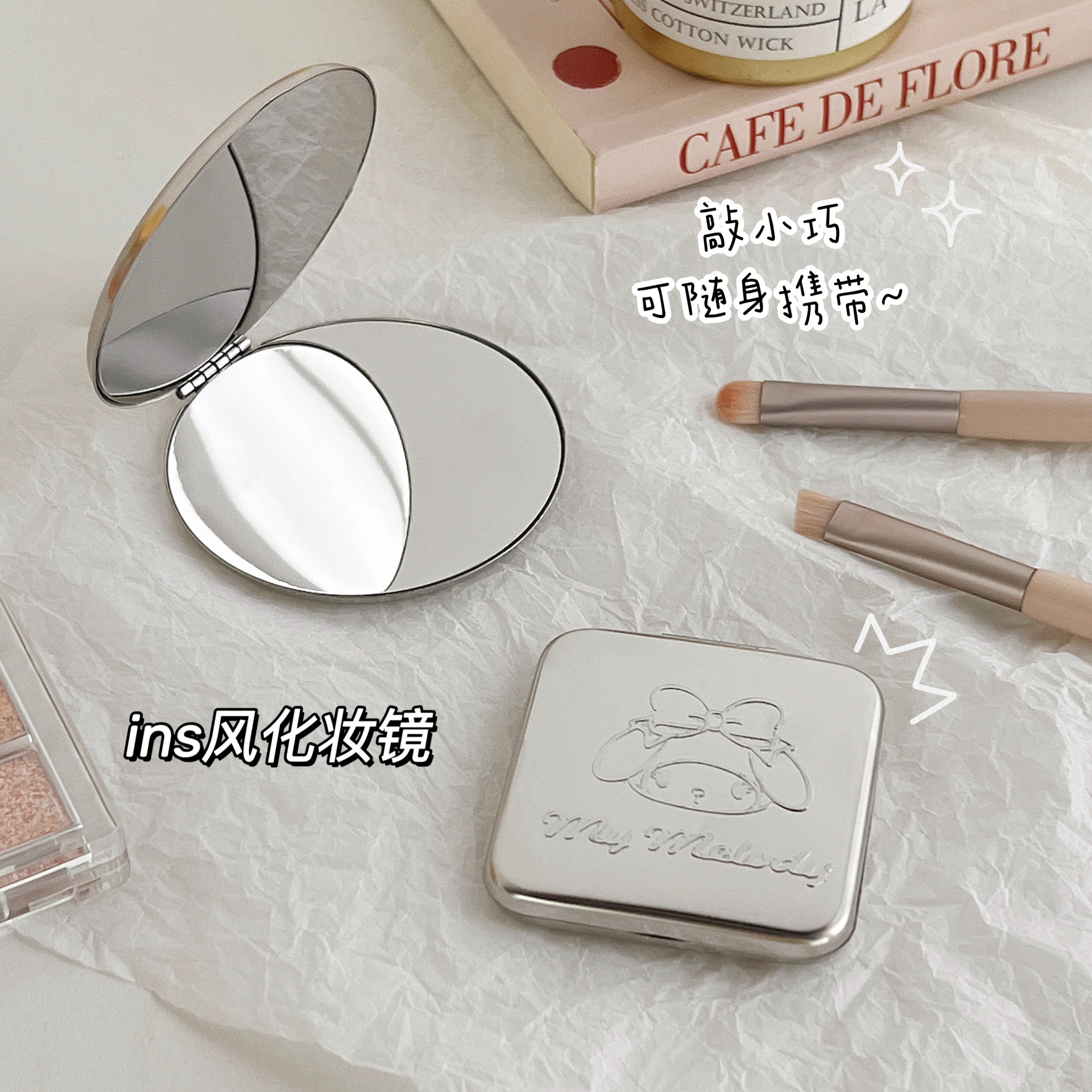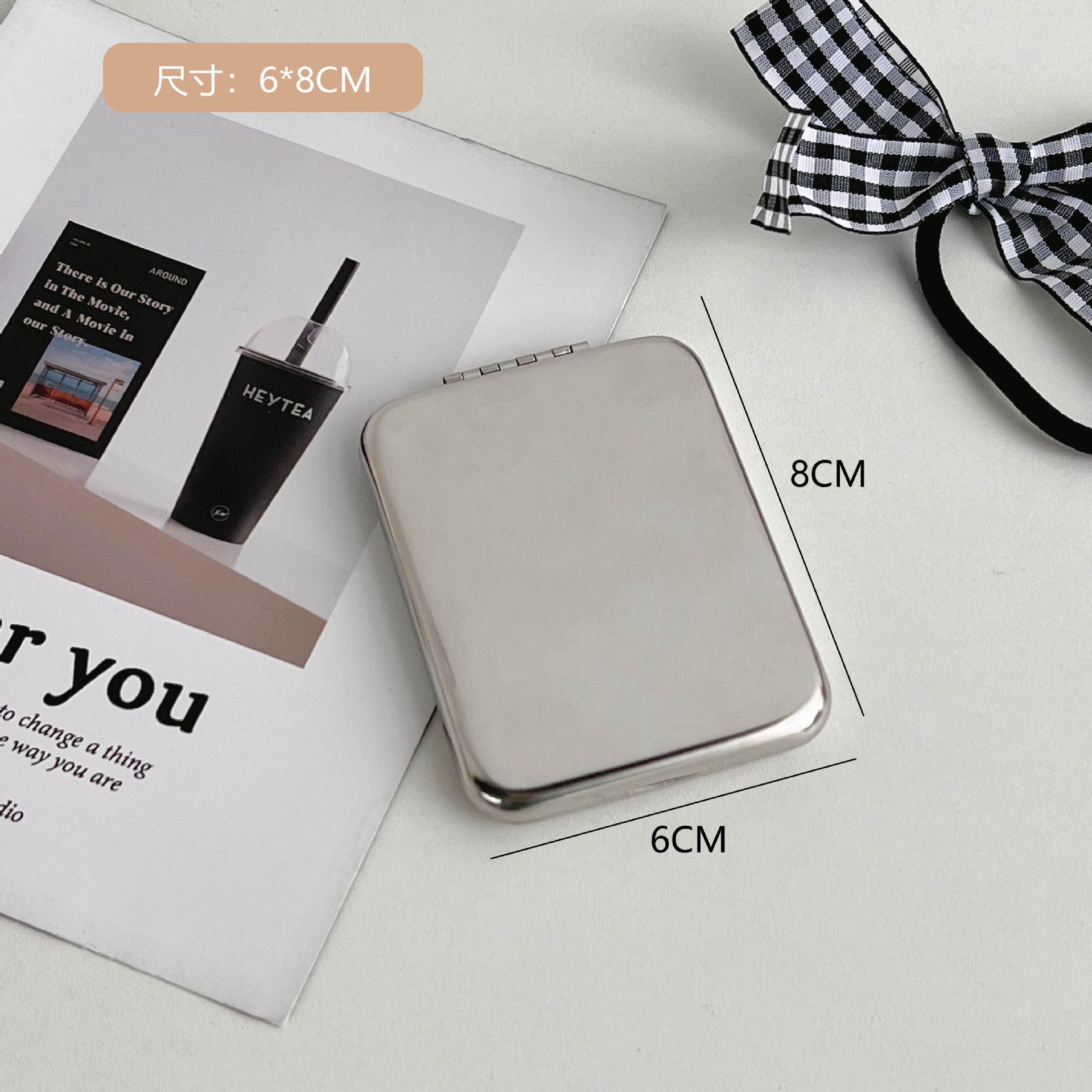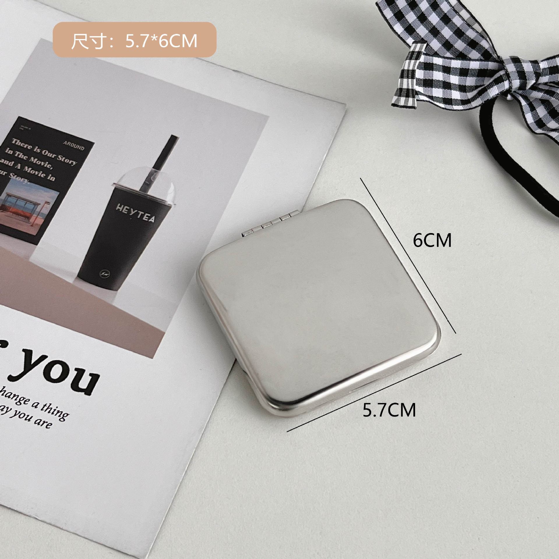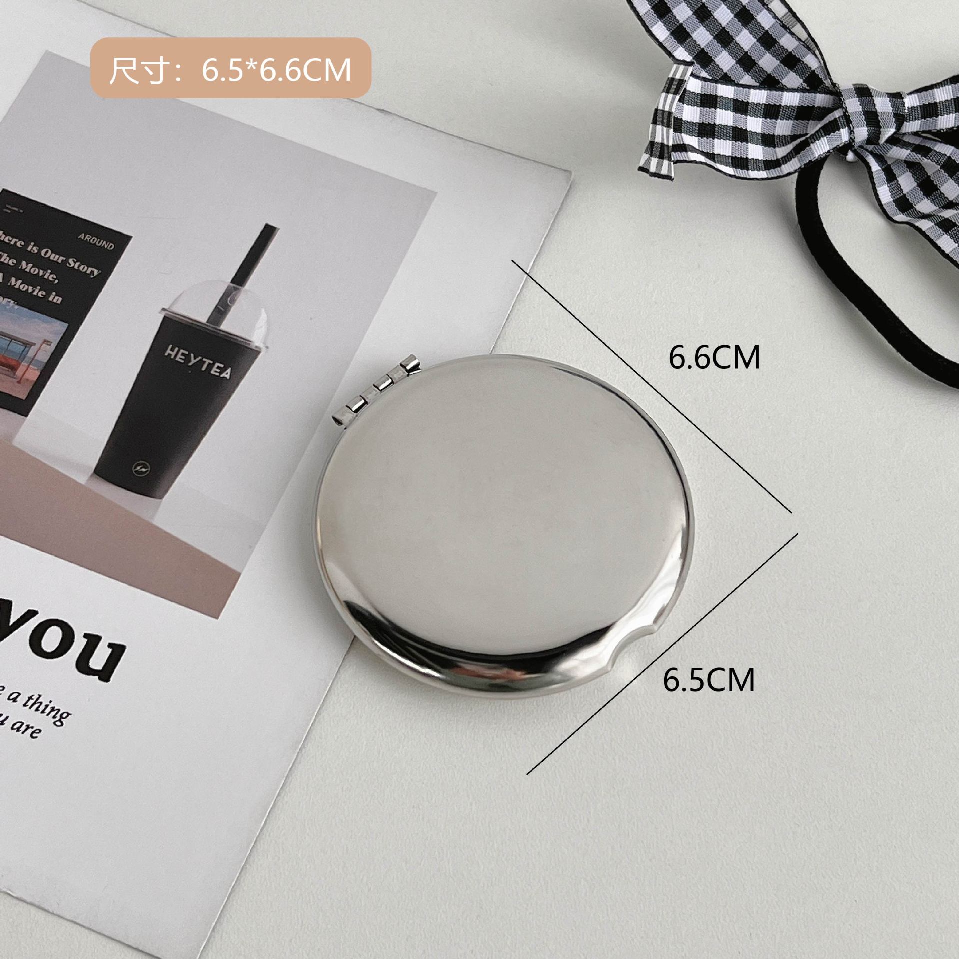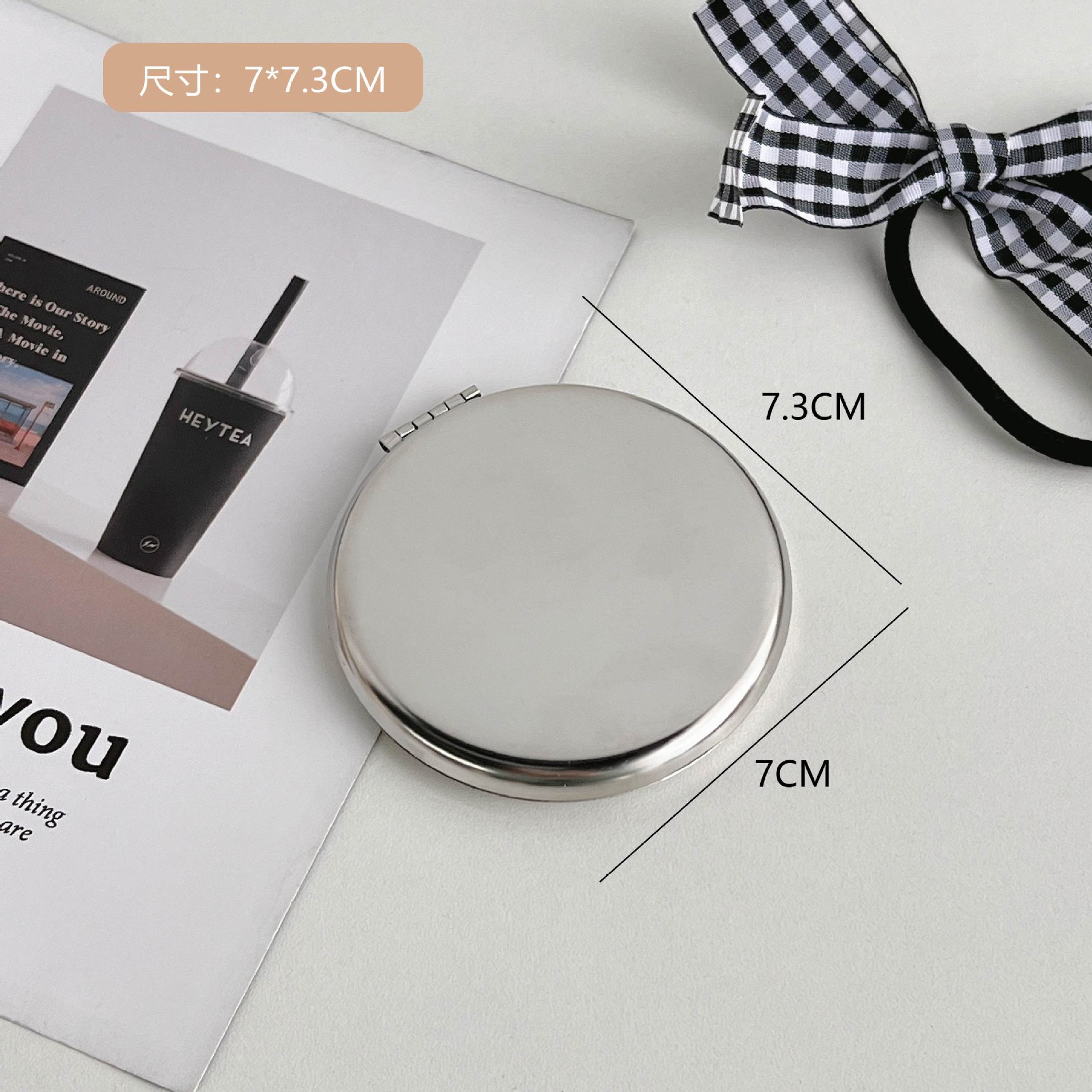 不锈钢化妆镜摔不碎随身小镜子激光logo刻字ins手持双面折叠镜