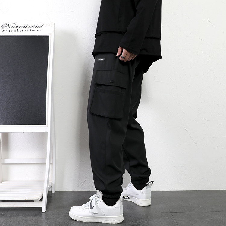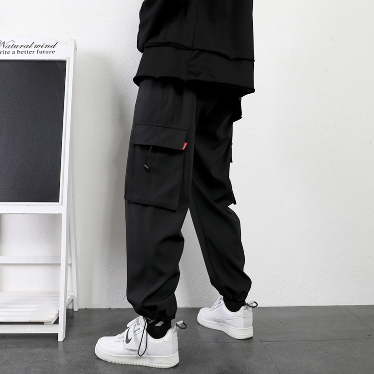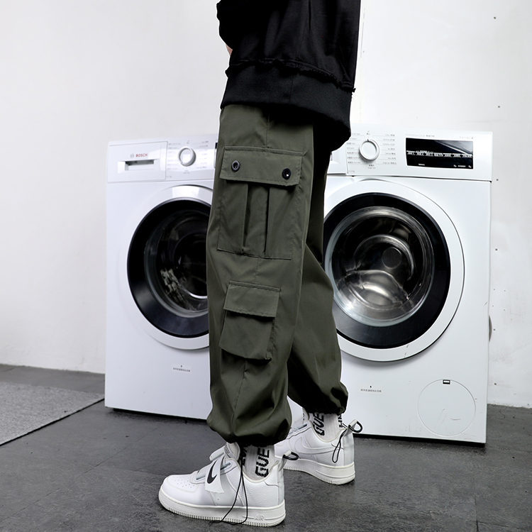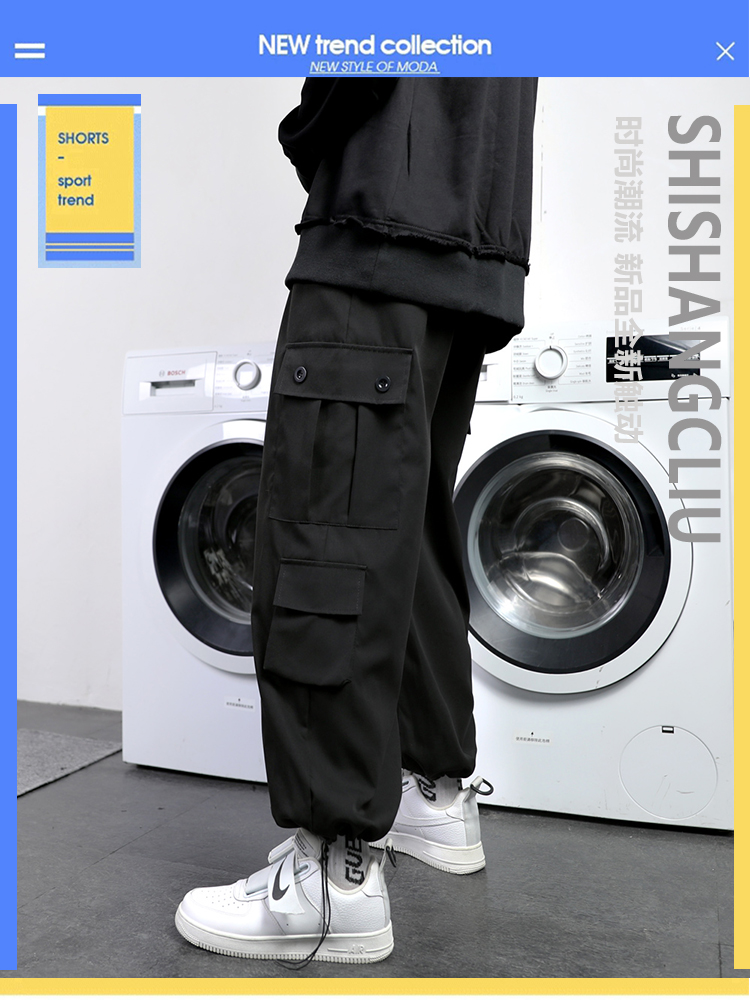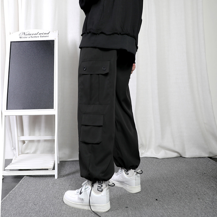 工裝褲男夏季寬鬆大尺碼抽繩束口褲薄款運動休閒長褲子日系直筒潮