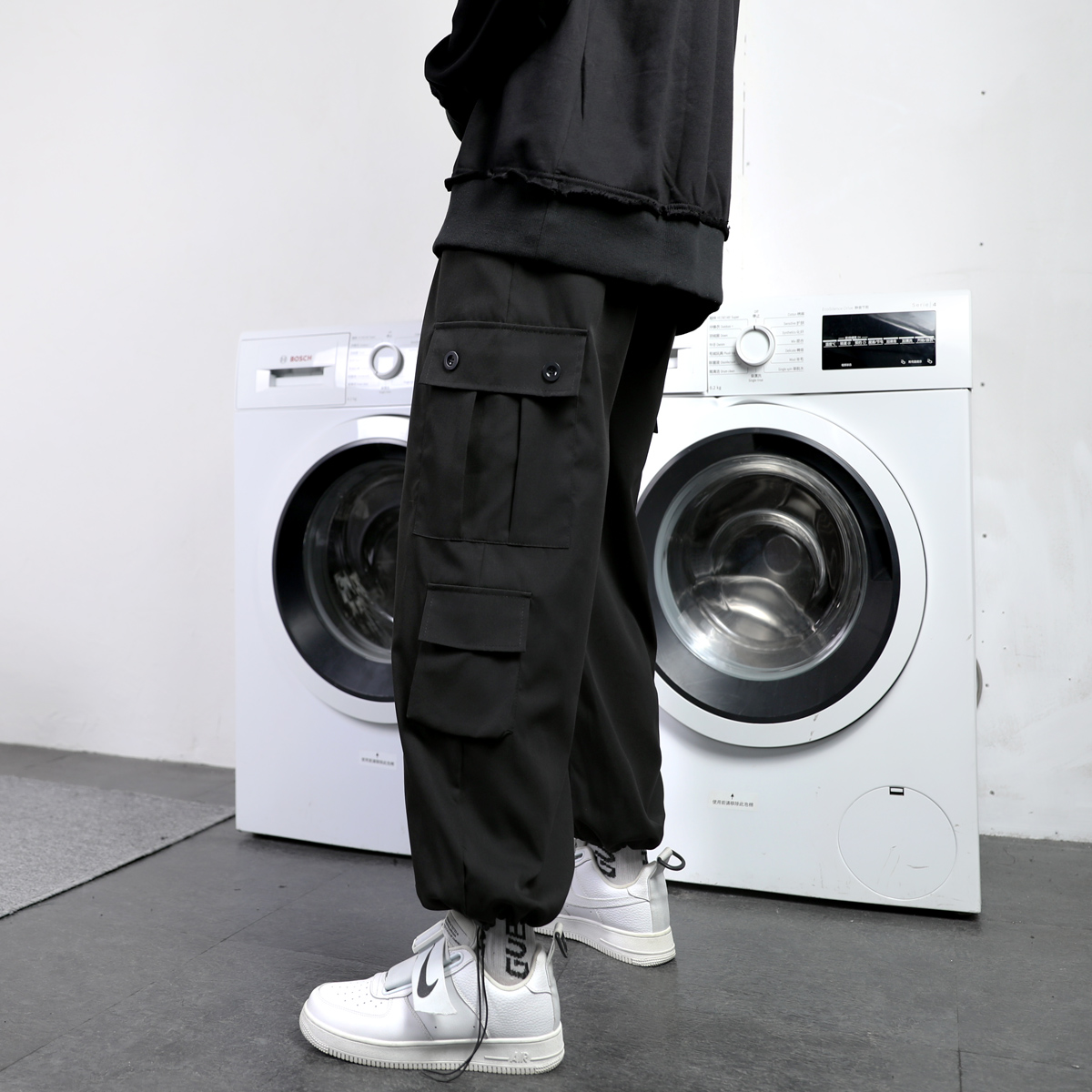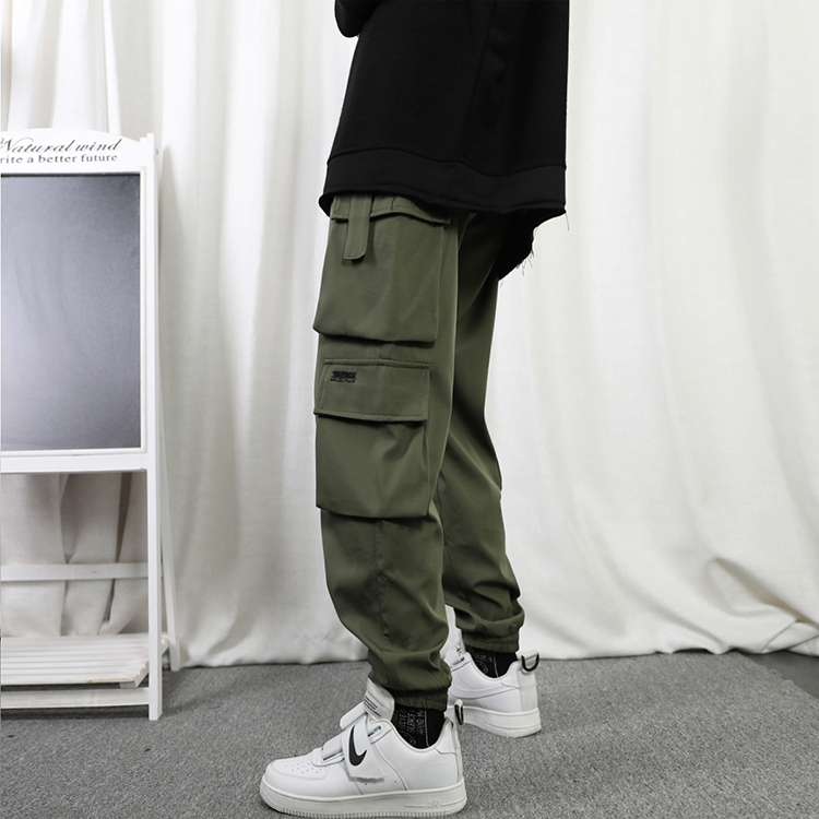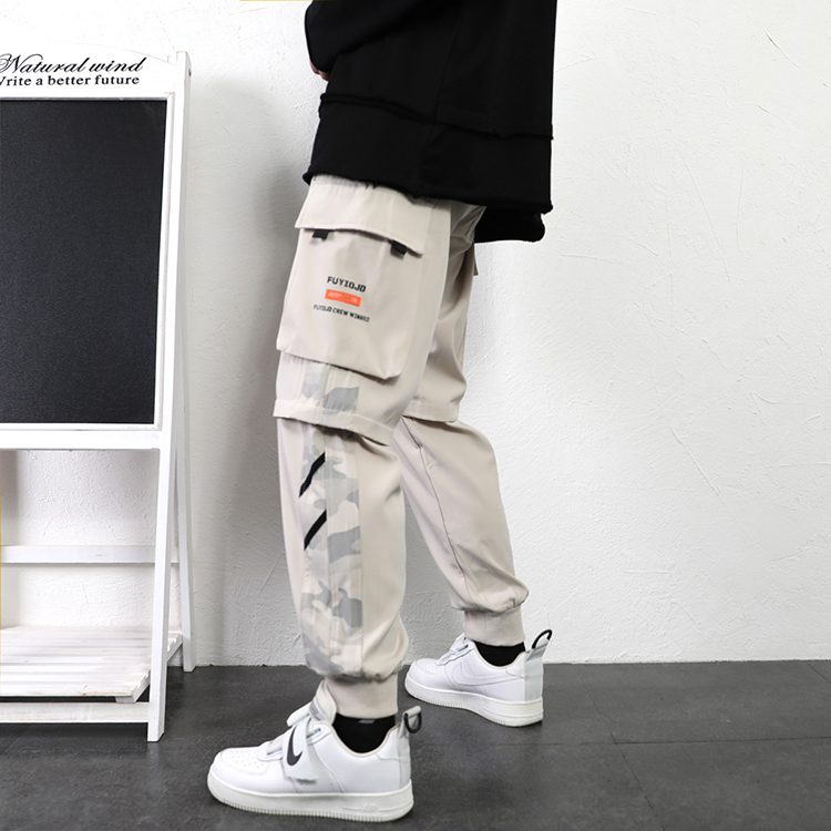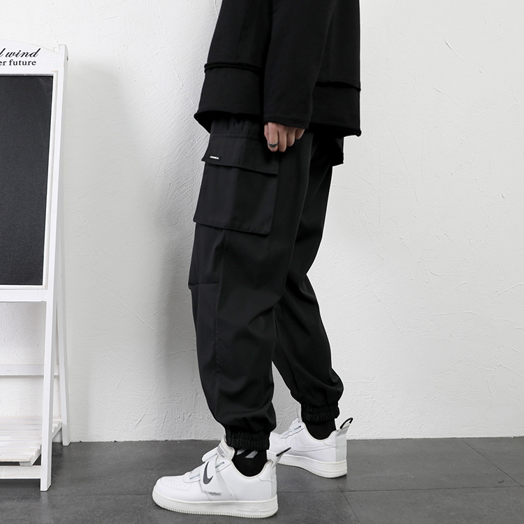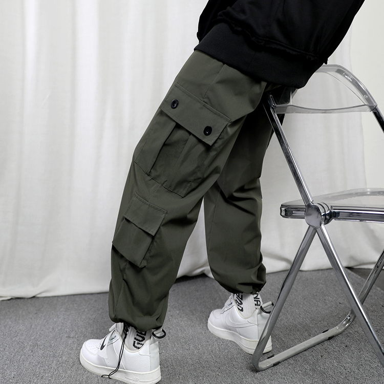 工裝褲男夏季寬鬆大尺碼抽繩束口褲薄款運動休閒長褲子日系直筒潮