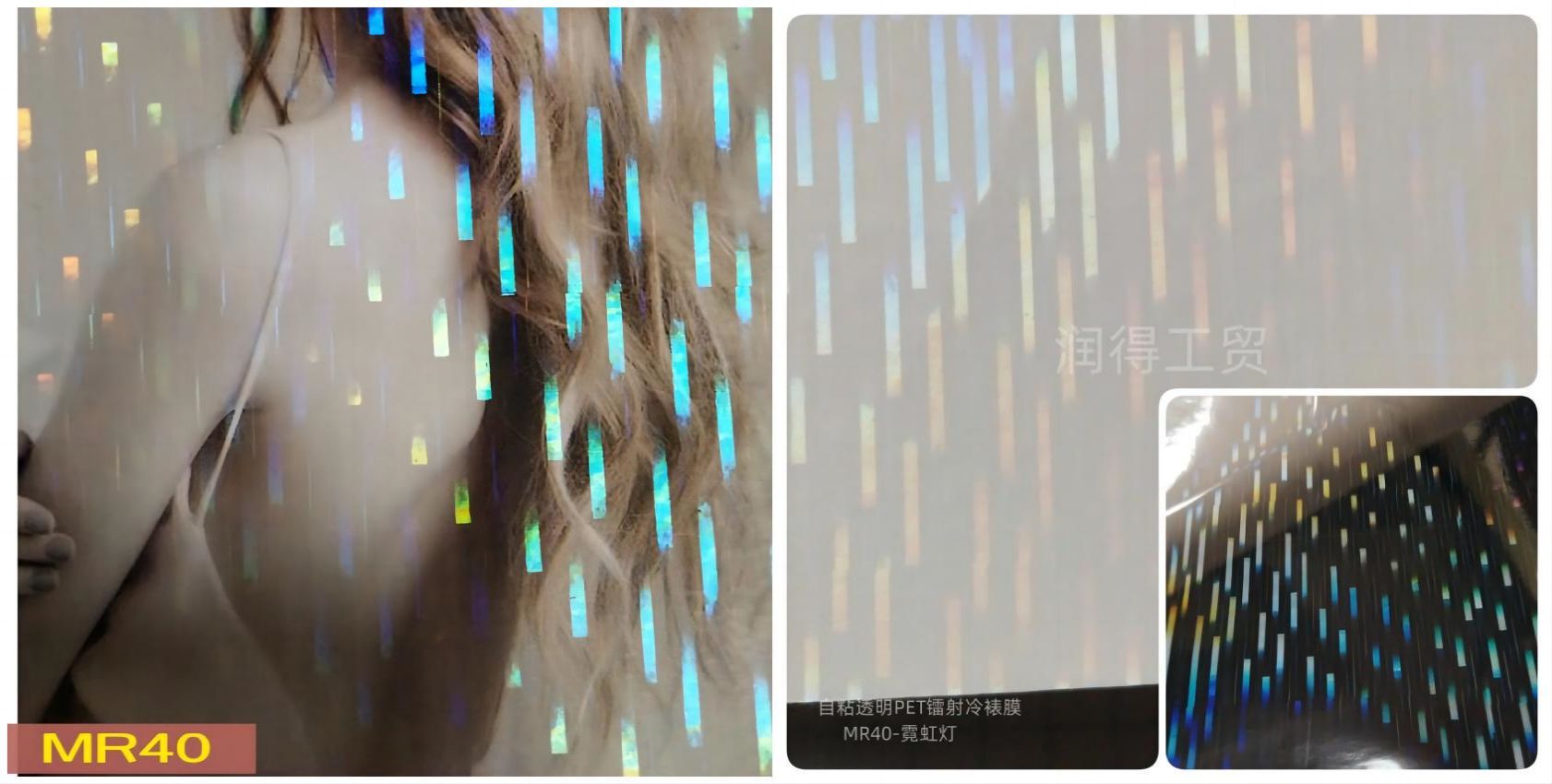 工厂现货包邮 霓虹灯PET镭射冷裱膜自粘带背胶胸章礼品相片保护膜