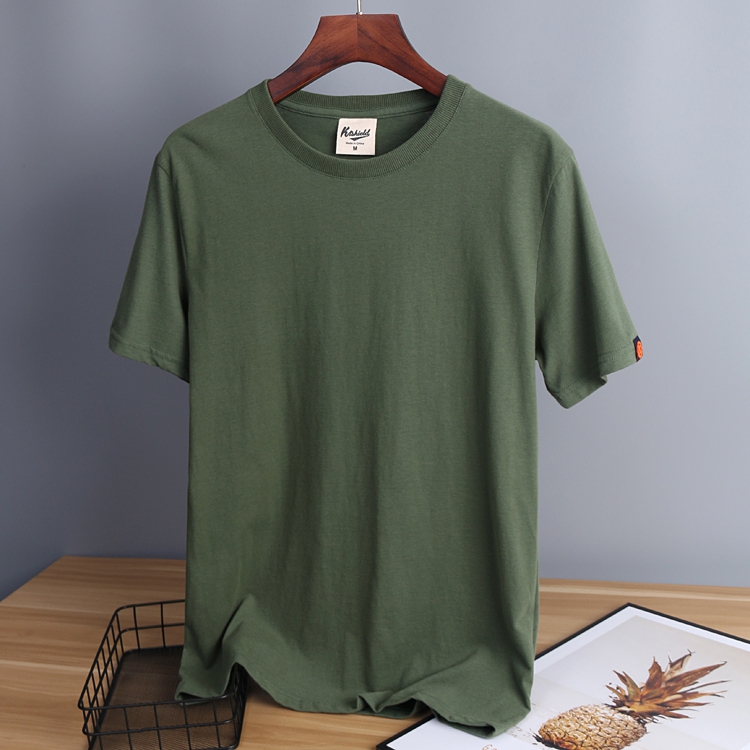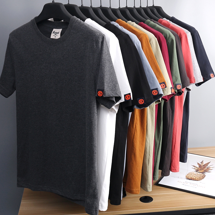 人手幾件不嫌多 HK潮牌夏季水洗全棉純色長絨磨毛打底短袖T恤男潮