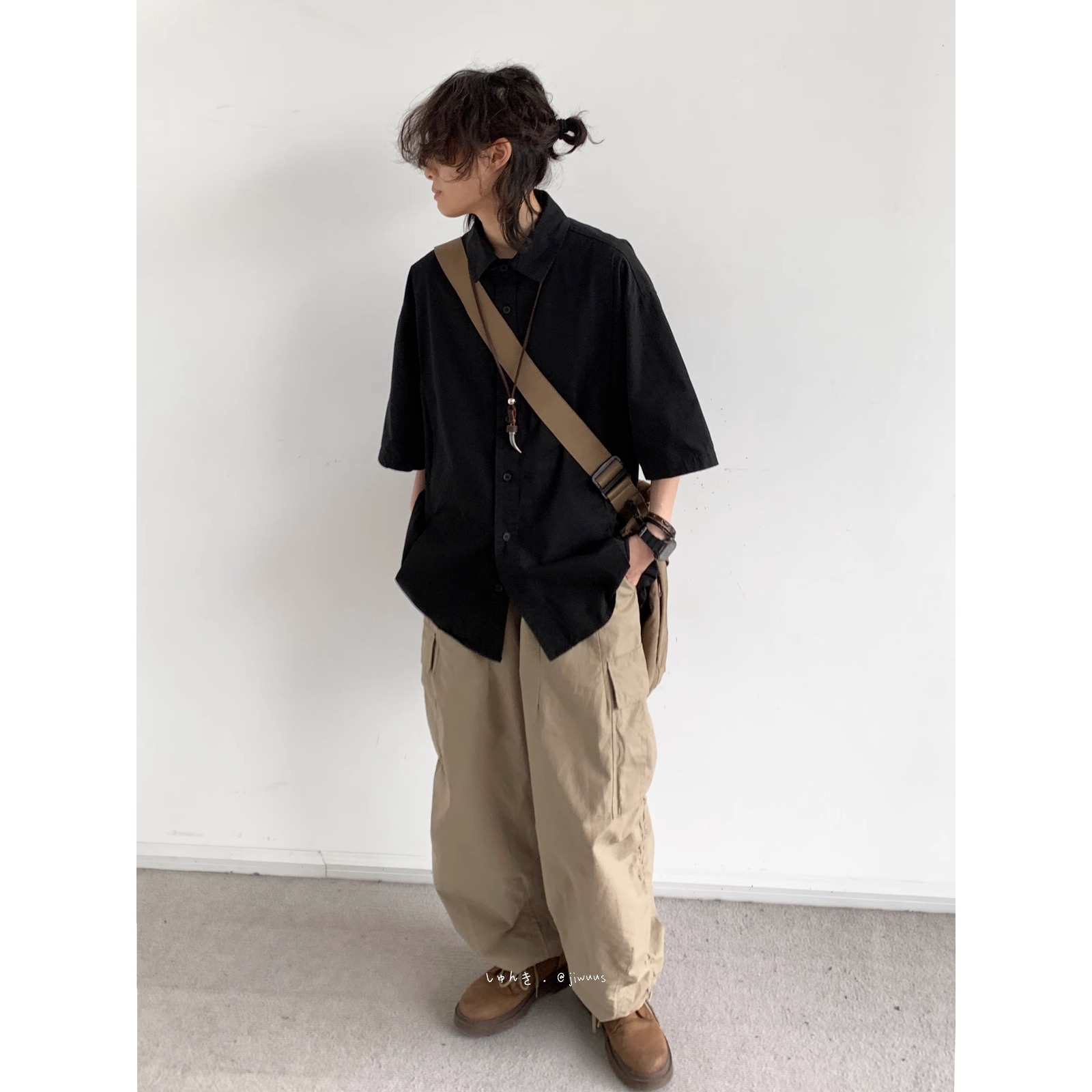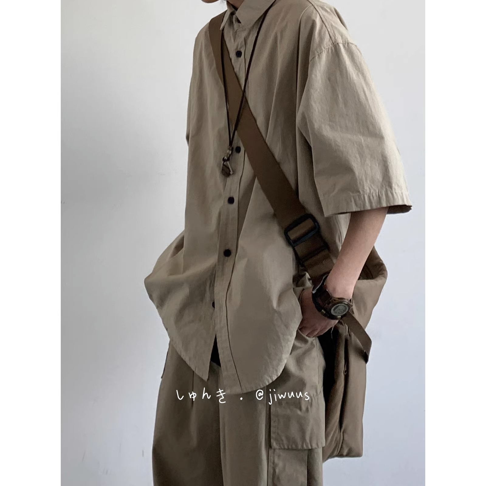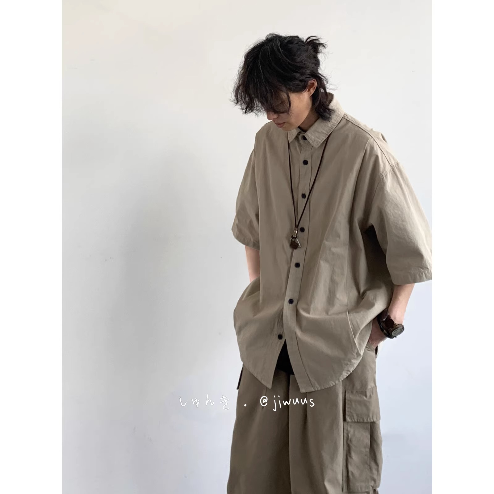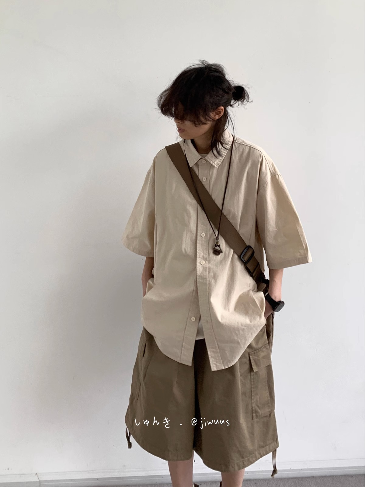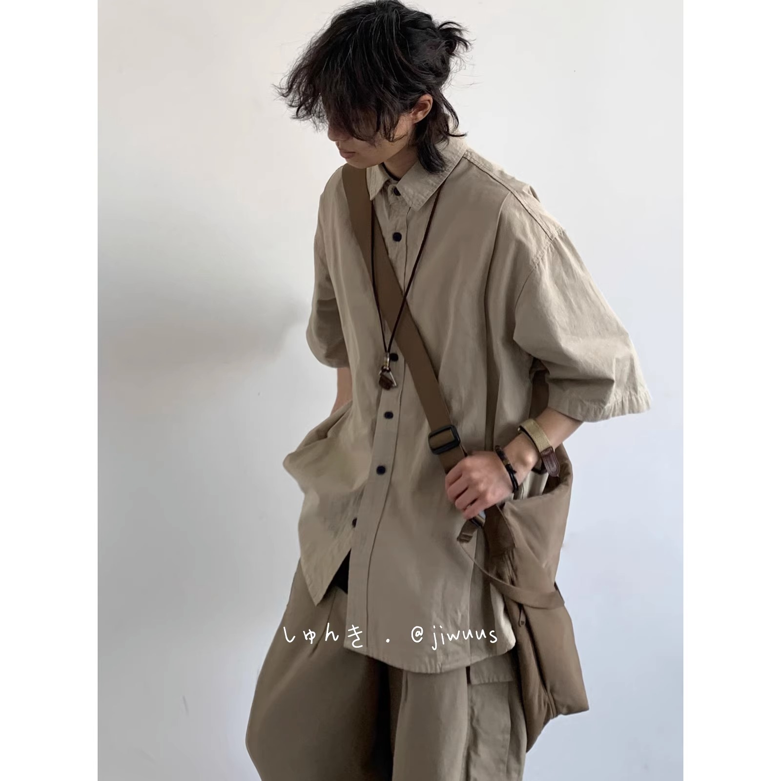 日系復古工裝短袖襯衫男女款夏季薄款學生寬鬆慵懶風廓形帥氣襯衫