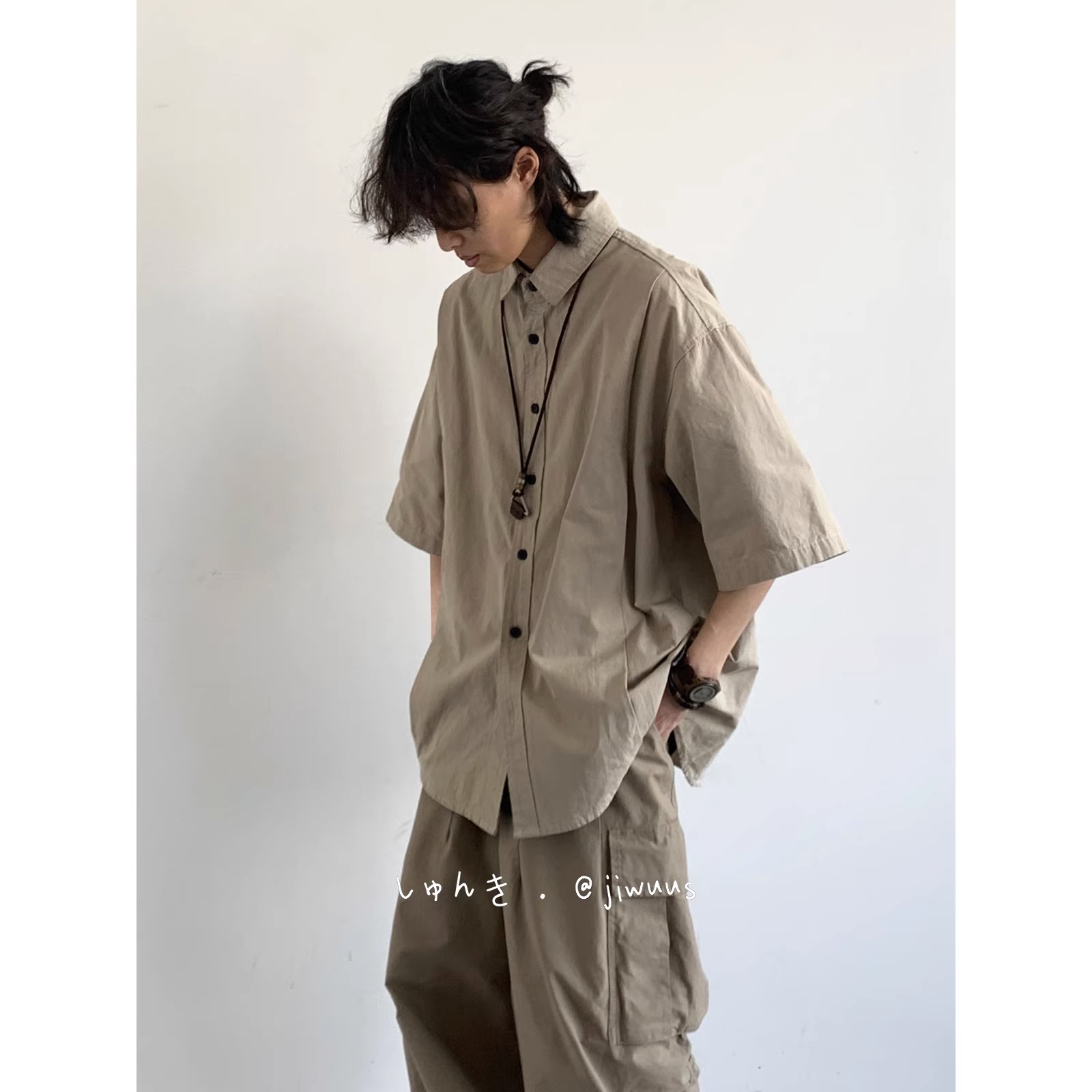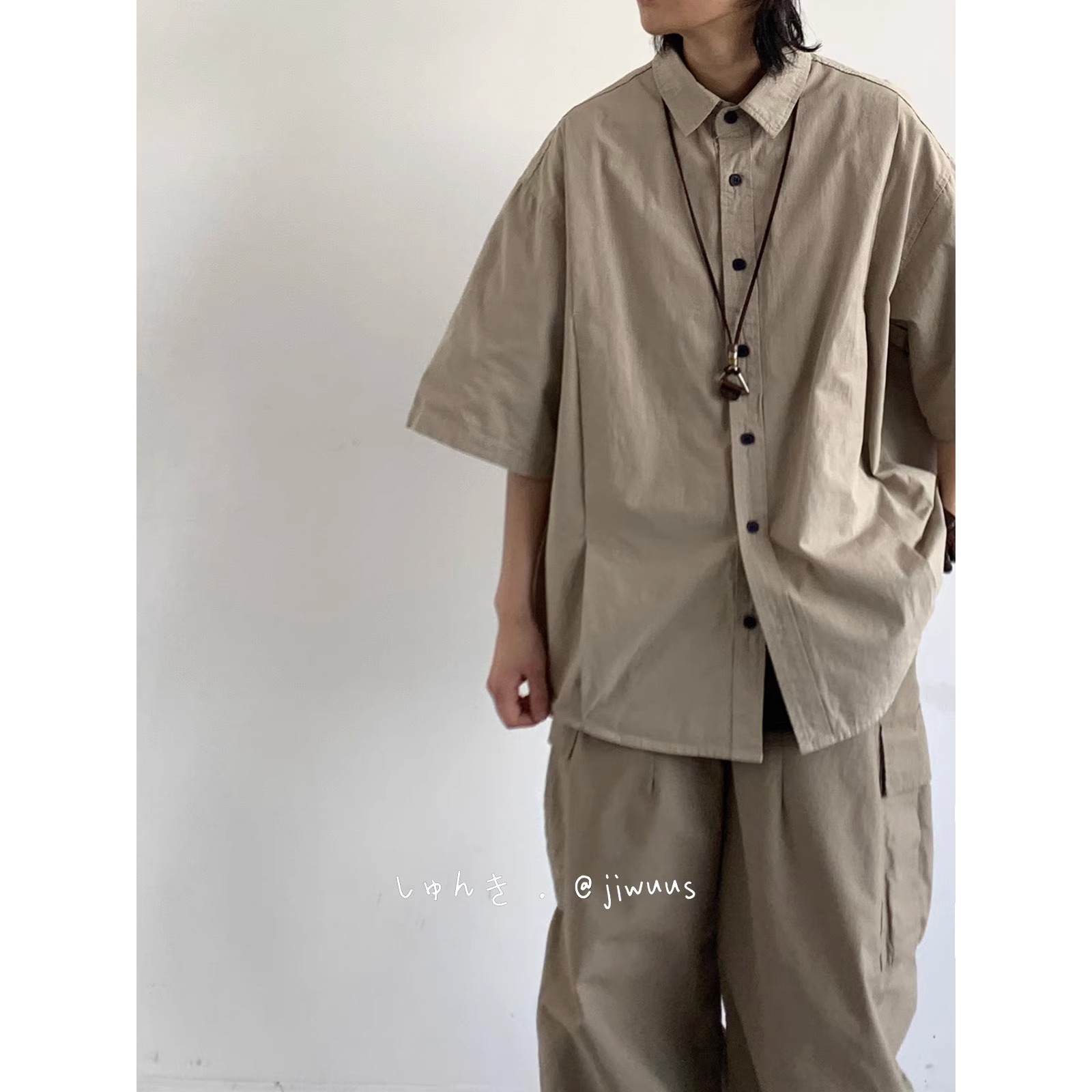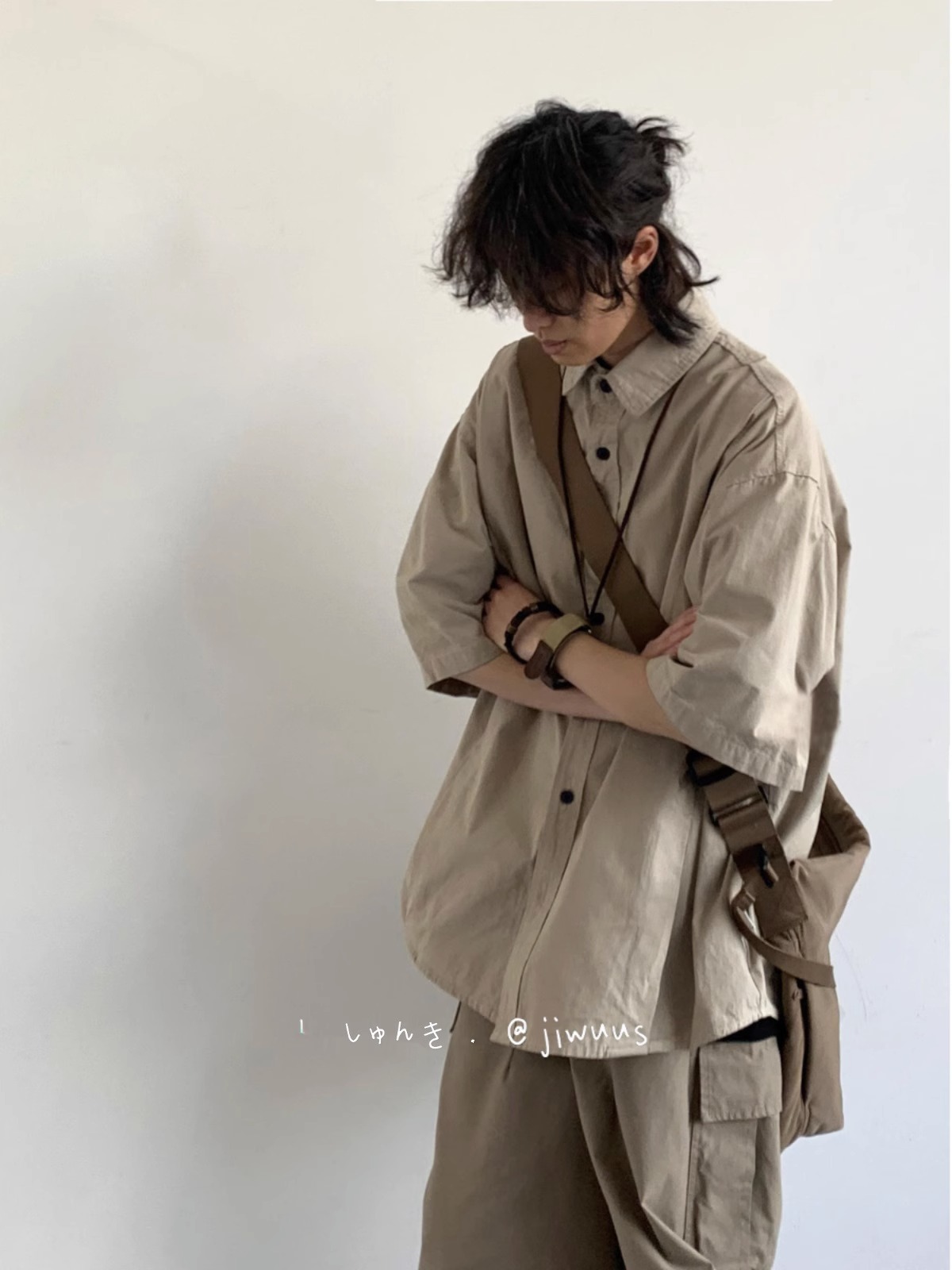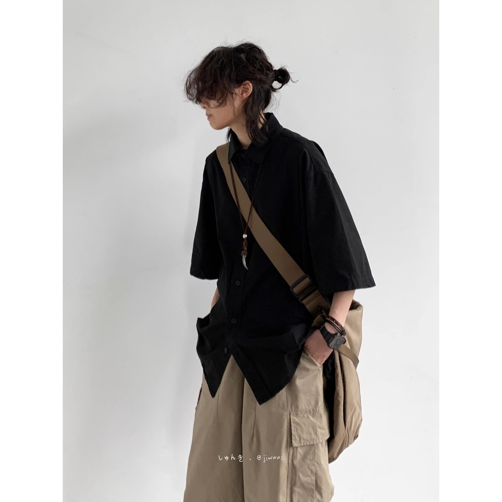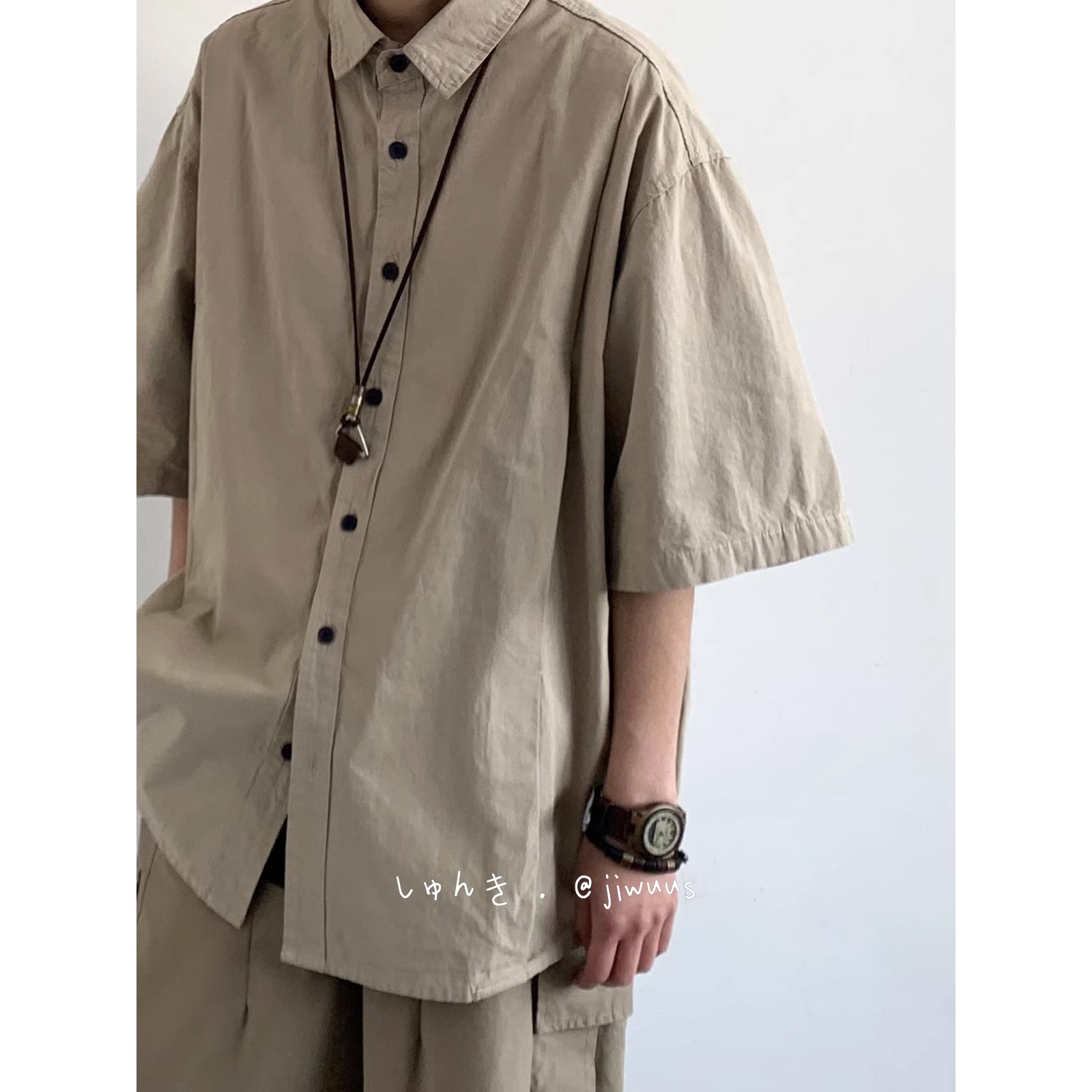 日系復古工裝短袖襯衫男女款夏季薄款學生寬鬆慵懶風廓形帥氣襯衫