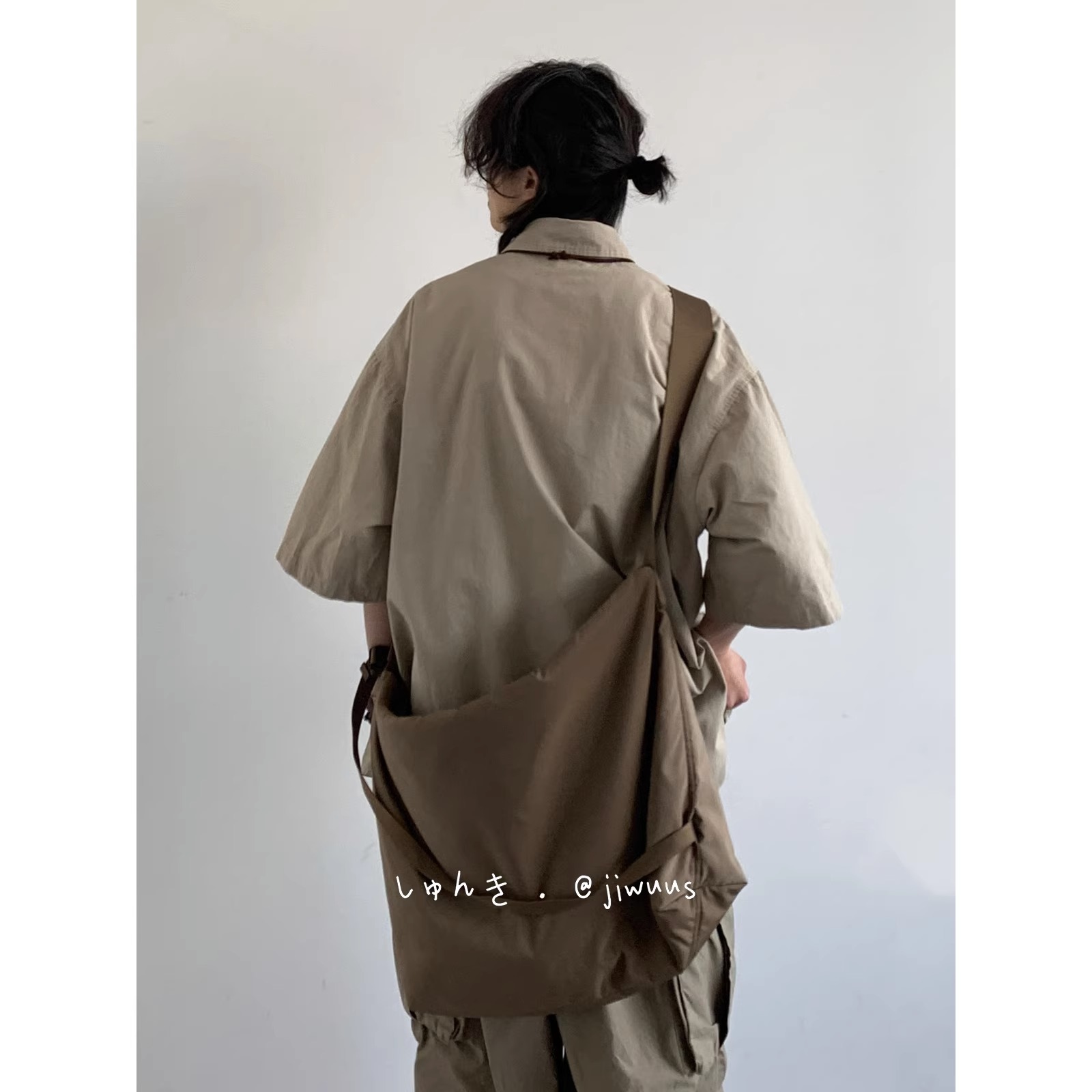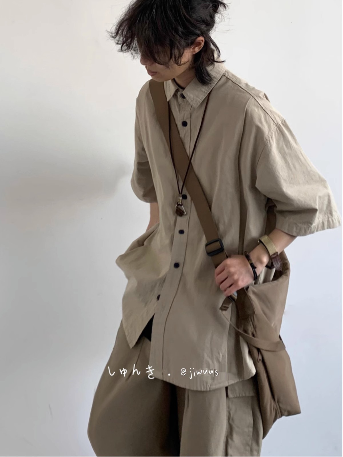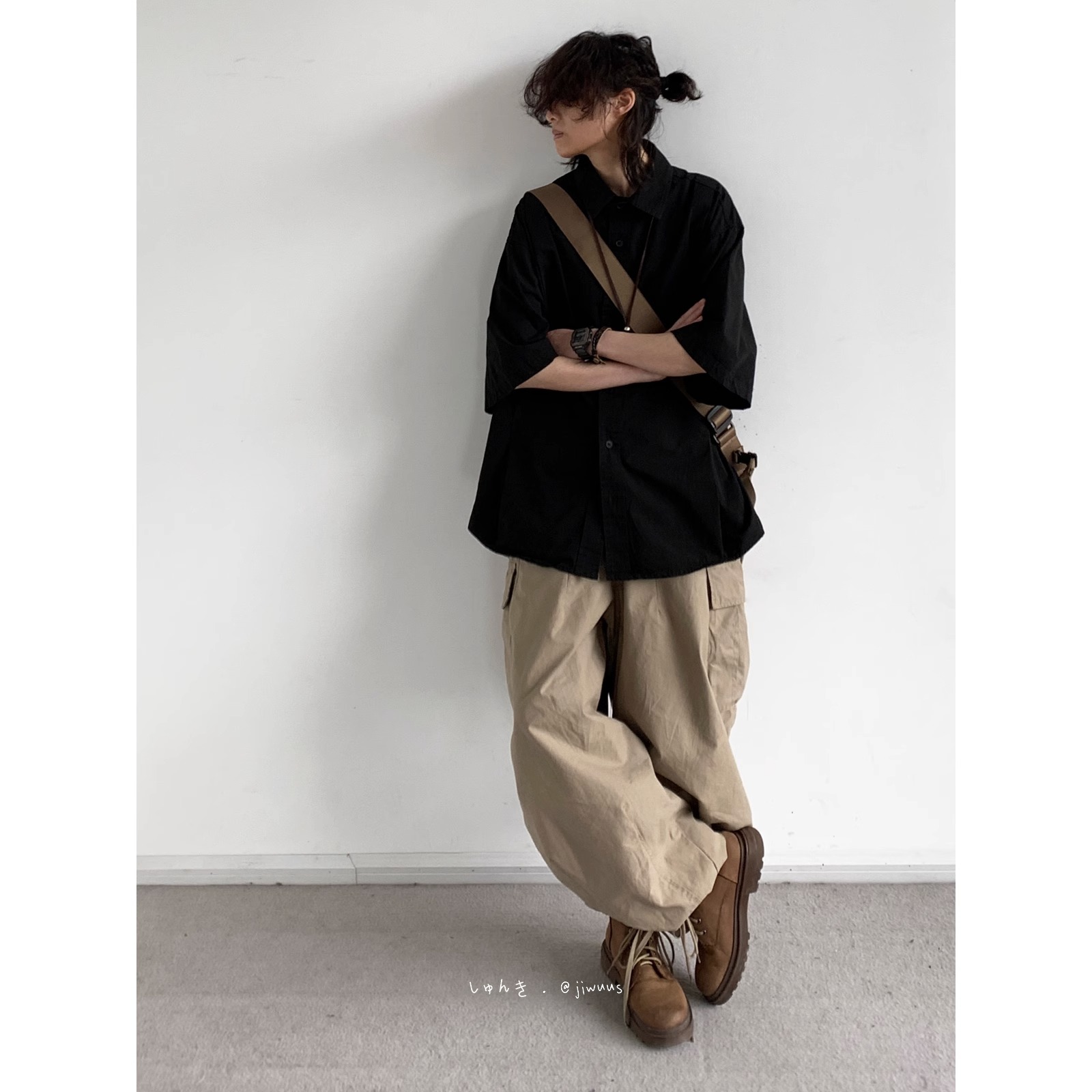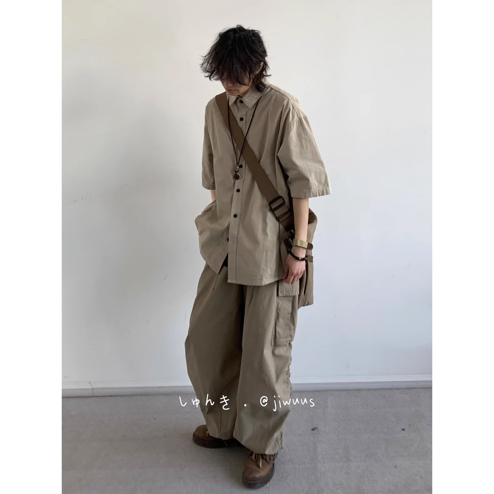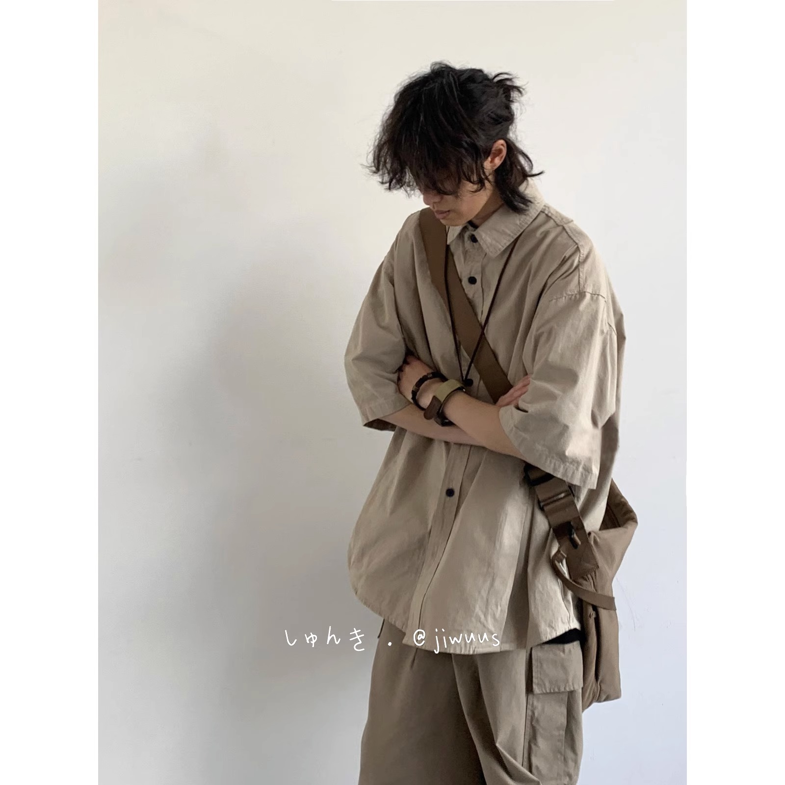 日系復古工裝短袖襯衫男女款夏季薄款學生寬鬆慵懶風廓形帥氣襯衫