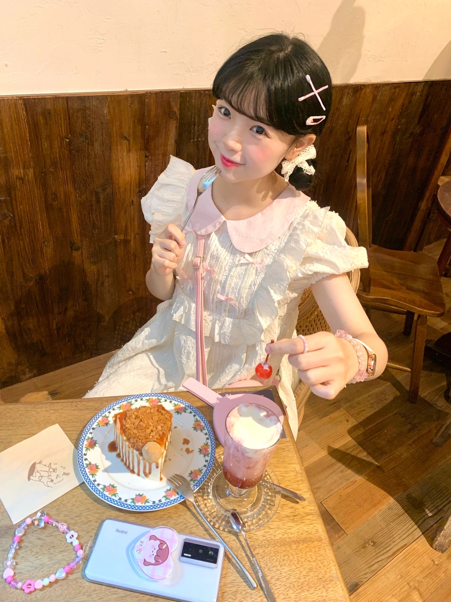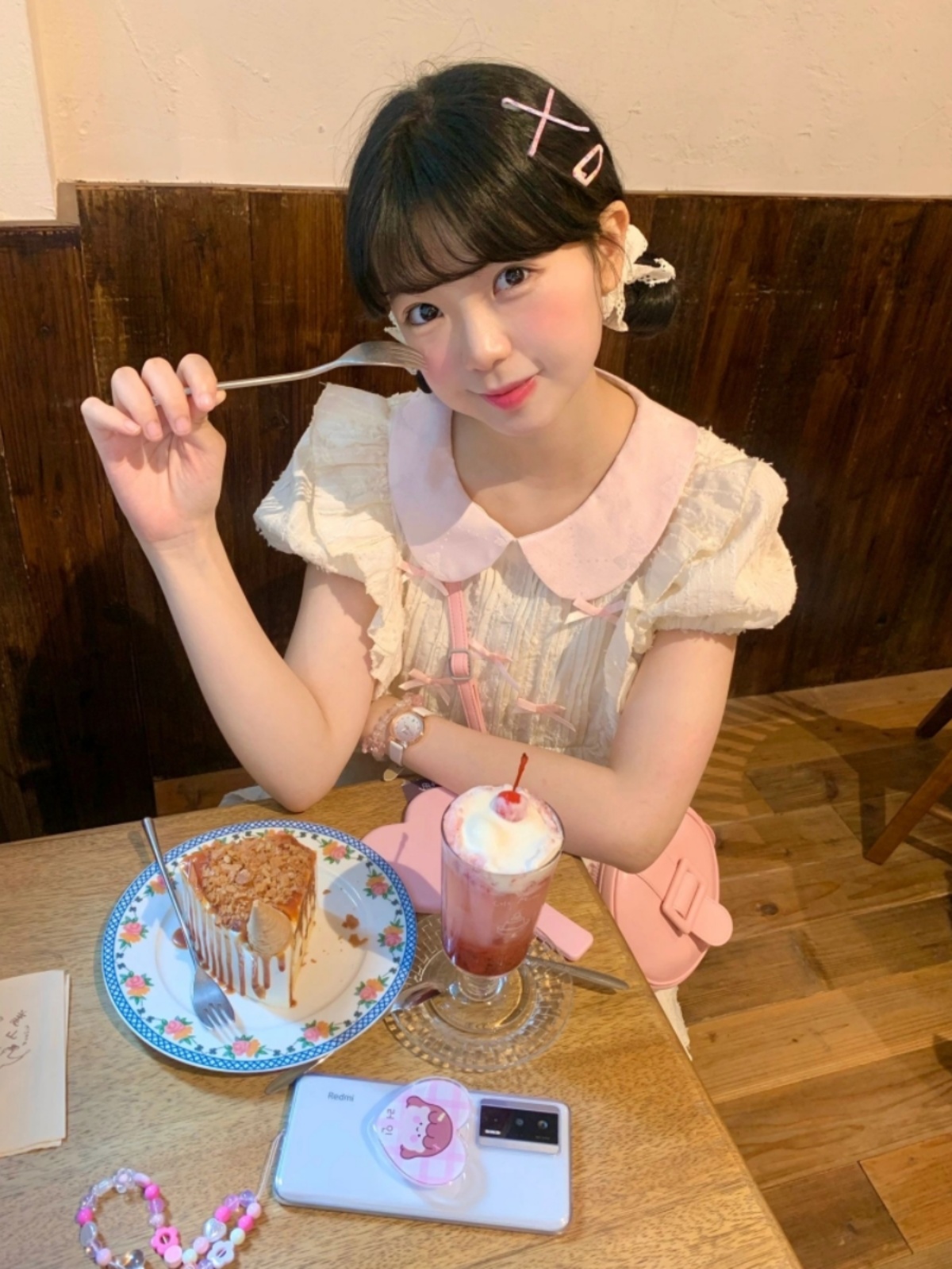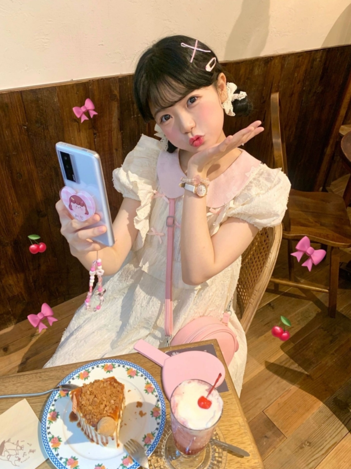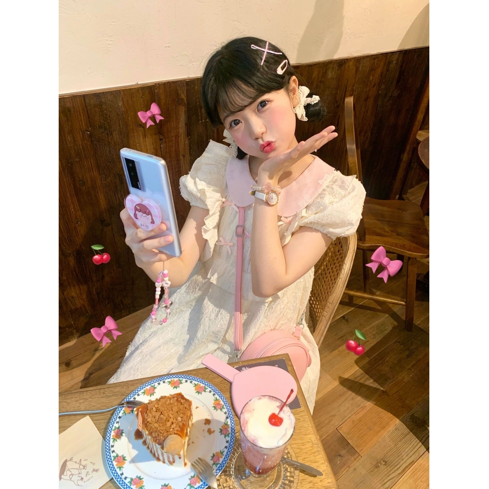 甜美撞色娃娃領泡泡袖蕾絲花邊洋裝女夏寬鬆顯瘦遮肉小個子短裙